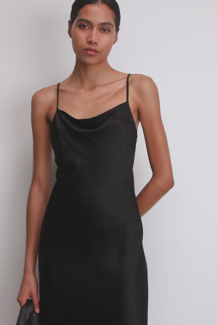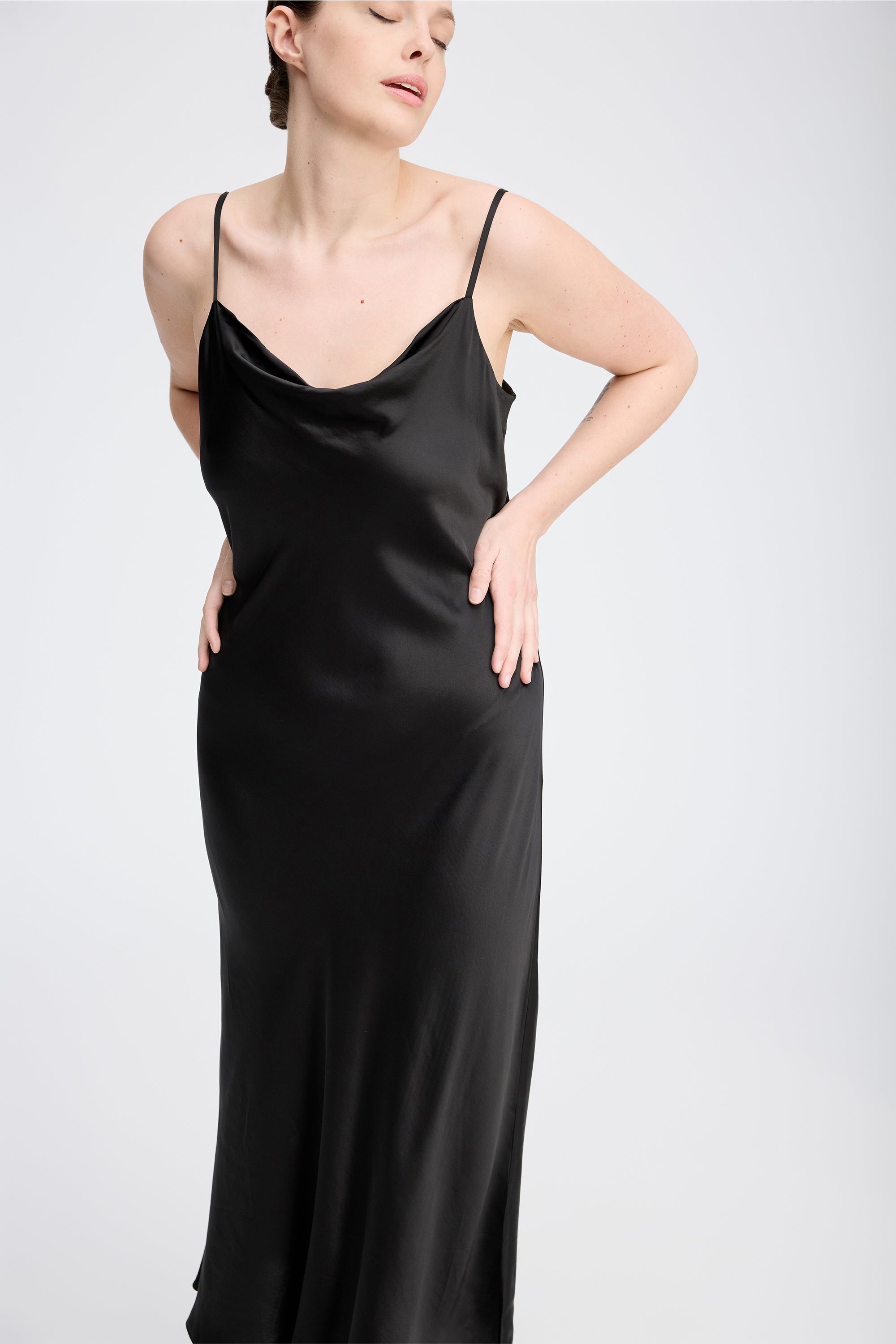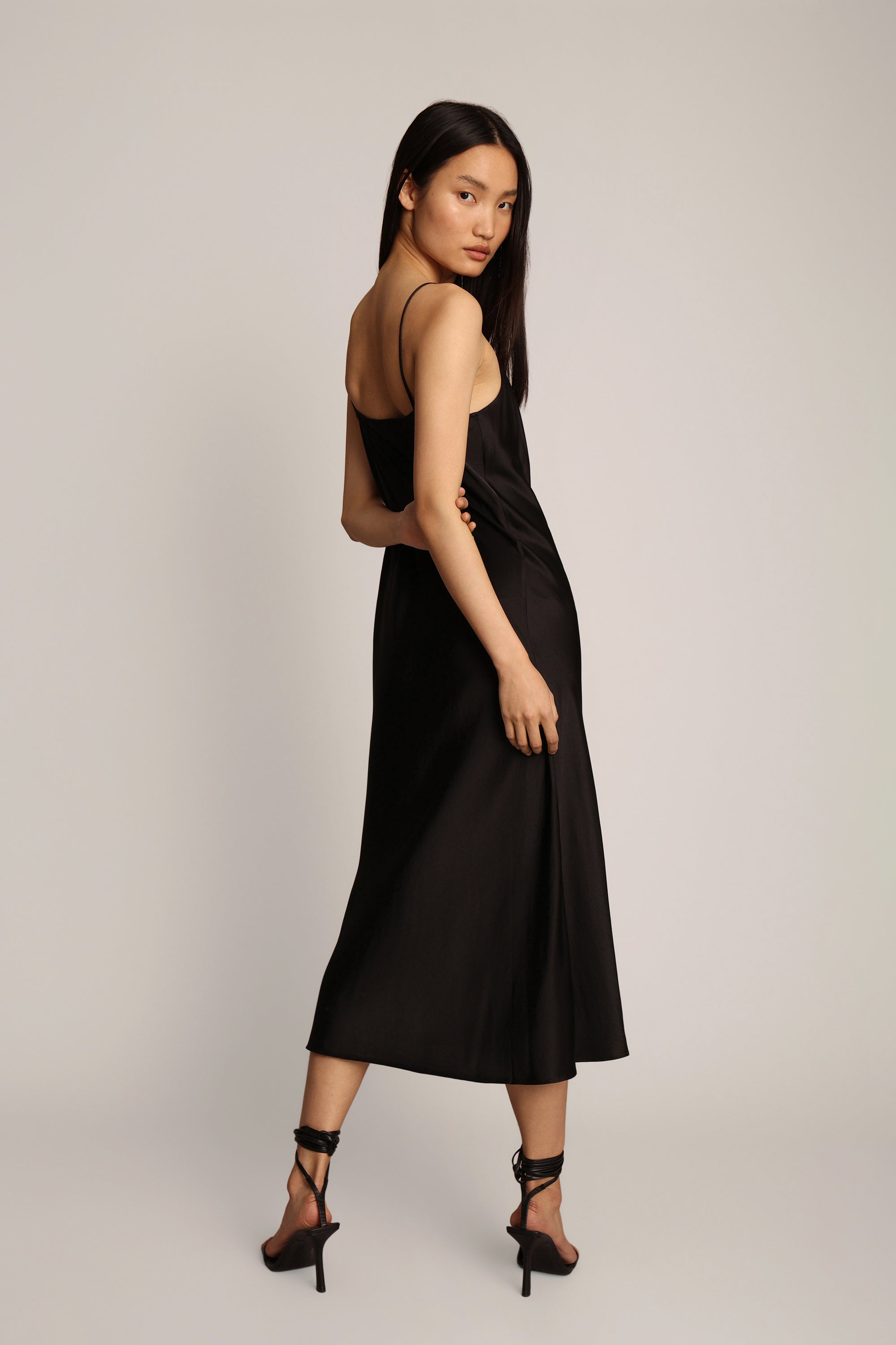 Beautiful fitted medi-long strap dress. The dress is made from an elegant and soft viscose blend.