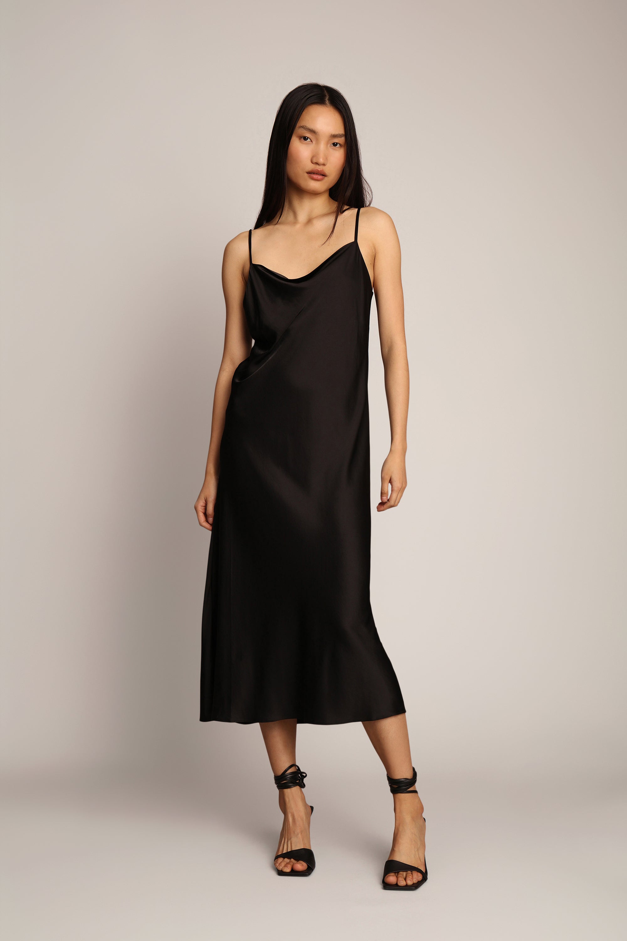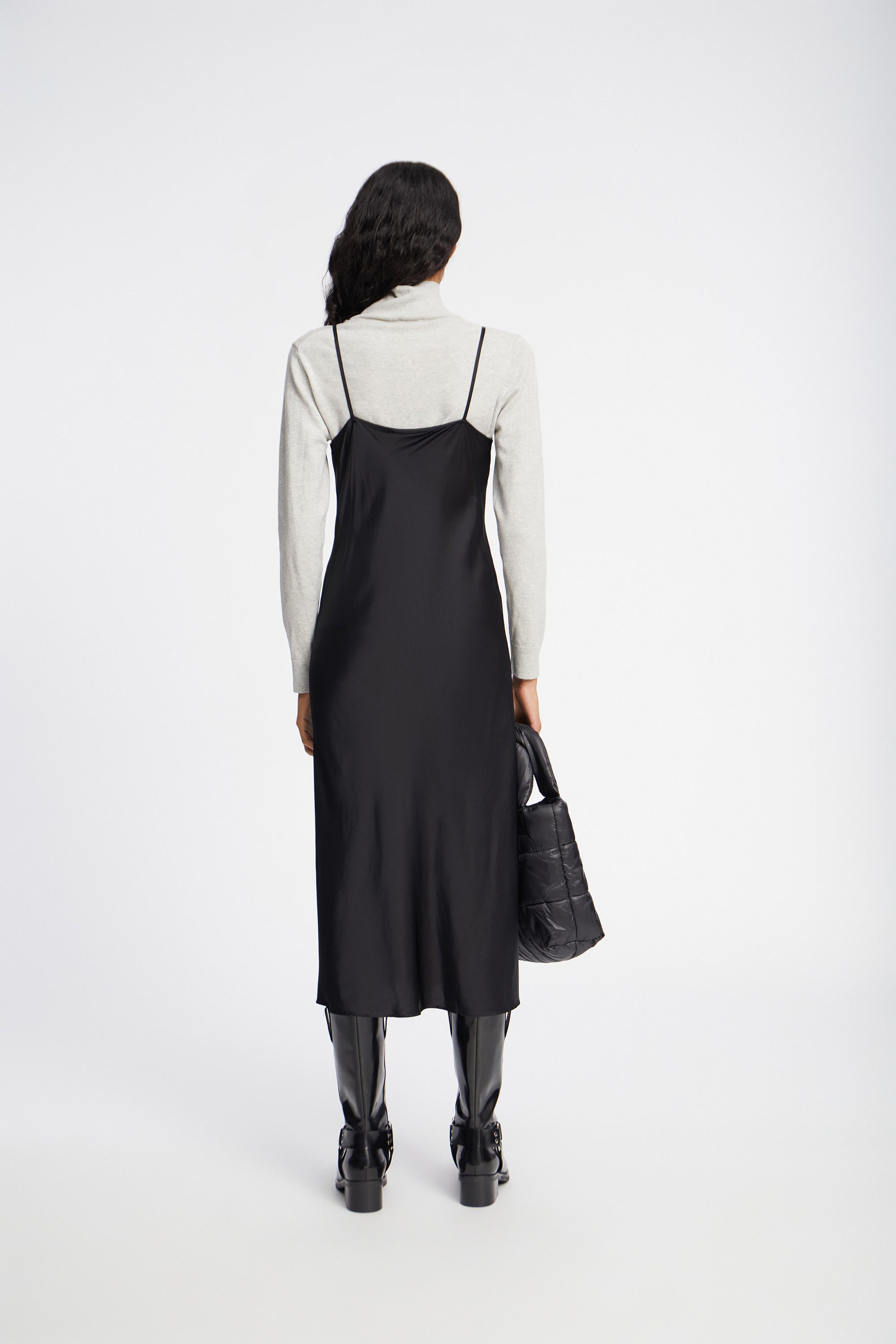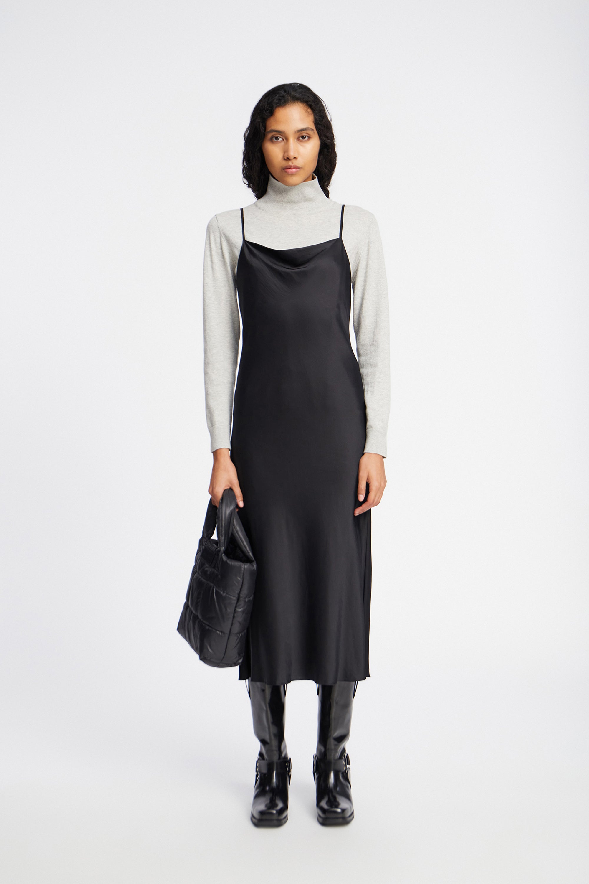 Beautiful fitted medi-long strap dress. The dress is made from an elegant and soft viscose blend.
