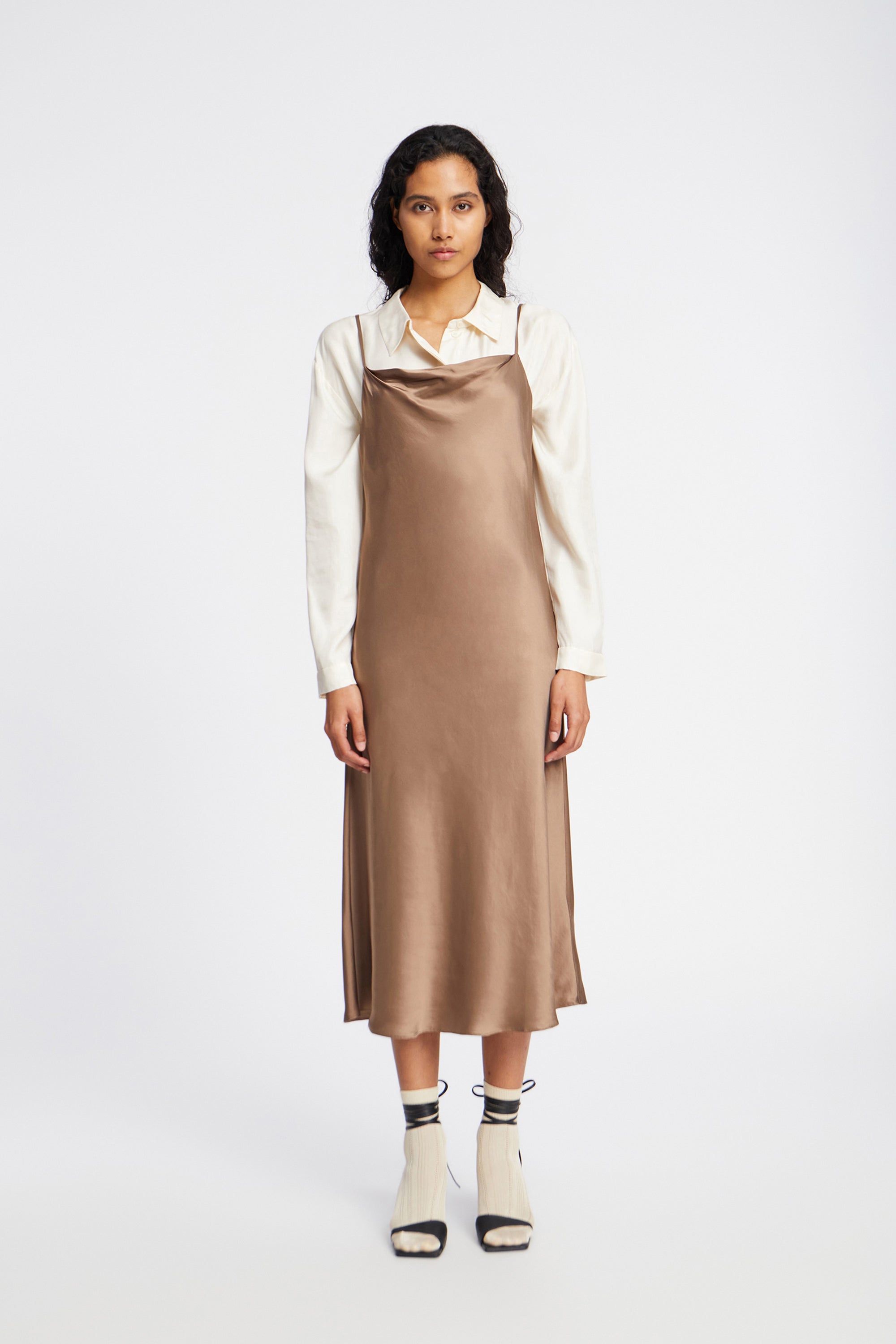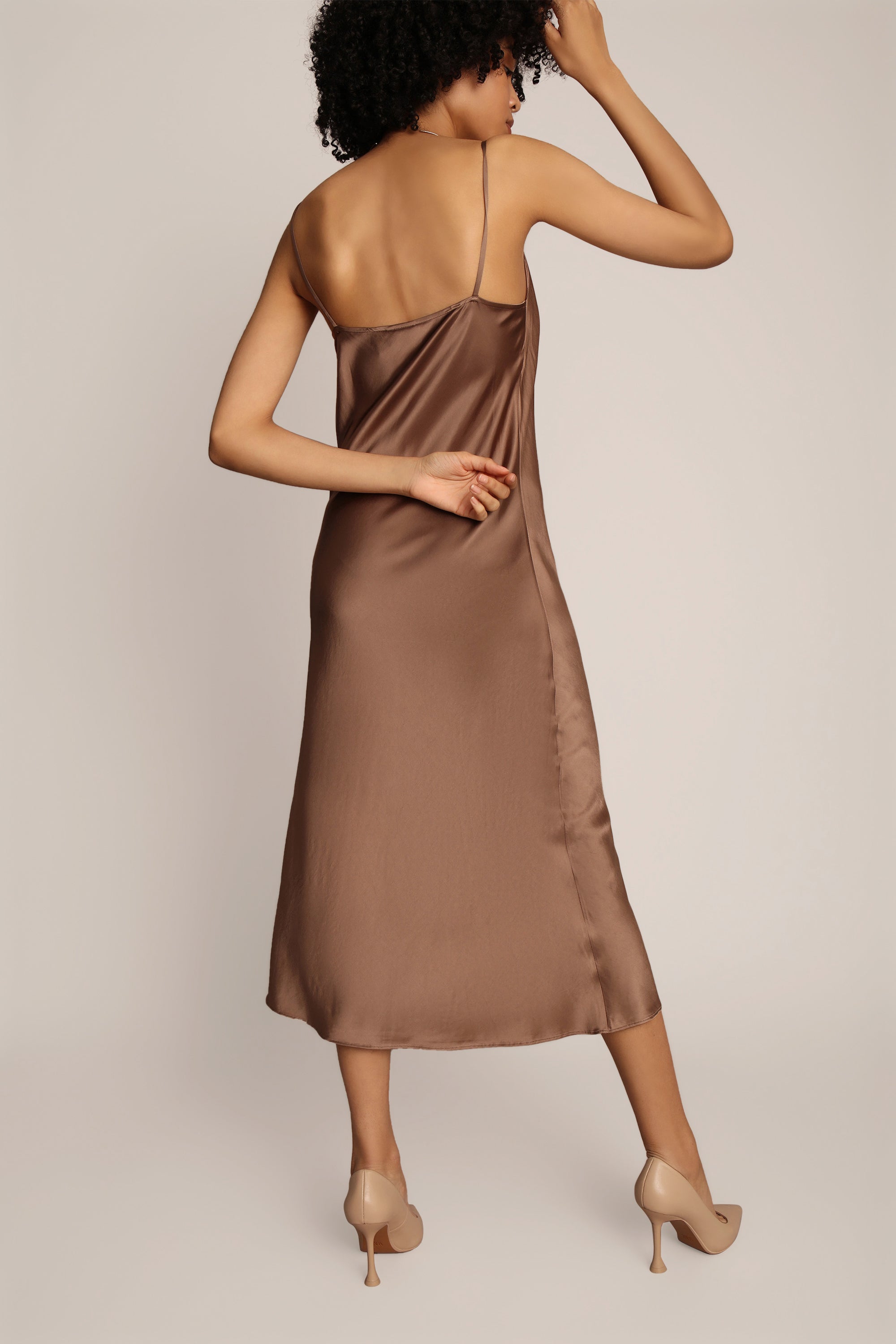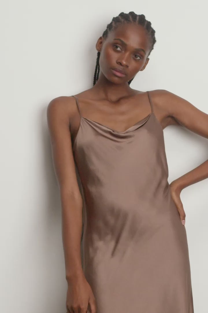 Beautiful fitted medi-long strap dress. The dress is made from an elegant and soft viscose blend.