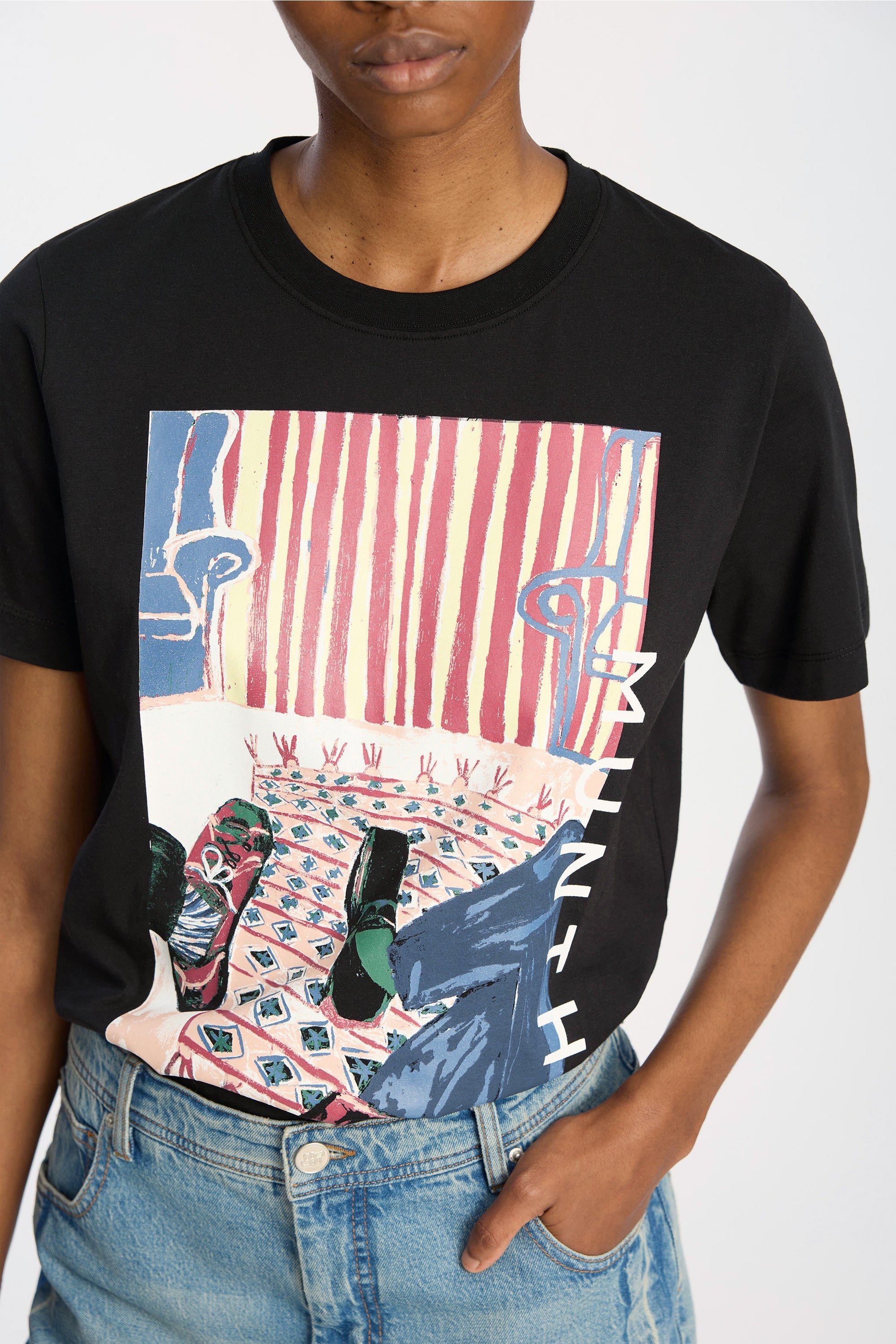 T-shirt with artistic print. The t-shirt has a round neck, short sleeves and regular fit.