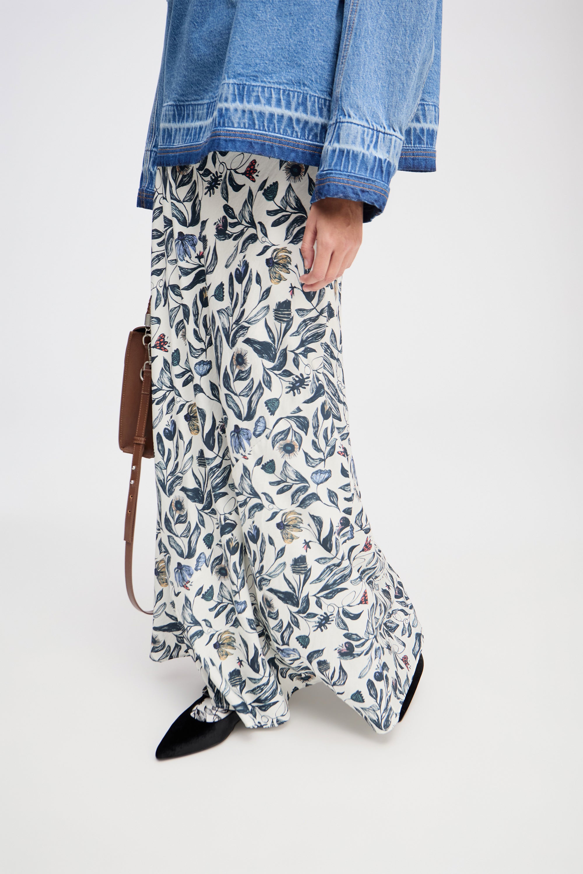 Skirt with a beautiful floral print and elegant, discreet diagonal stitching. The skirt has a lightweight look and is designed in a regular fit with an elastic waistband.