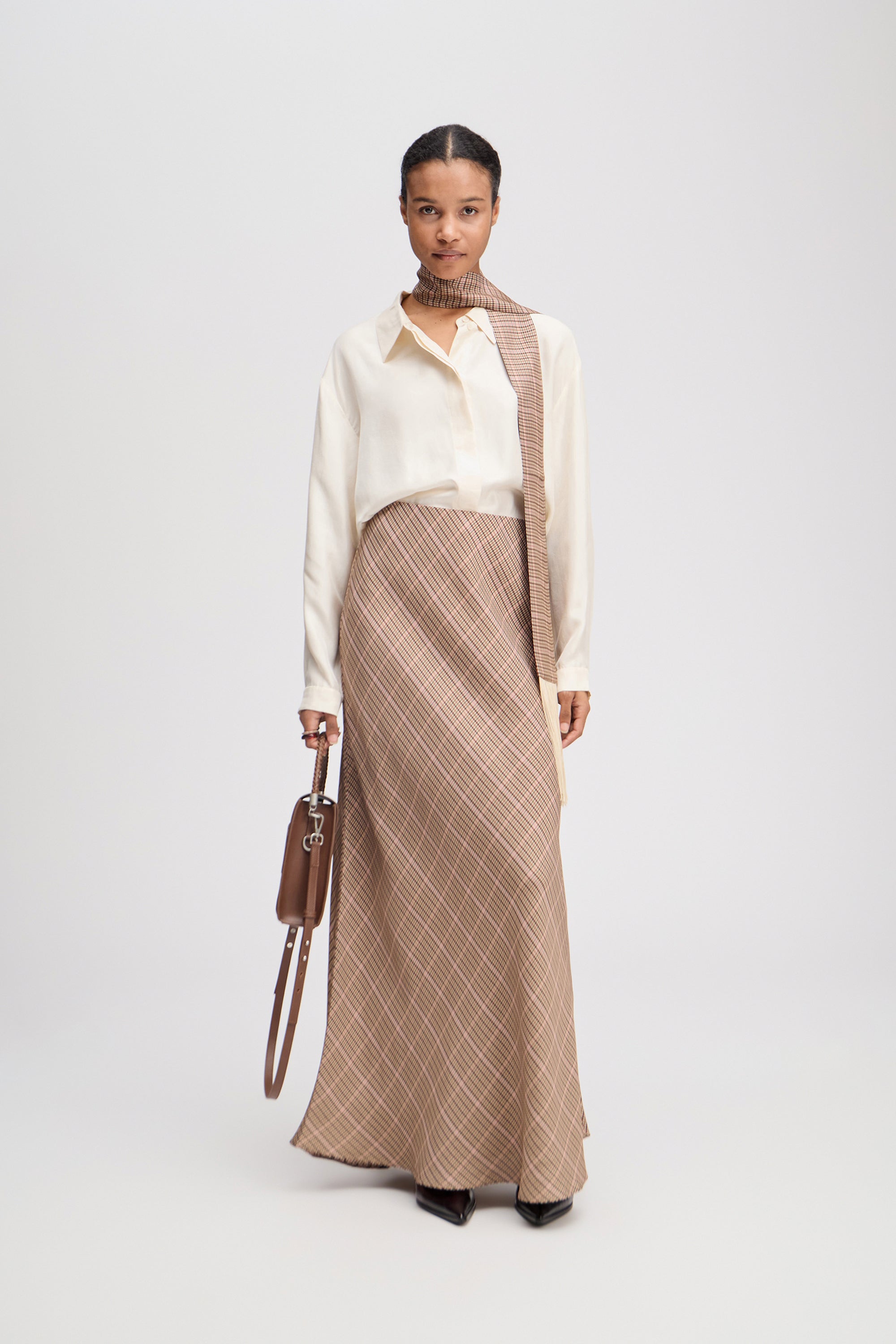 Beautiful skirt with small checks and elegant, discreet diagonal stitching. The skirt has a lightweight look and is designed in a regular fit with an elastic waistband.
