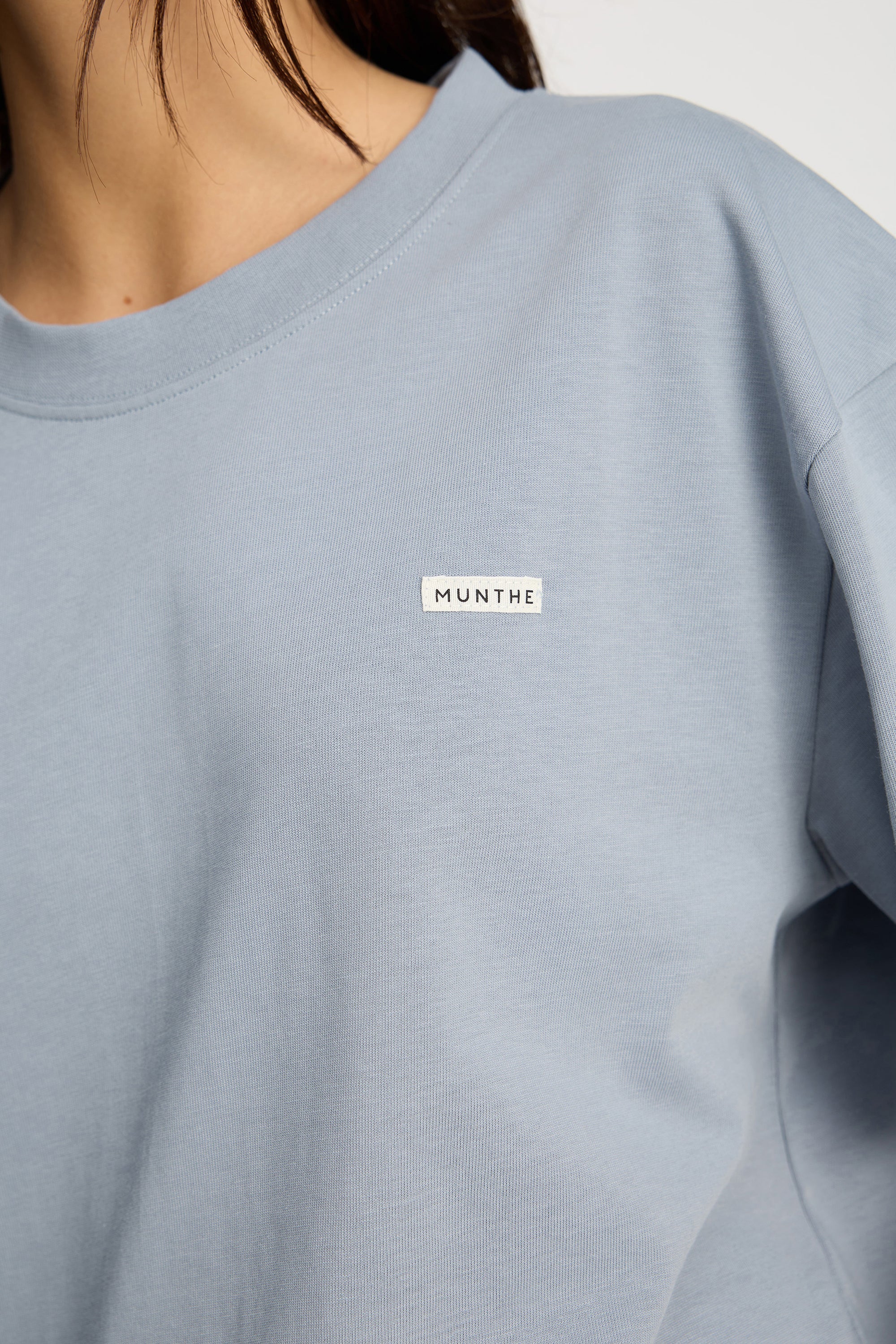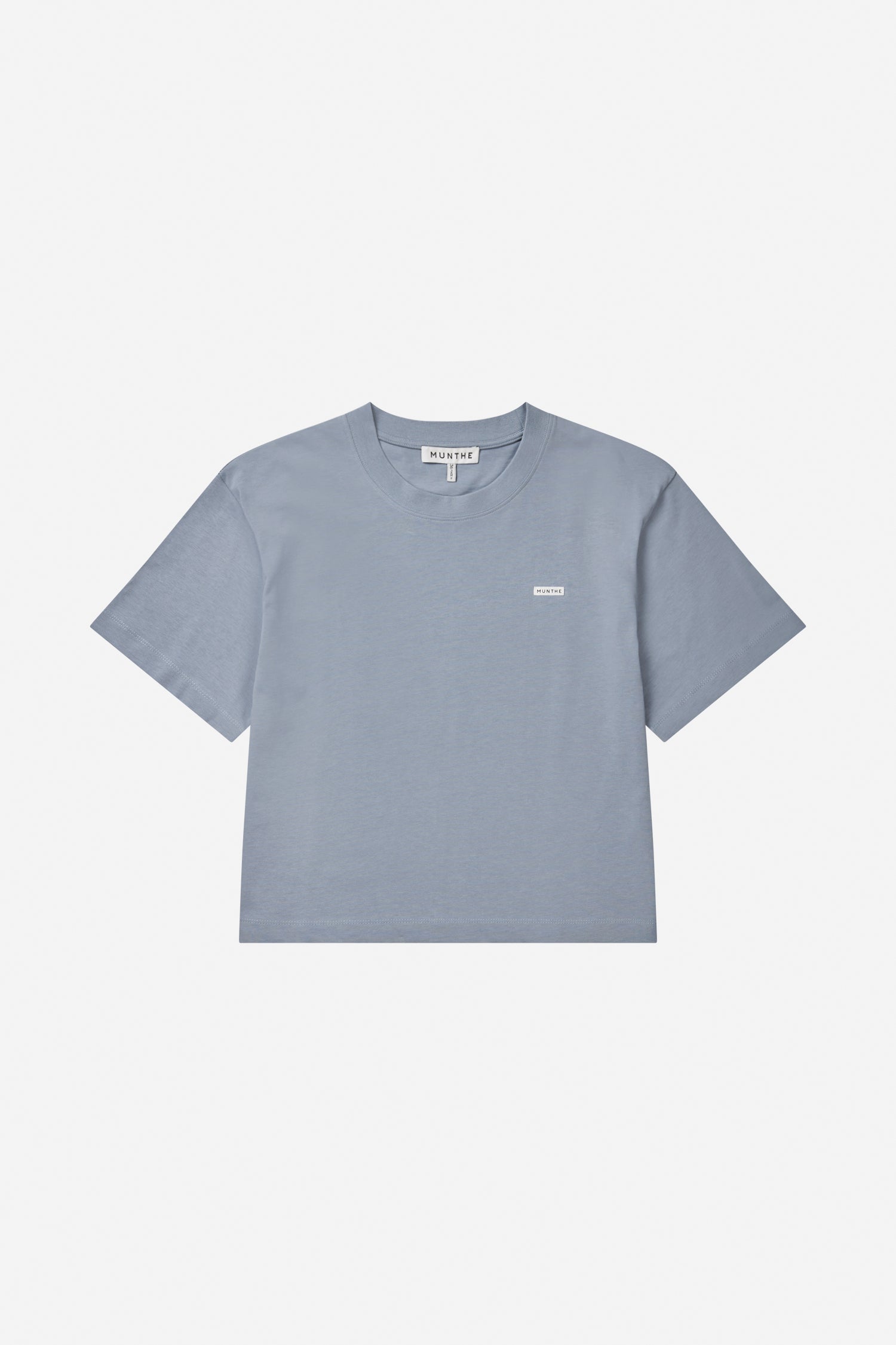 T-shirt with a cropped fit and discrete MUNTHE logo. The t-shirt has a round neck, short sleeves and a loose fit.