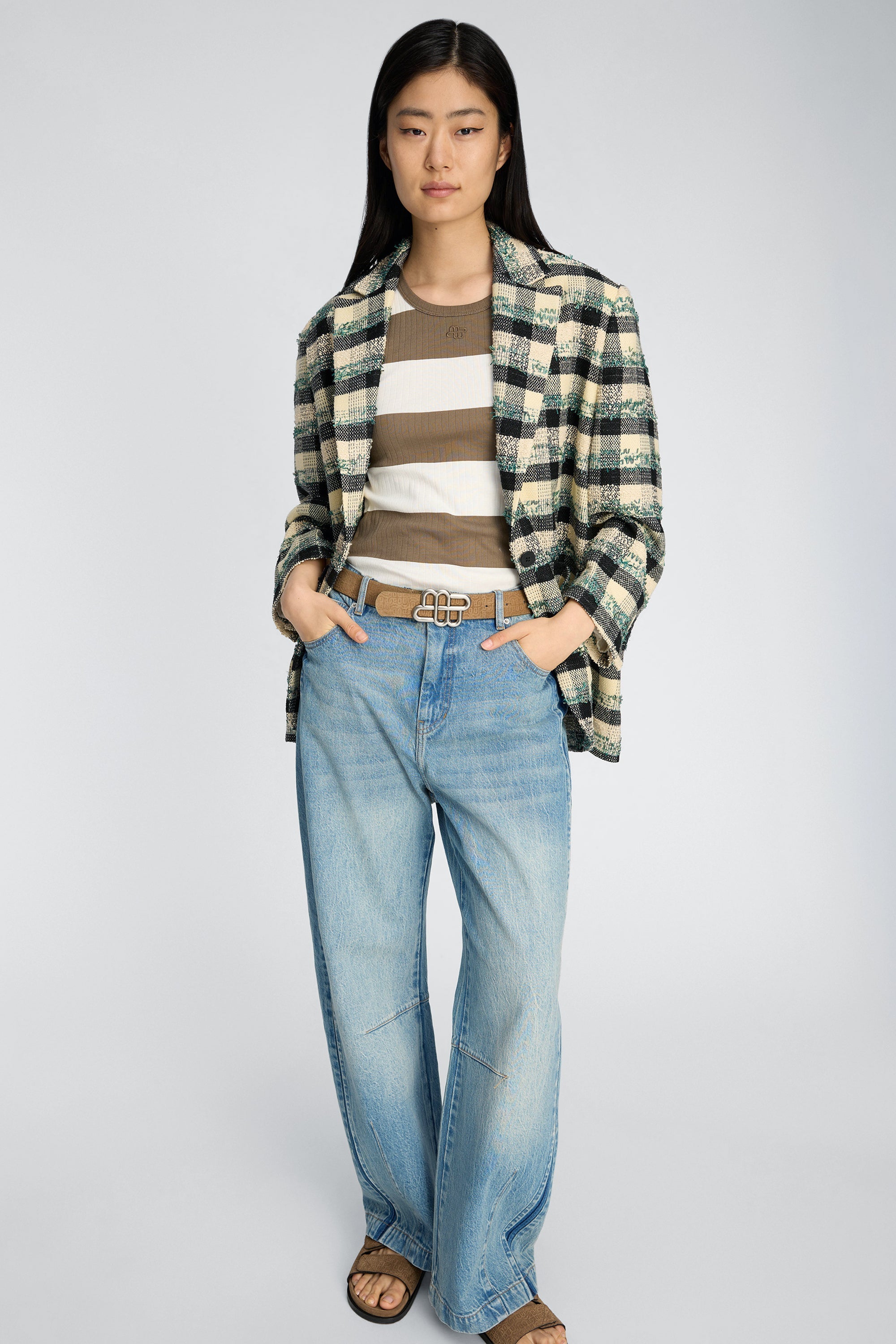 These jeans feature a wide, relaxed fit, distinct side panels in a darker denim wash, a classic five pocket-design. Subtle fading and visible stitching complete the refined denim look.