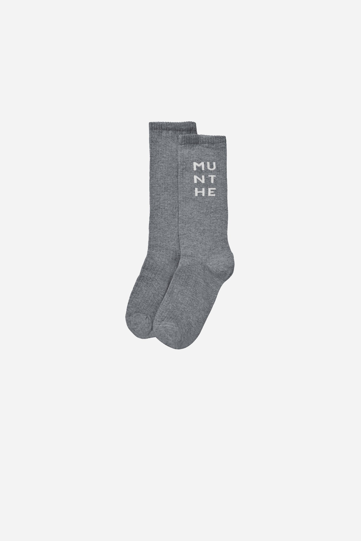 One-size rib socks in a soft cotton blend, with a MUNTHE logo at the top of each sock.