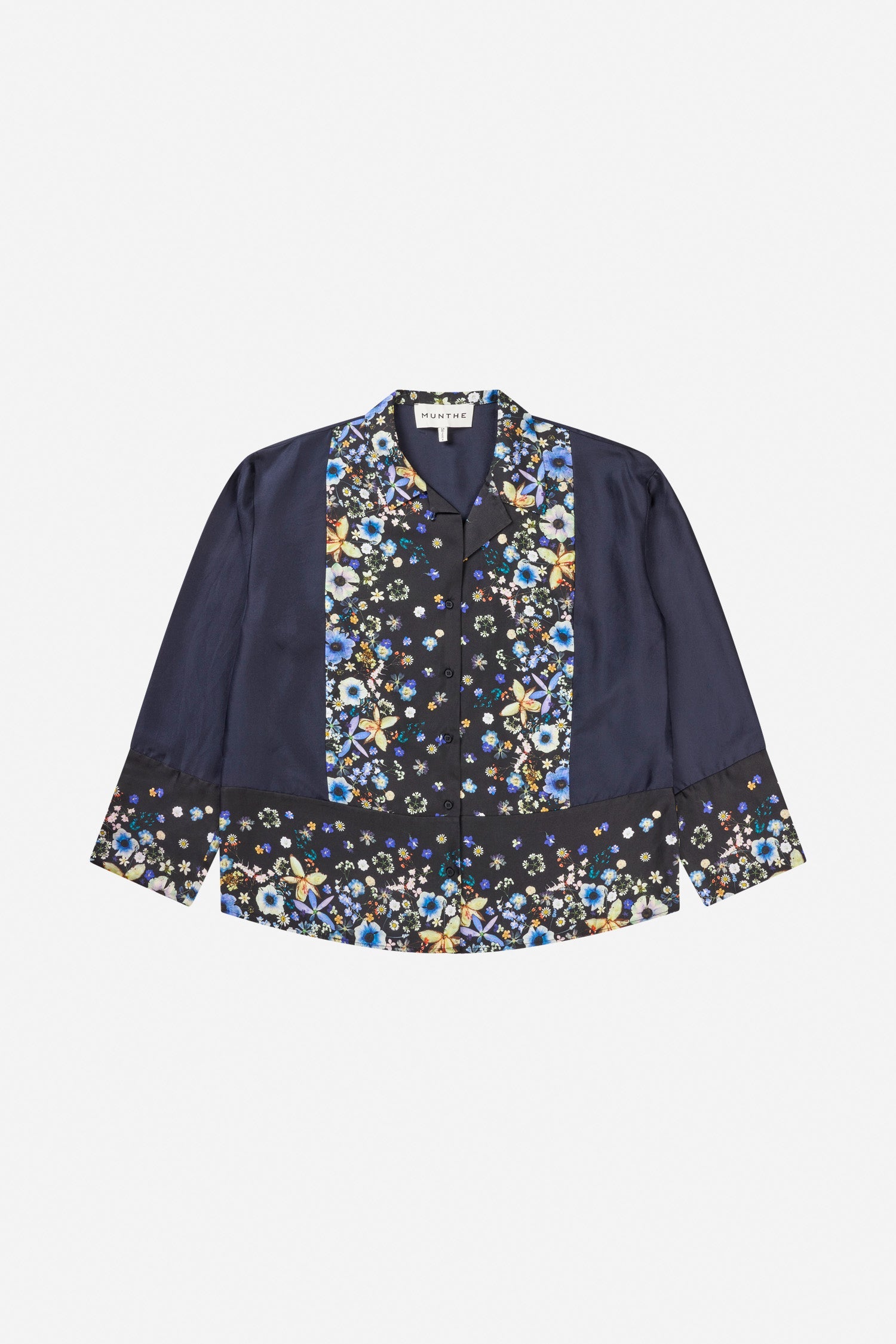 A beautiful shirt featuring an elegant print, made from flowers Naja Munthe planted in her own garden. The shirt is made from 100% silk, and has long sleeves and a small collar.