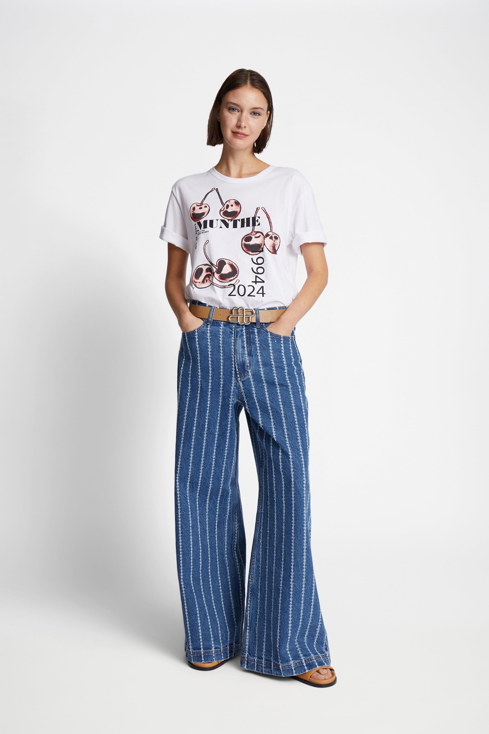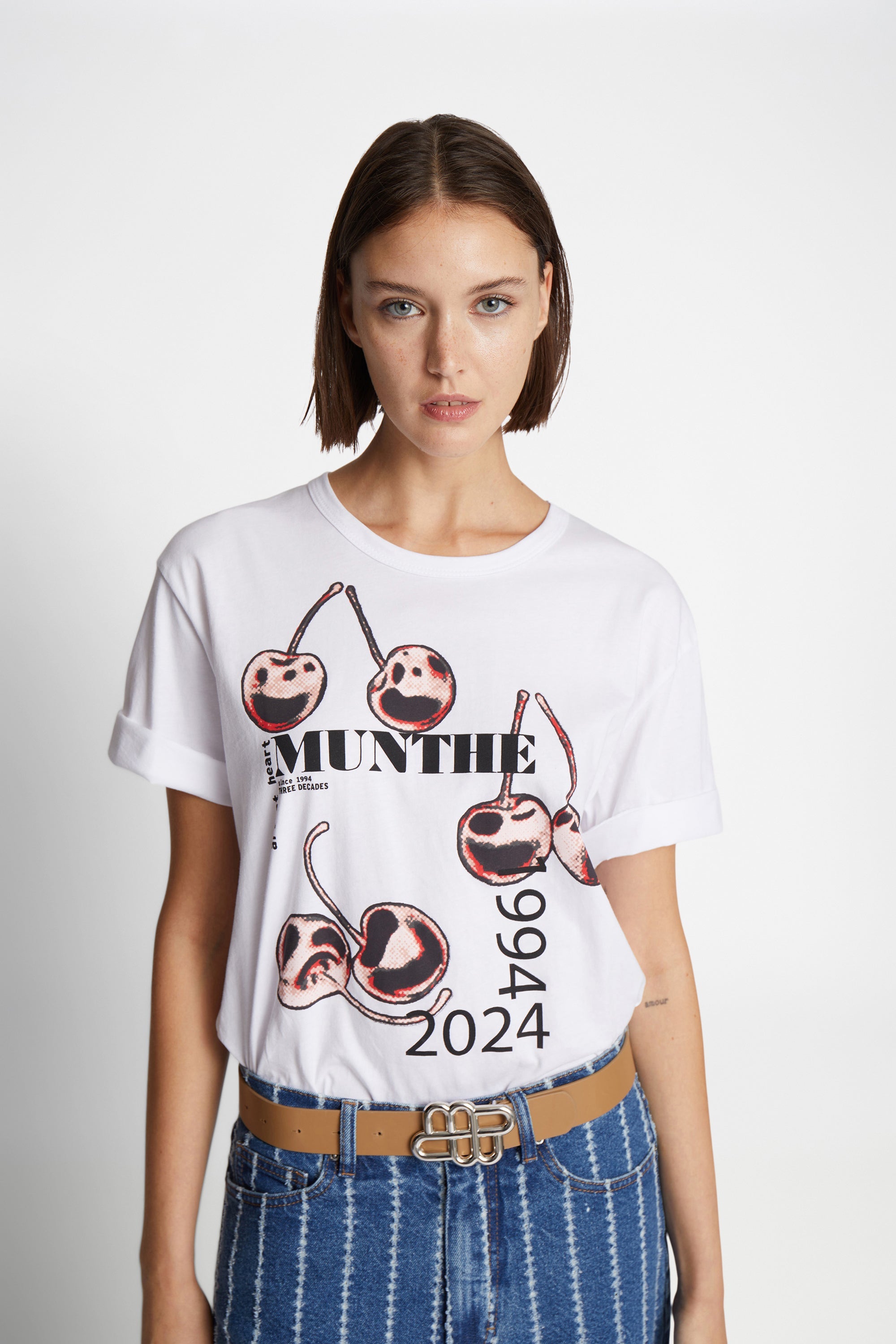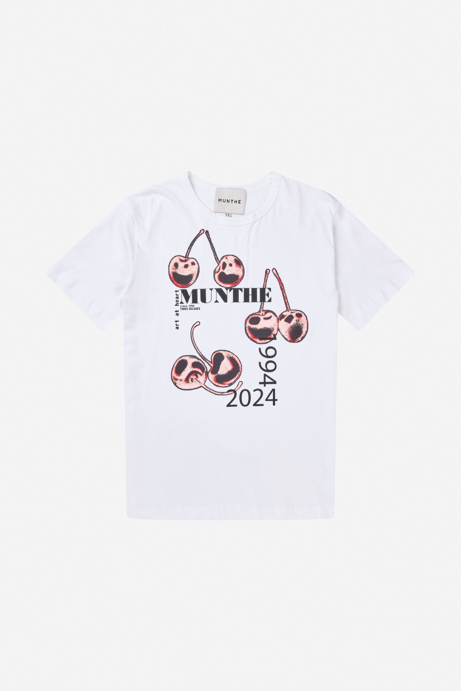 Elegant t-shirt with a graphic MUNTHE 30-year anniversary print at the front. The t-shirt has a regular fit, a round neck, short sleeves, and is made from 100% organic cotton.