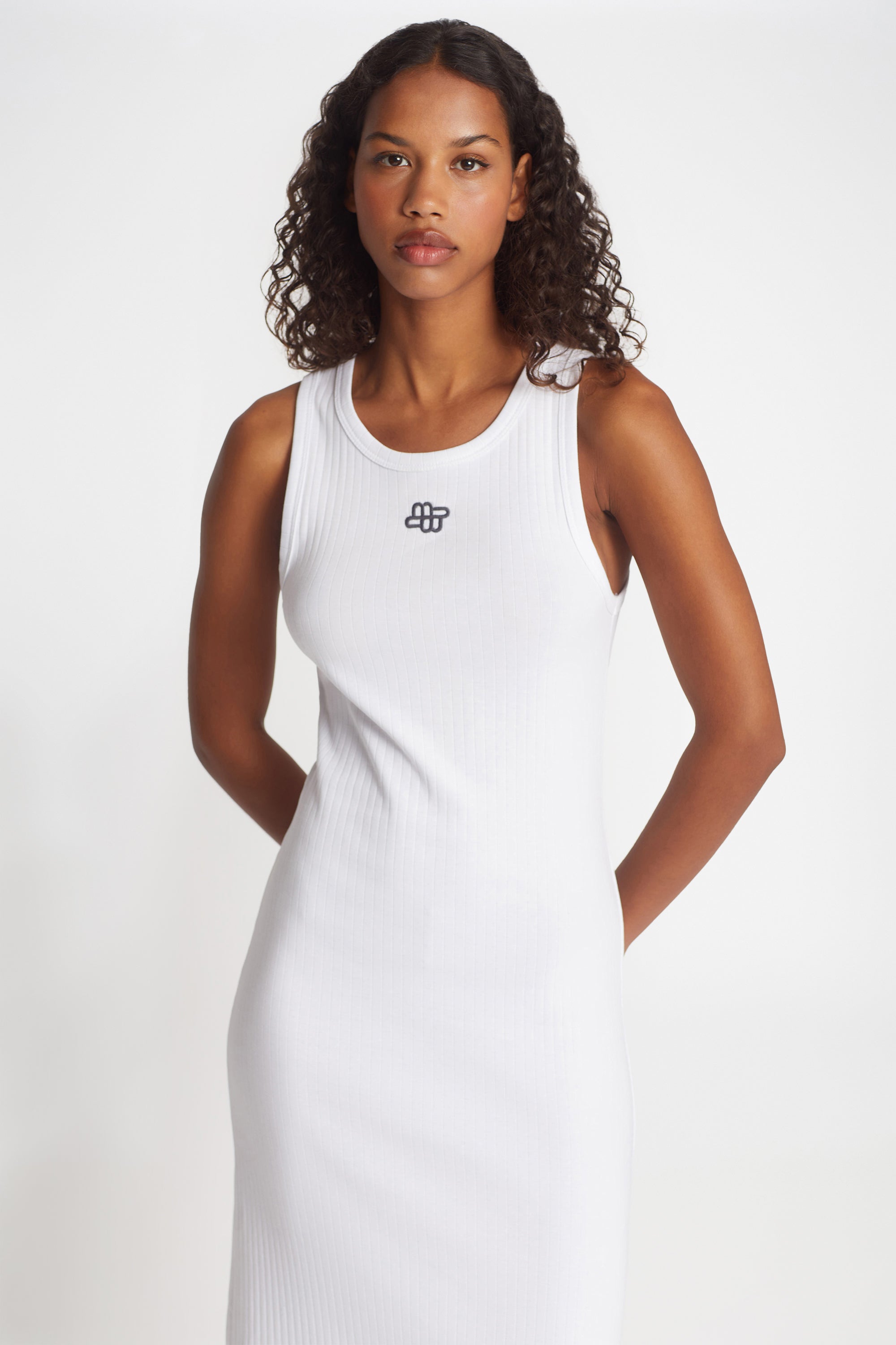 Soft long rib dress with a beautiful MUNTHE emblem on the chest. The dress is made of 100% organic cotton.