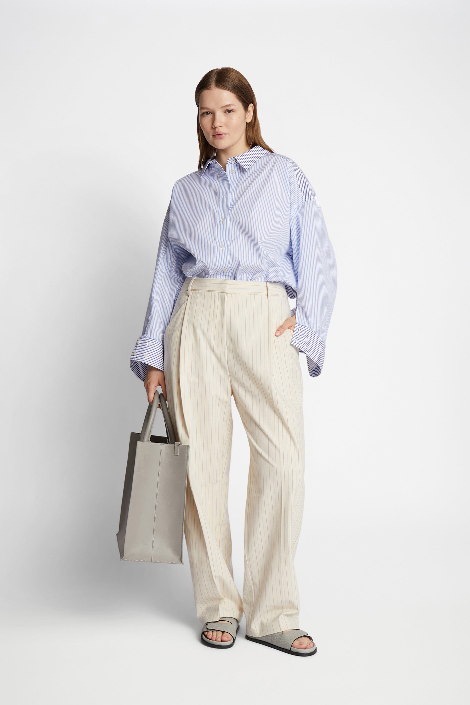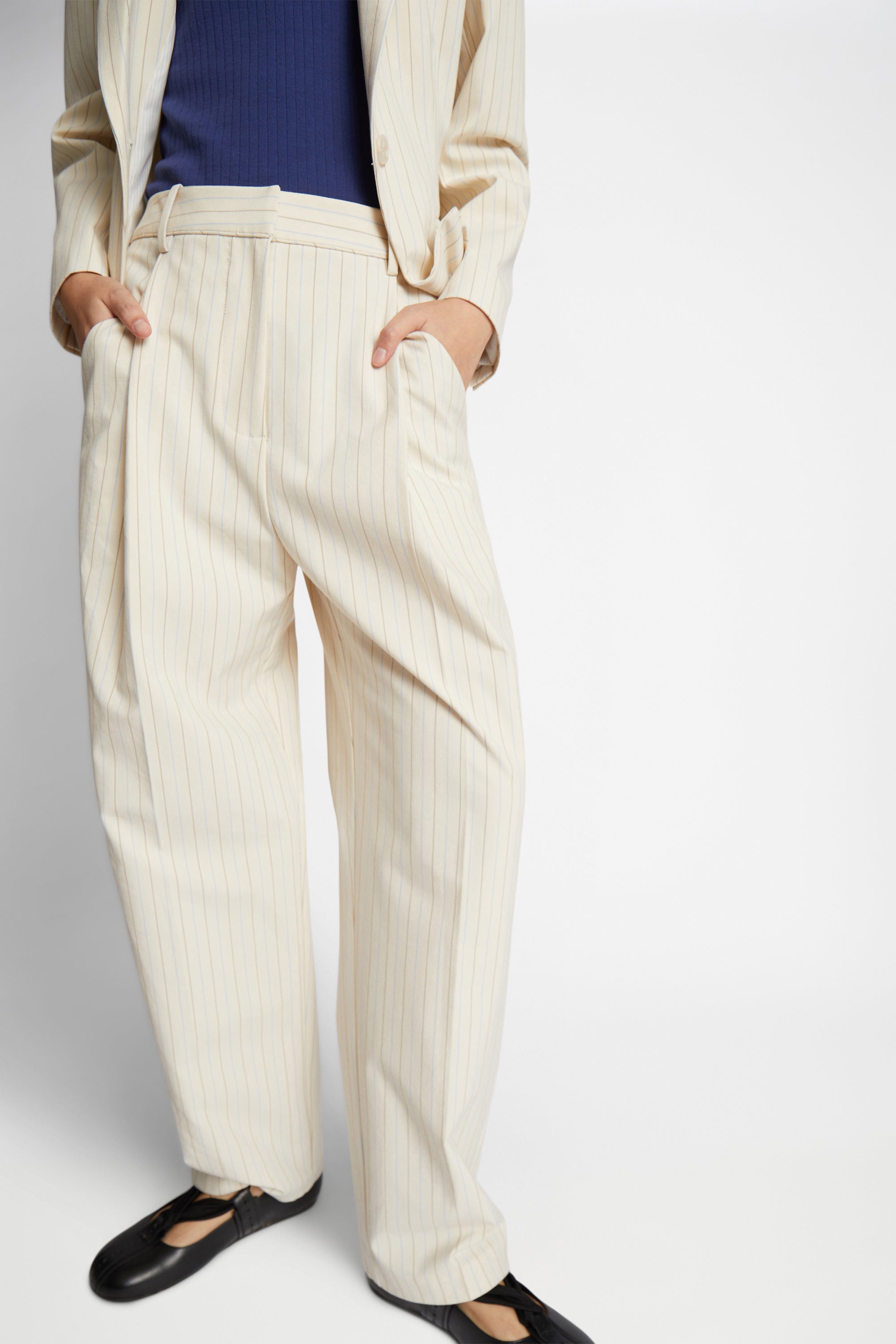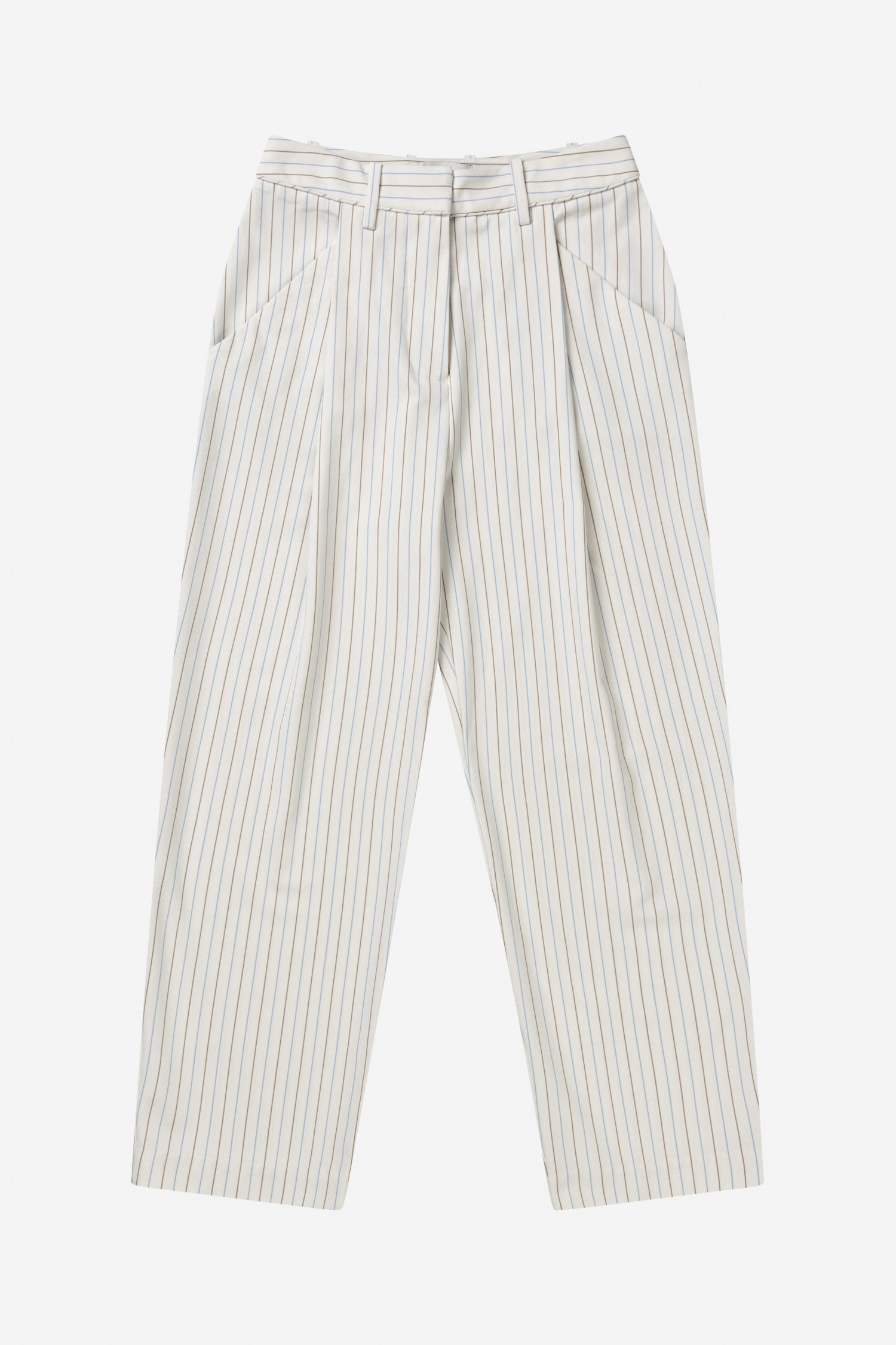 Beautiful pinstriped suit pants, with elegant details like press pleats and pockets on the sides. These pants have a zip closure at the front.