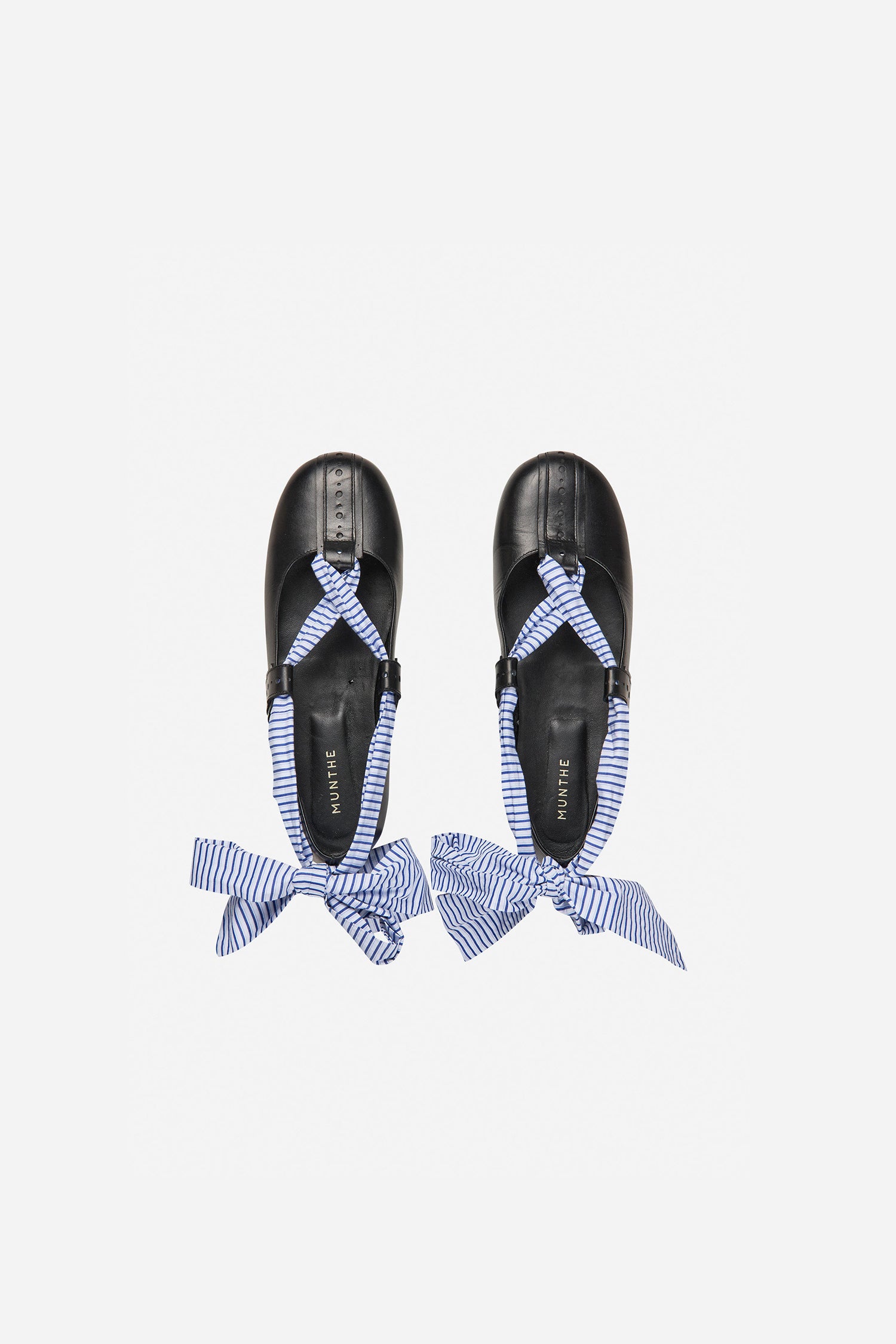 Elegant shoes with a beautiful band that weaves around the shoe and can be tied into a small bow at the back. This versatile shoe comes with the option to change the string to a pinstriped band.