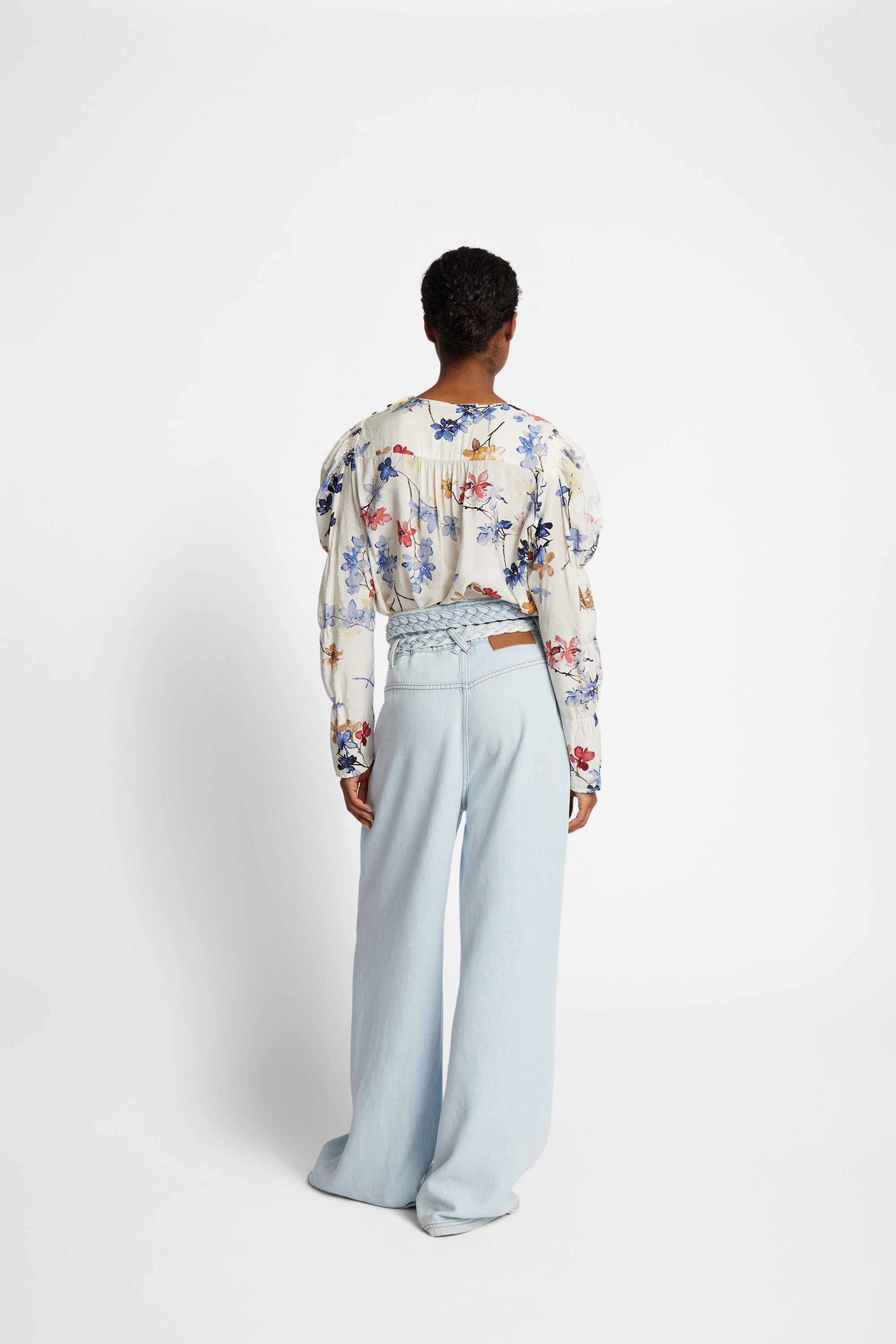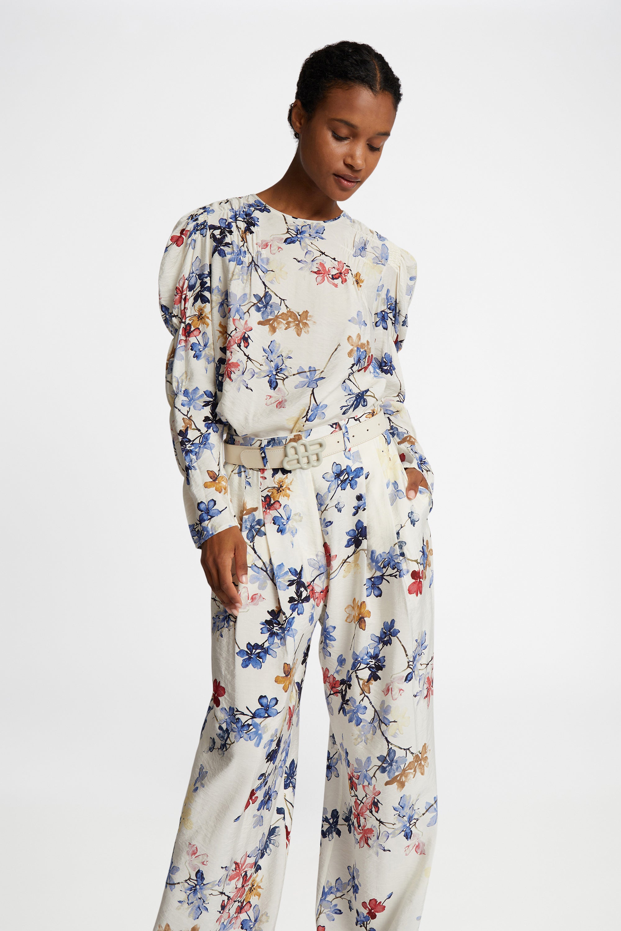 Blouse with an elegant floral print, and beautiful wrinkle details on the shoulder, sleeves and chest. The blouse is designed with long sleeves and has a regular fit.