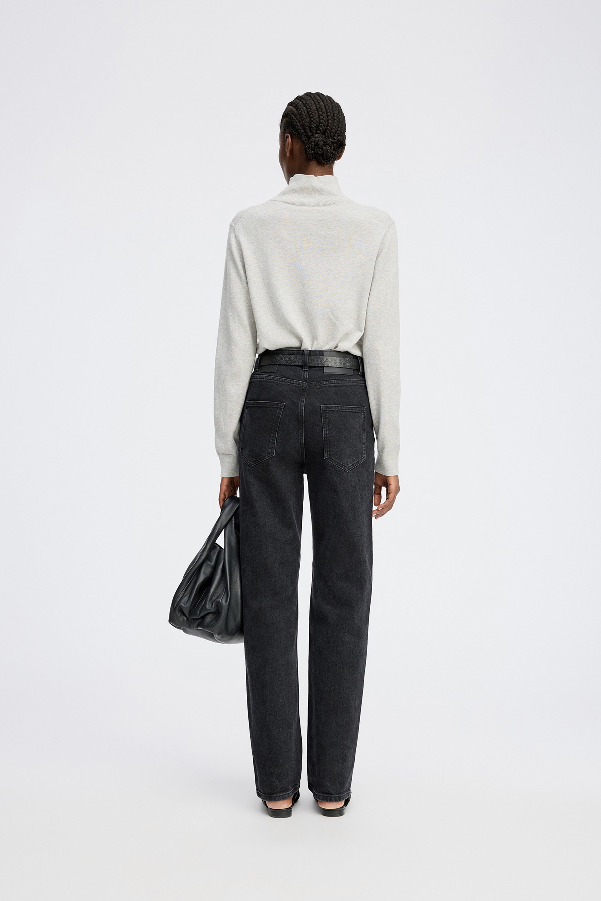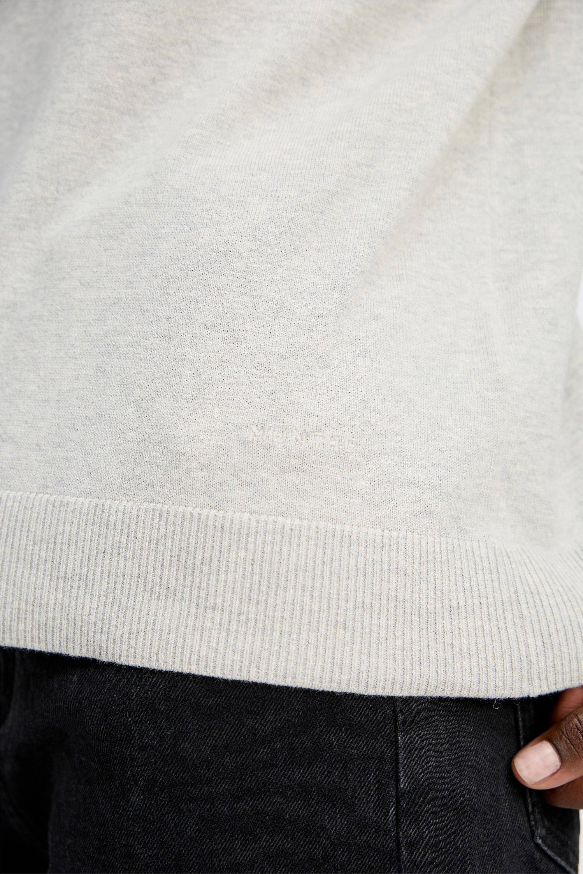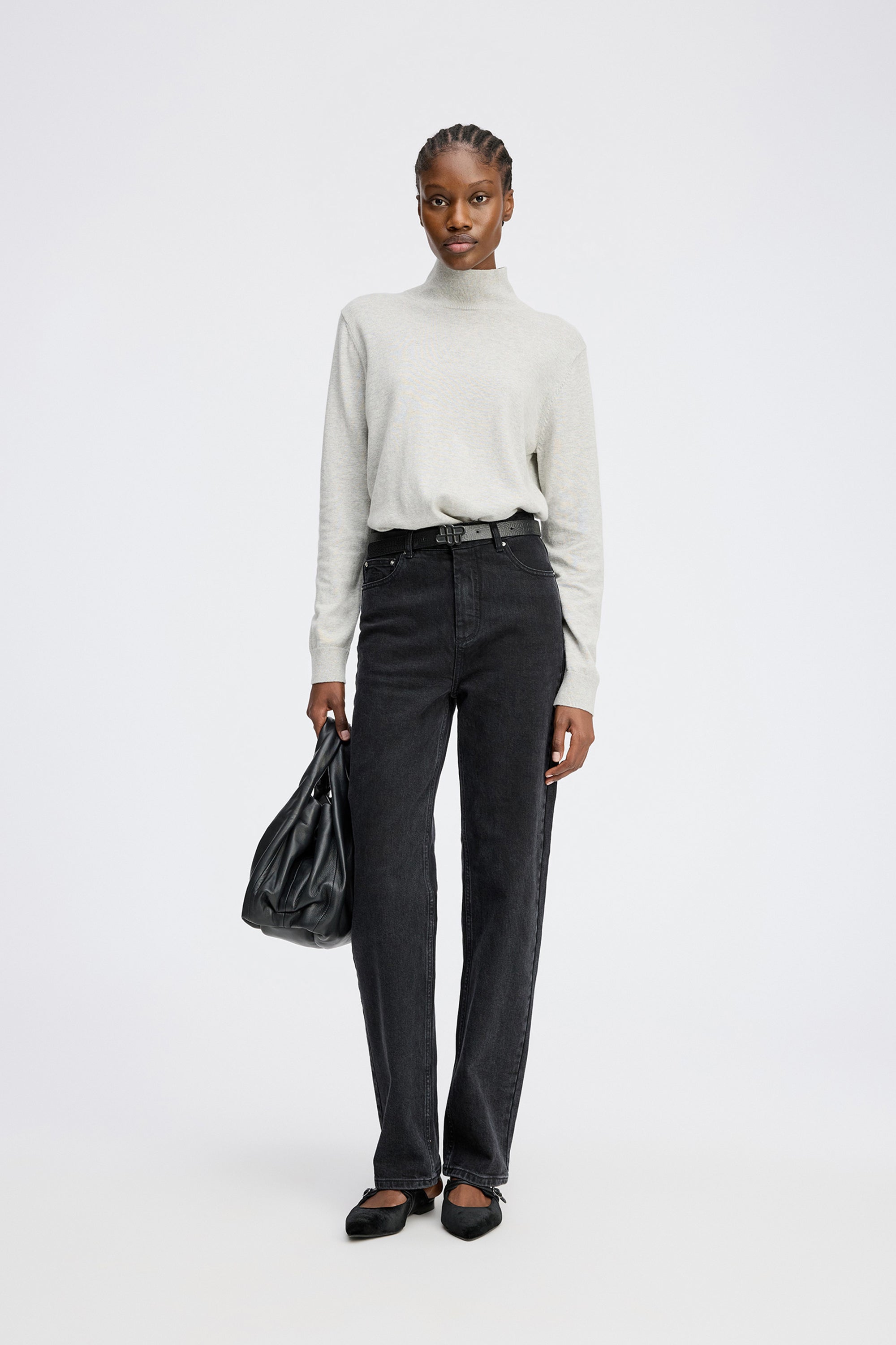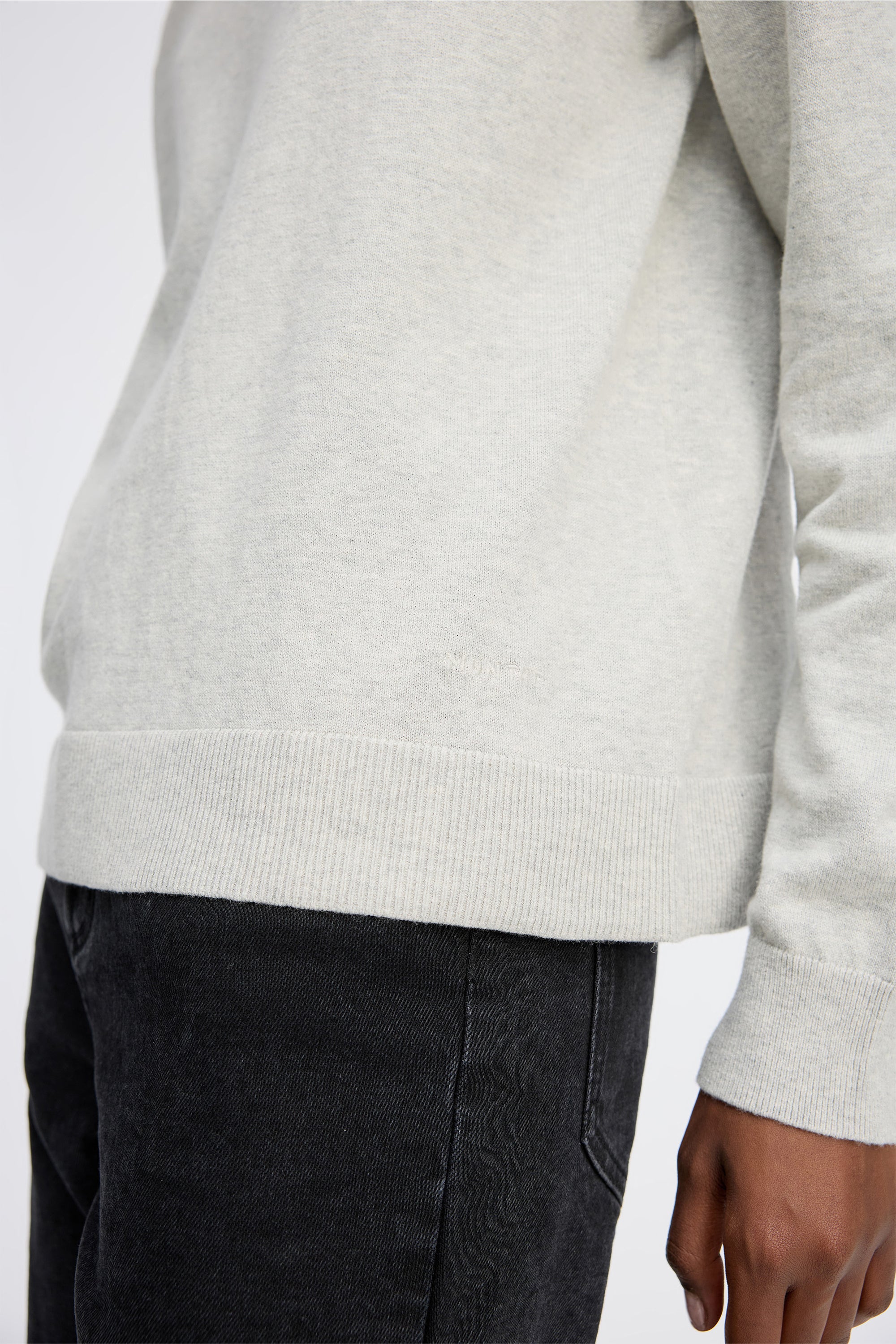 Classic light knit made from a soft merino wool blend. This knit has long sleeves, a t-neck, and an elegant rib along the edges.