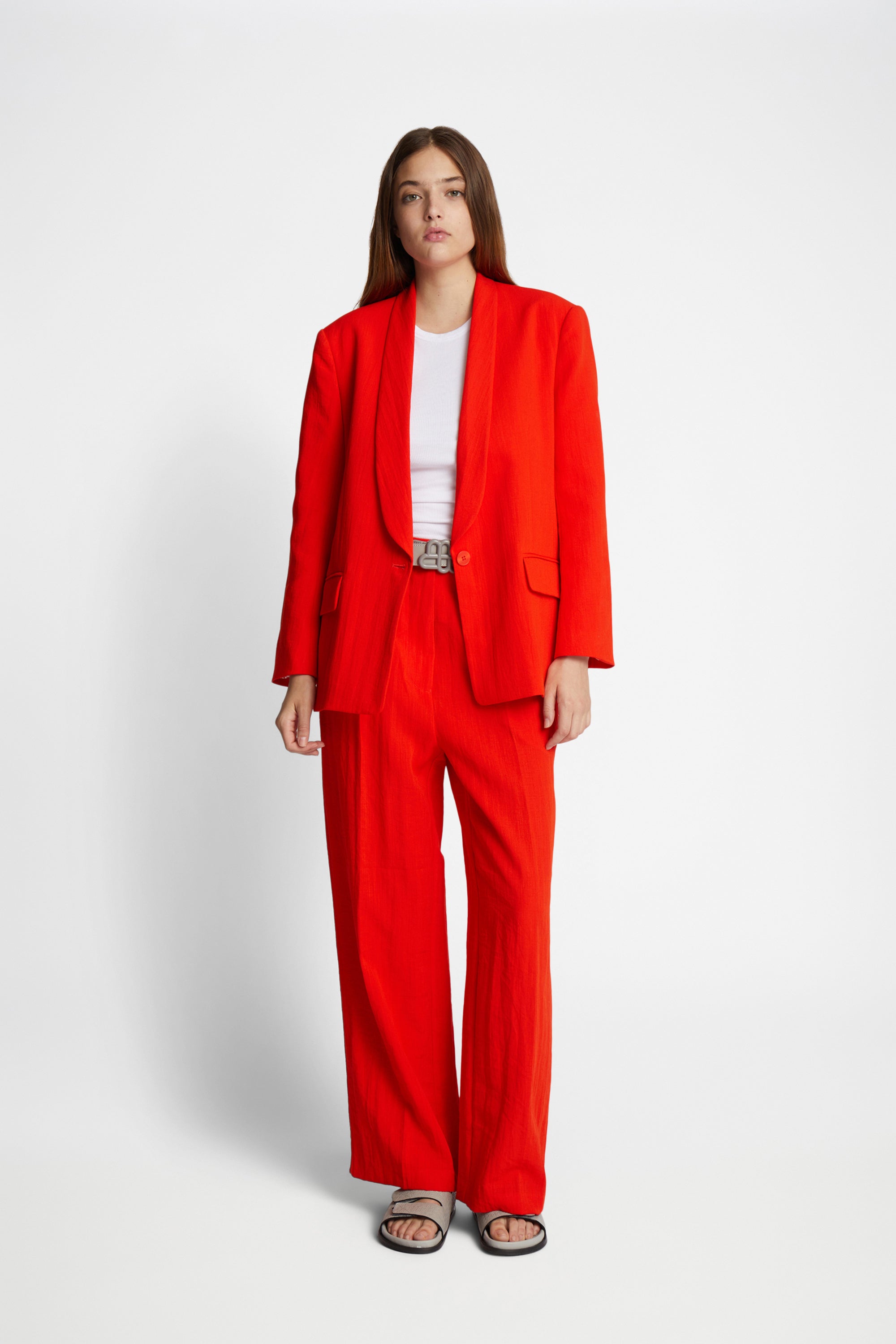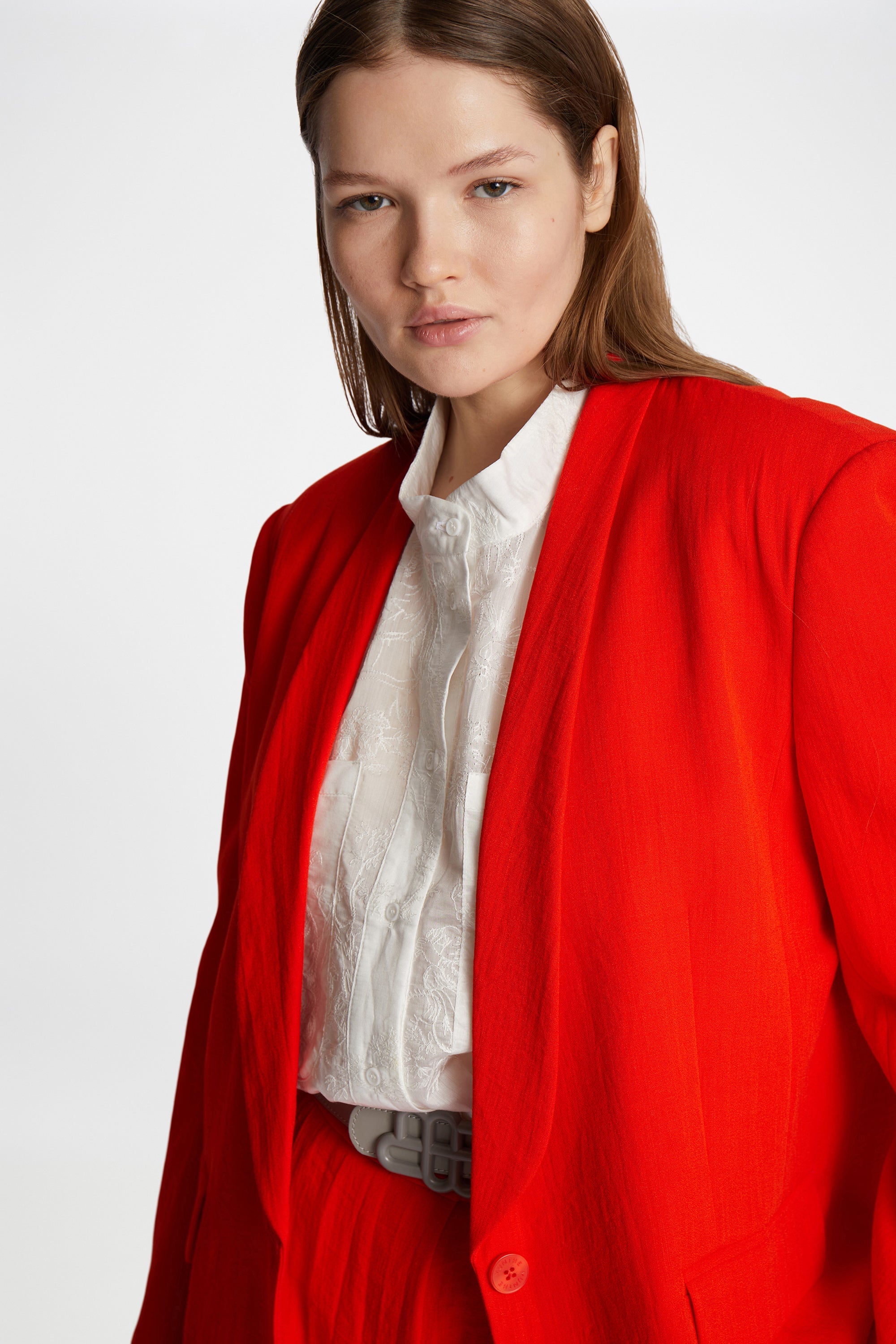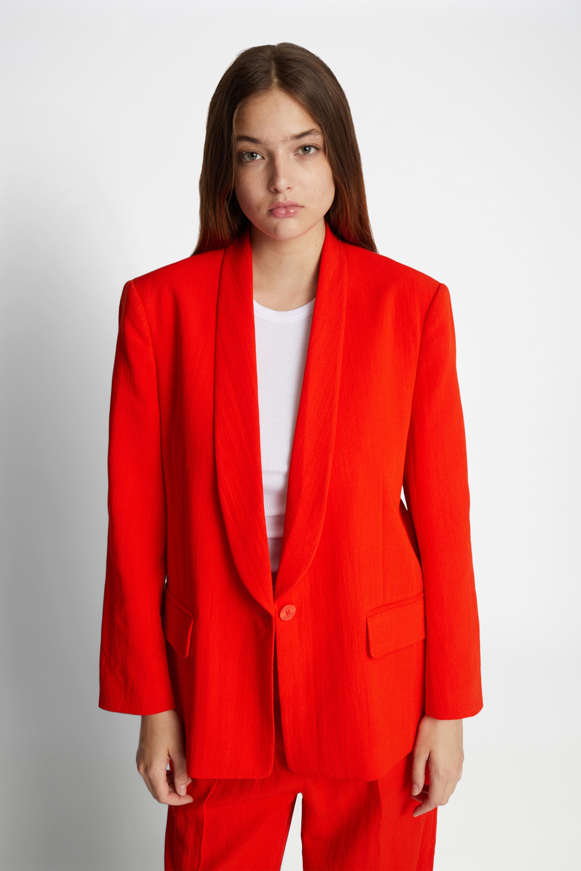Elegant blazer with a smoking-inspired design. The blazer has a regular fit with straight shoulders, long sleeves, and flap pockets at the front.