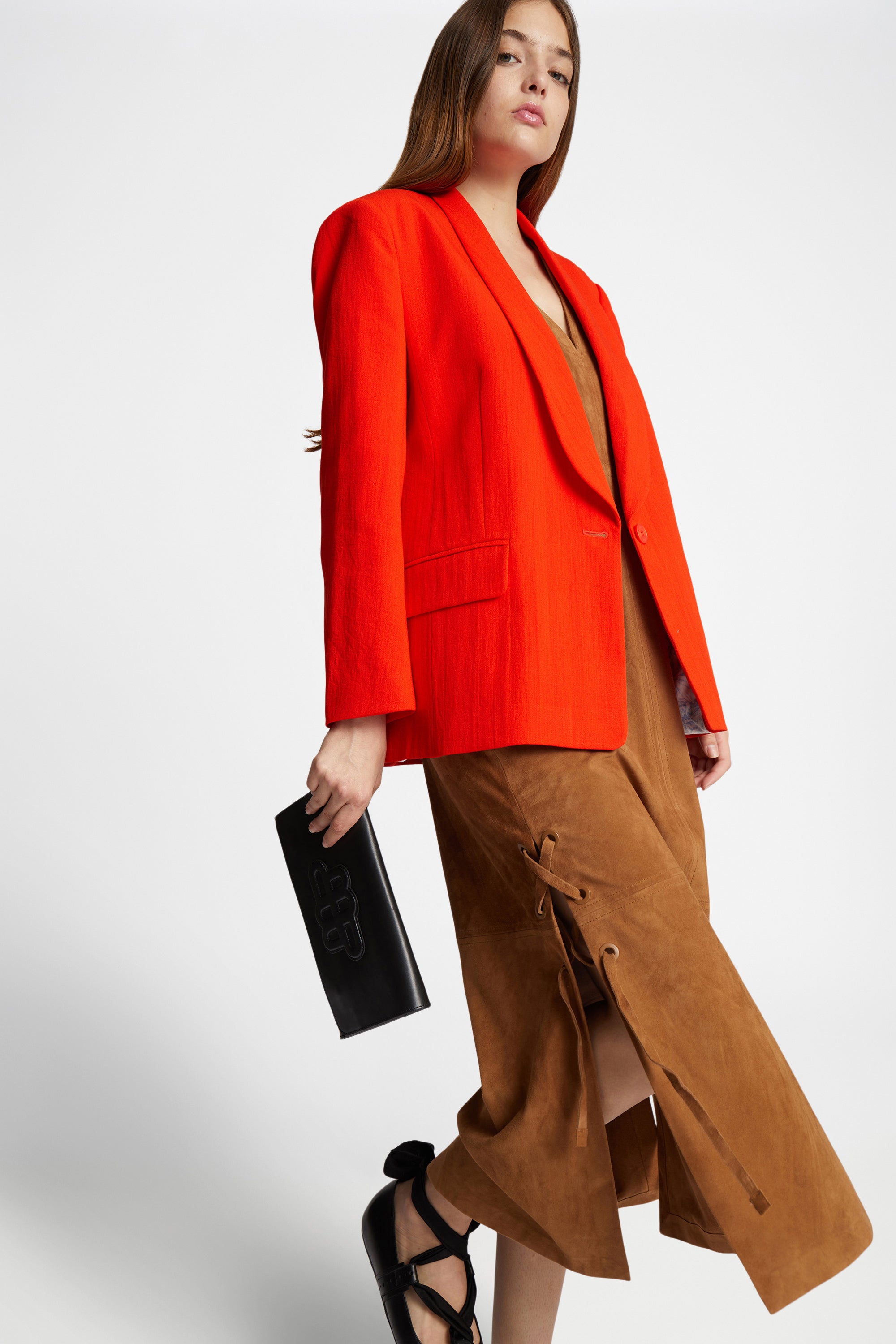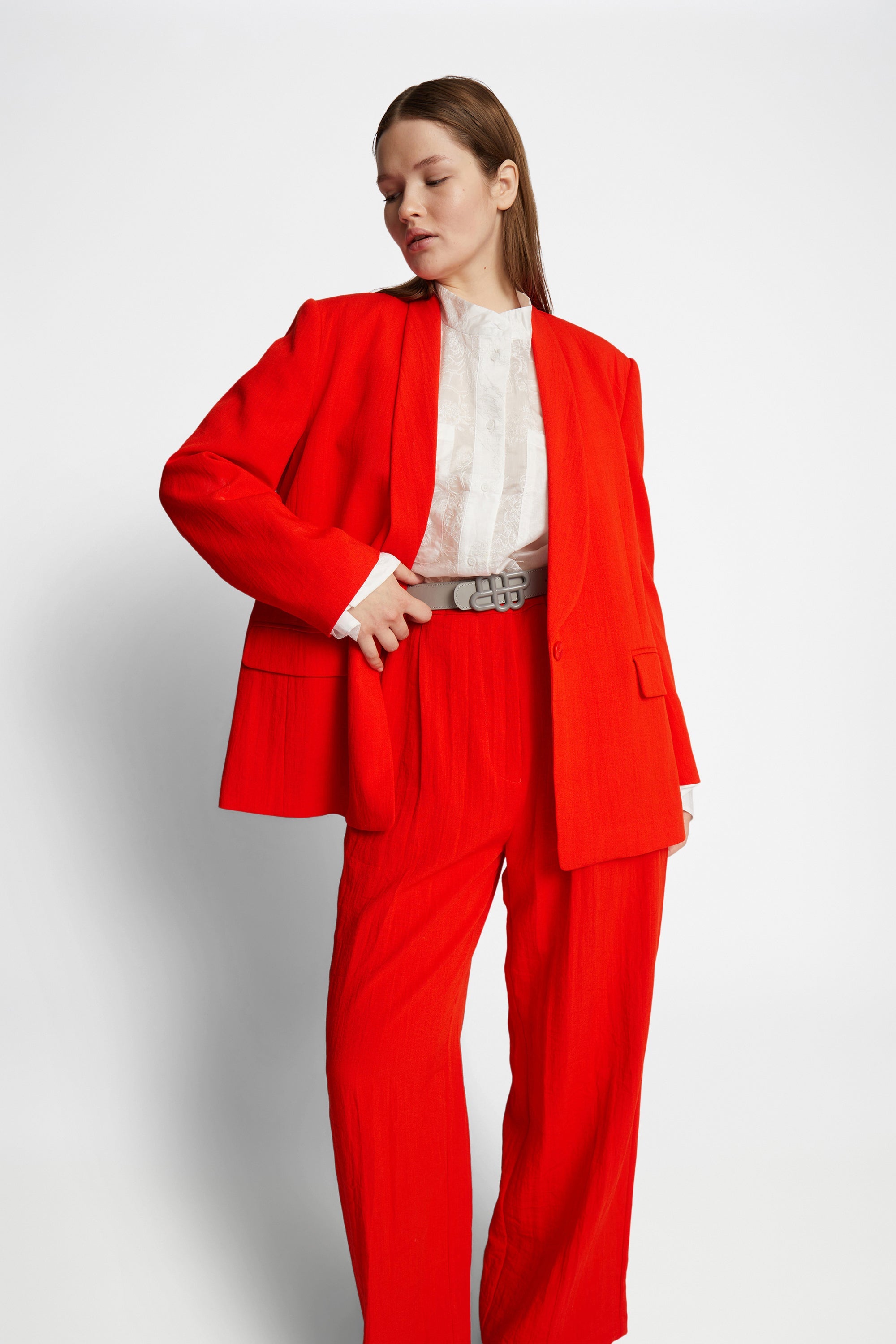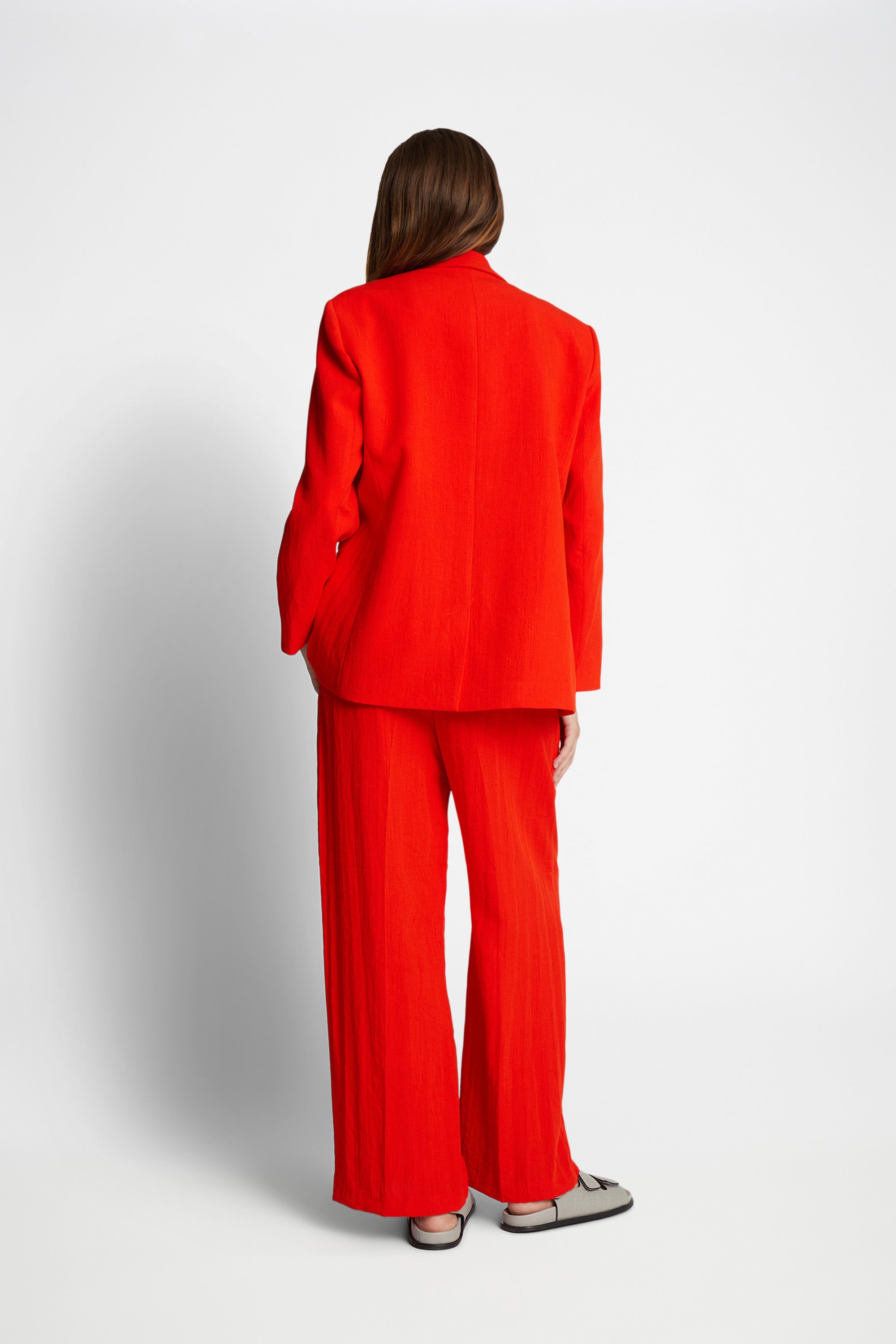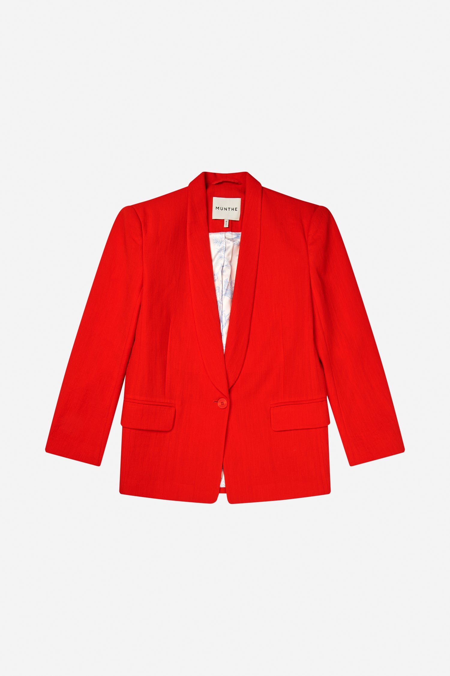 Elegant blazer with a smoking-inspired design. The blazer has a regular fit with straight shoulders, long sleeves, and flap pockets at the front.