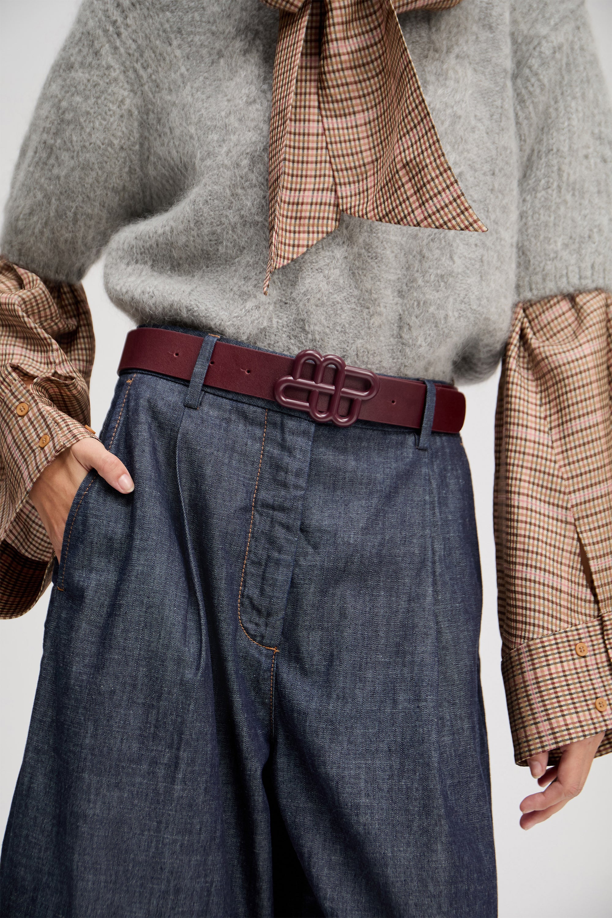 Belt with a beautiful MUNTHE emblem jewelry closure at the front. The belt is made of 100% leather.
