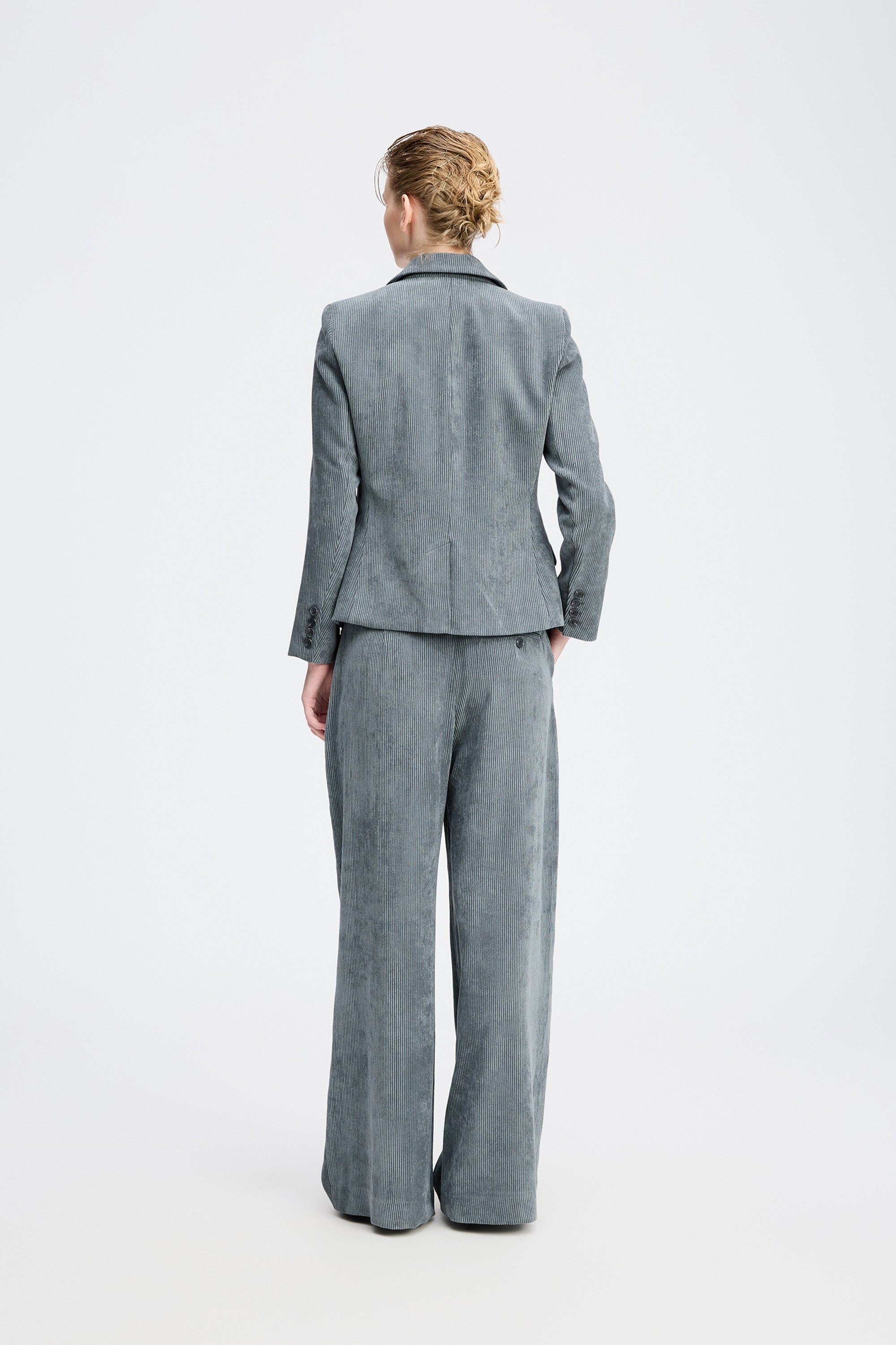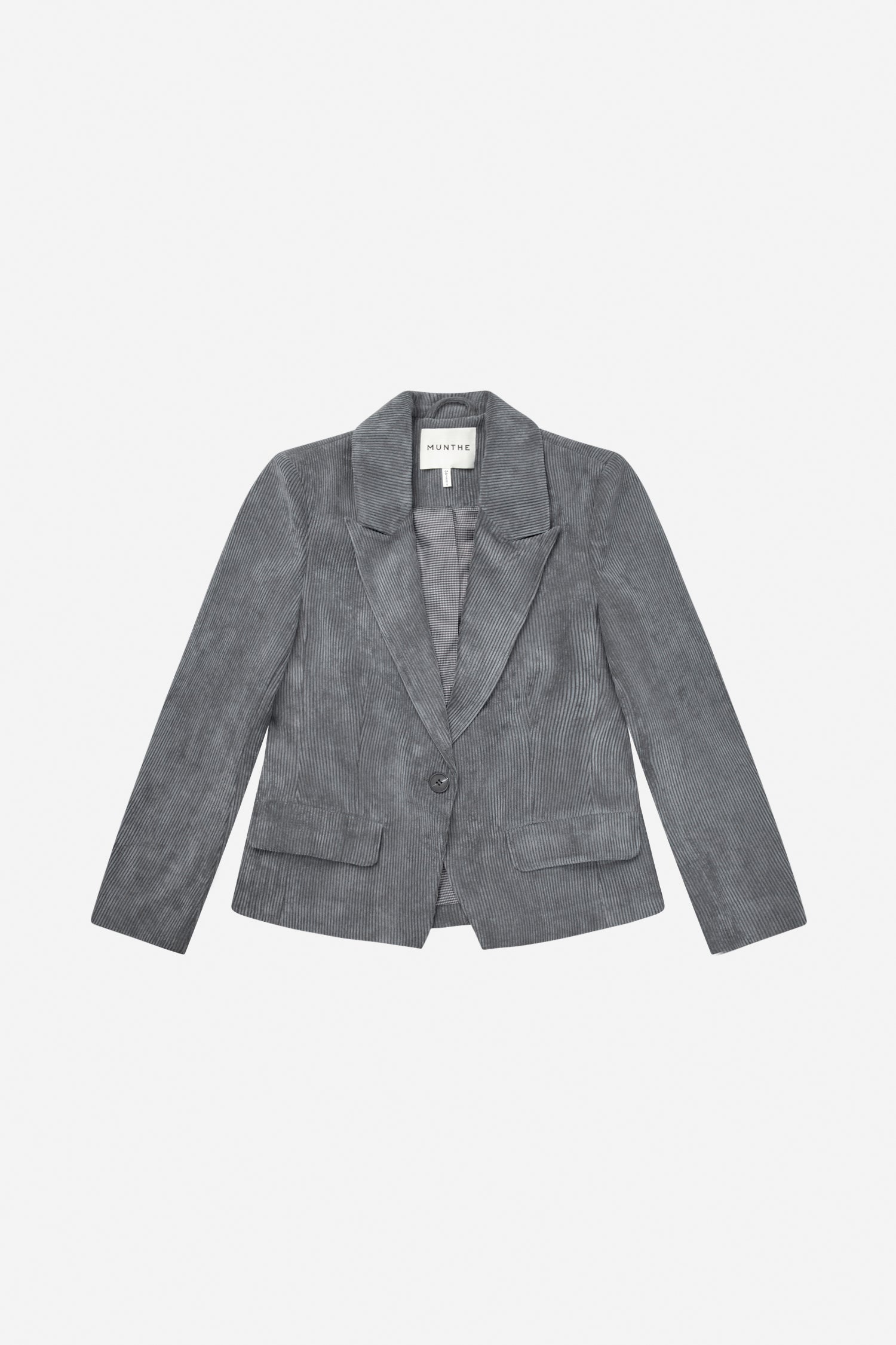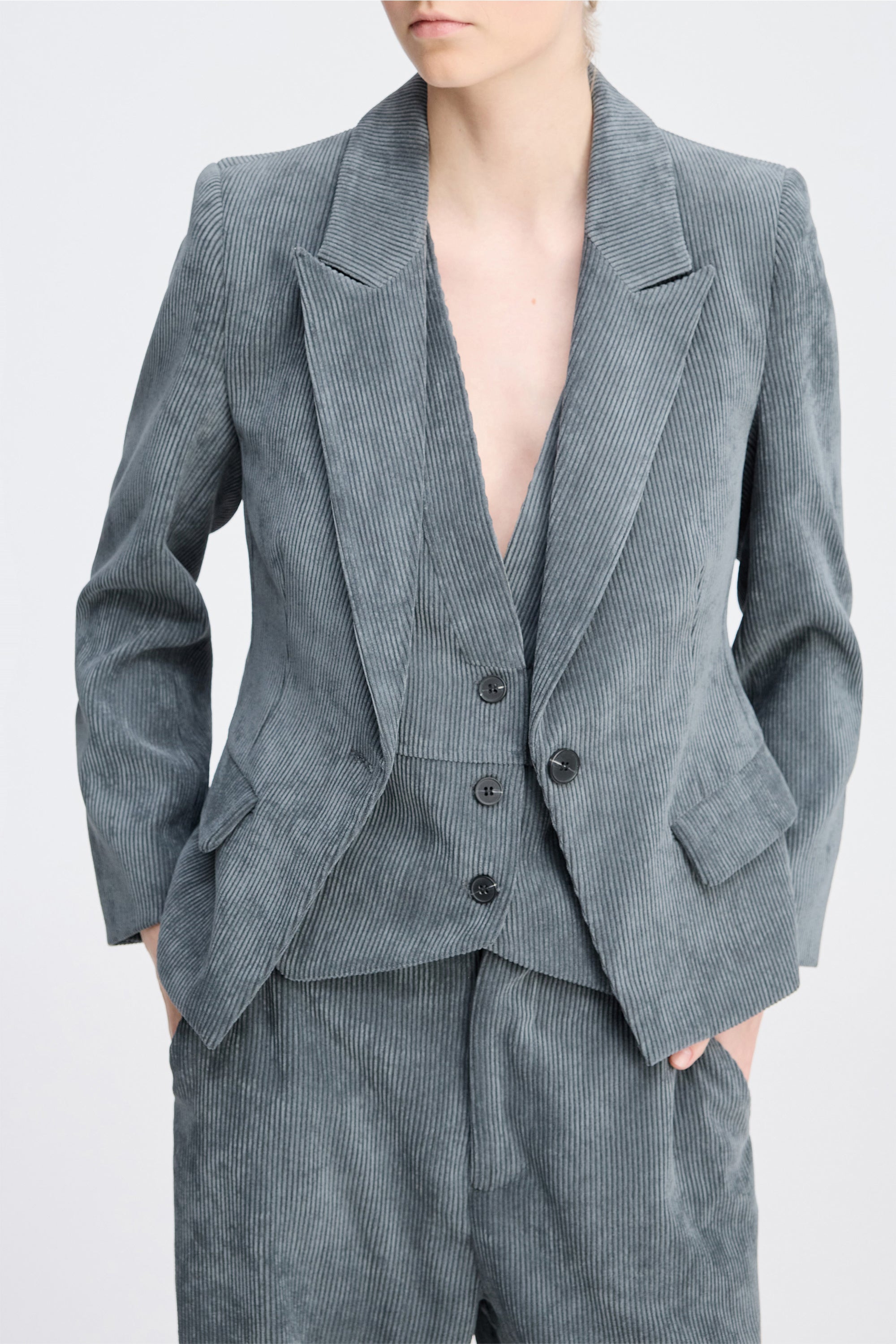 Beautiful, short velvet blazer with elegant flap pockets at the front. This blazer is designed for a slim fit and features straight shoulders, long sleeves, and a button closure.