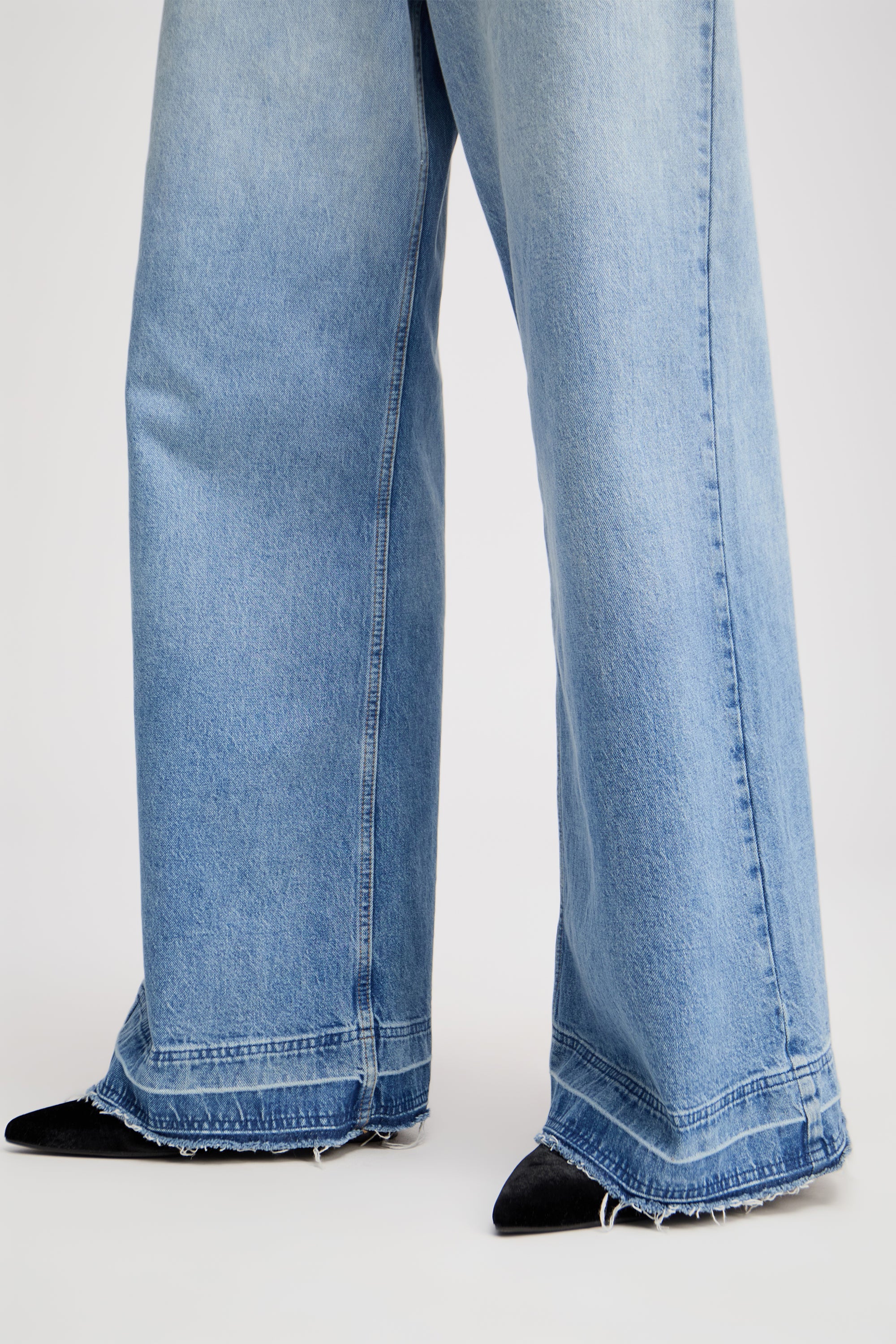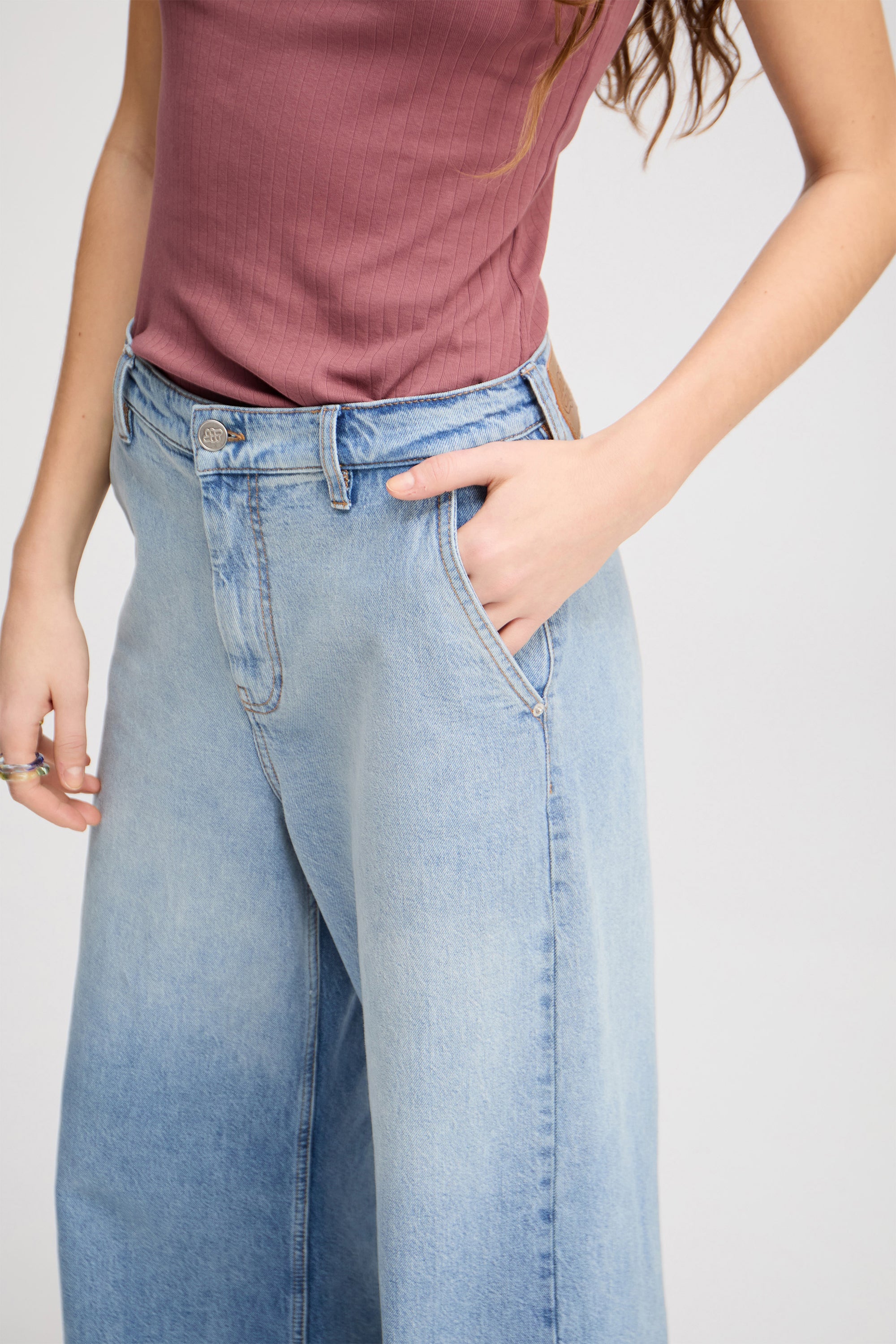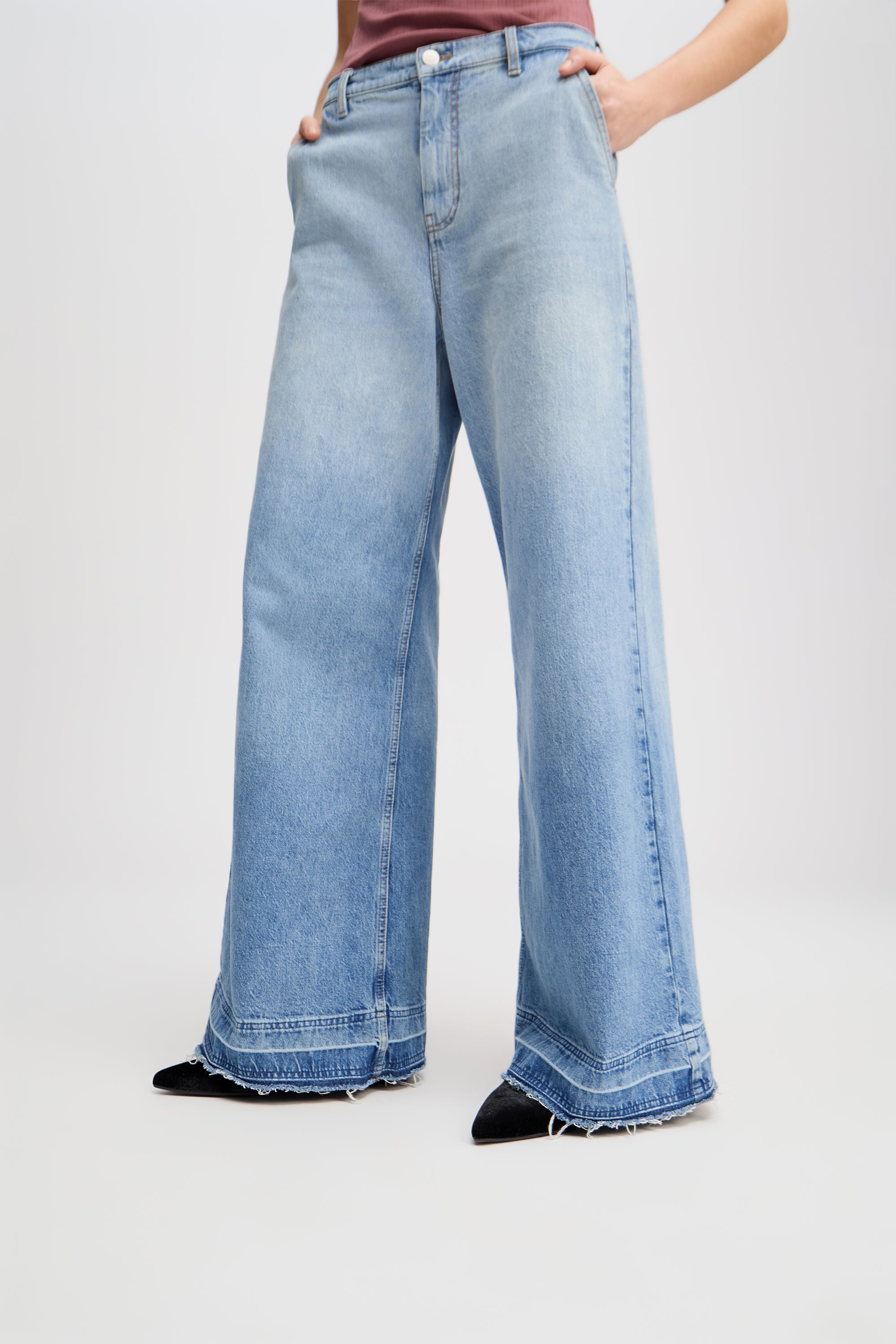 Denim pants with beautiful details at the bottom of each leg and a MUNTHE leather patch on the back. These denim pants are designed with slanted side pockets and are fastened with a zipper and a single button.