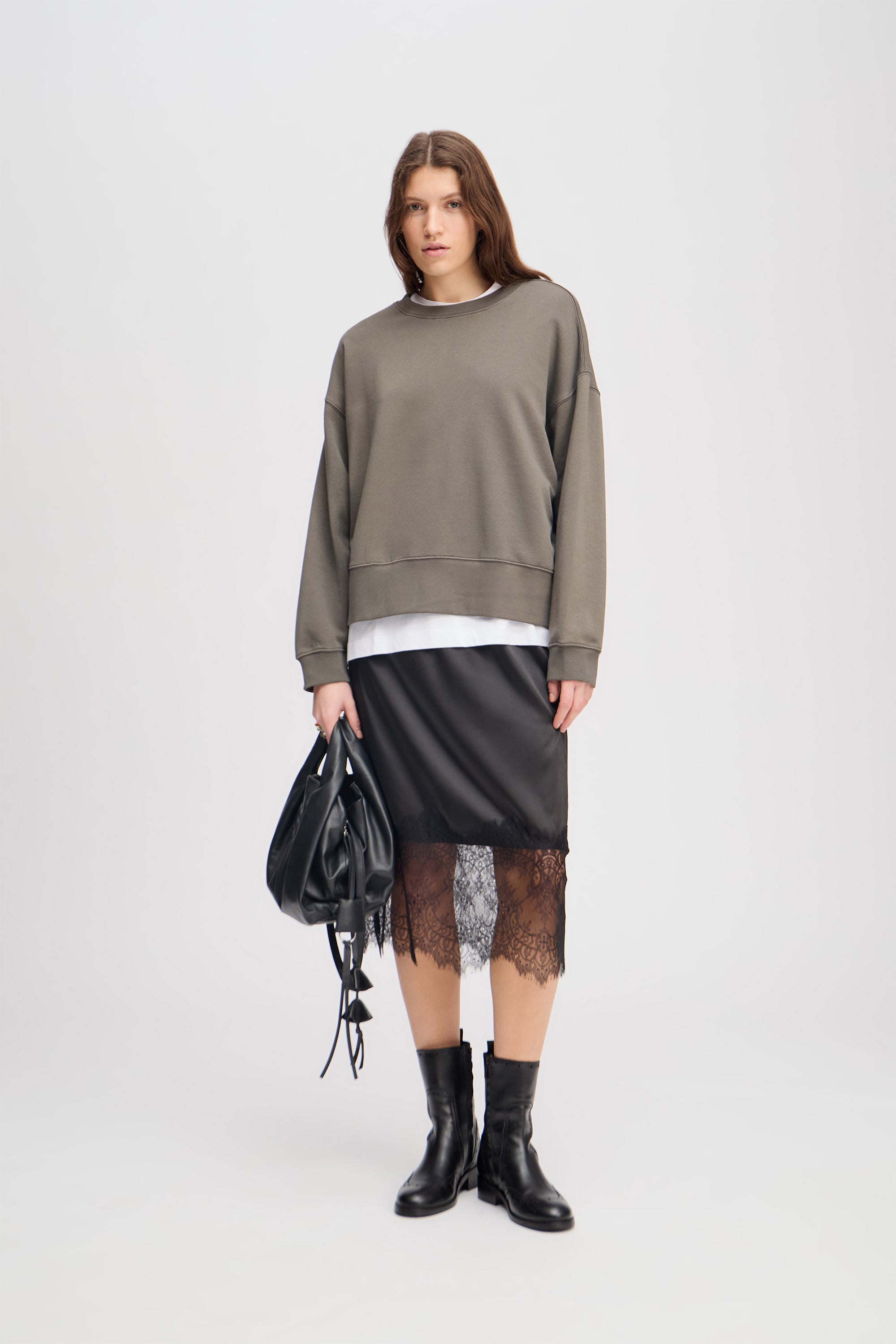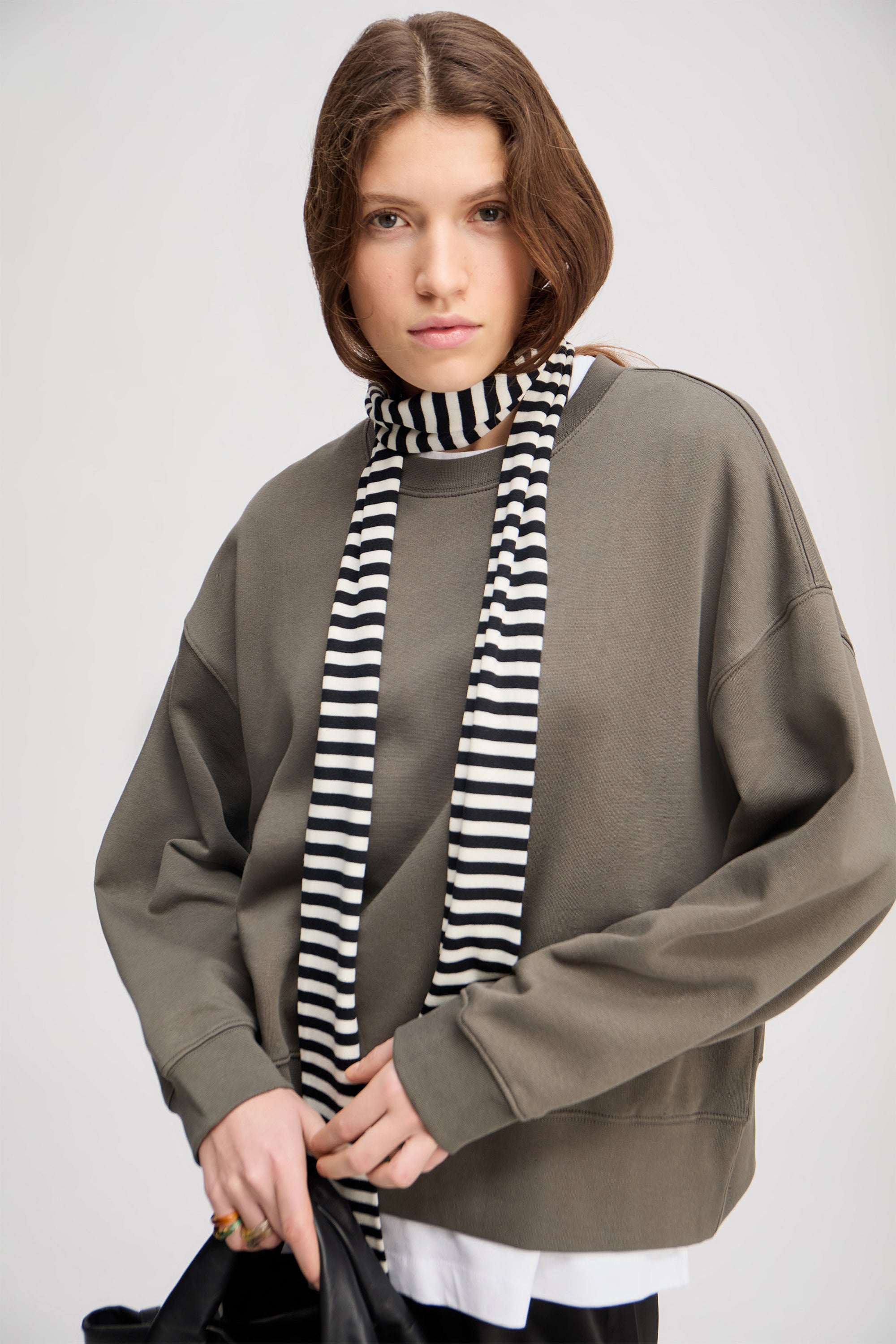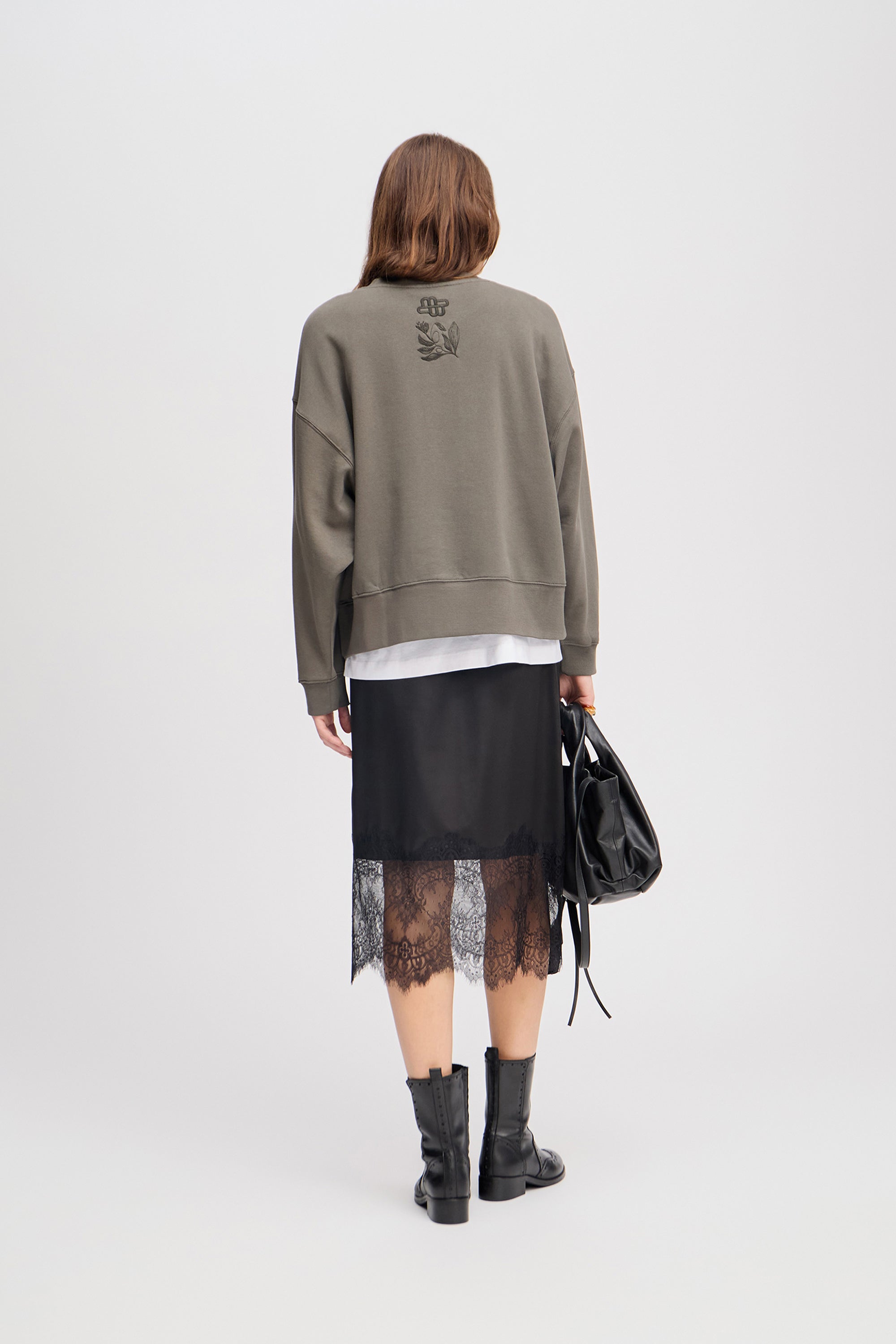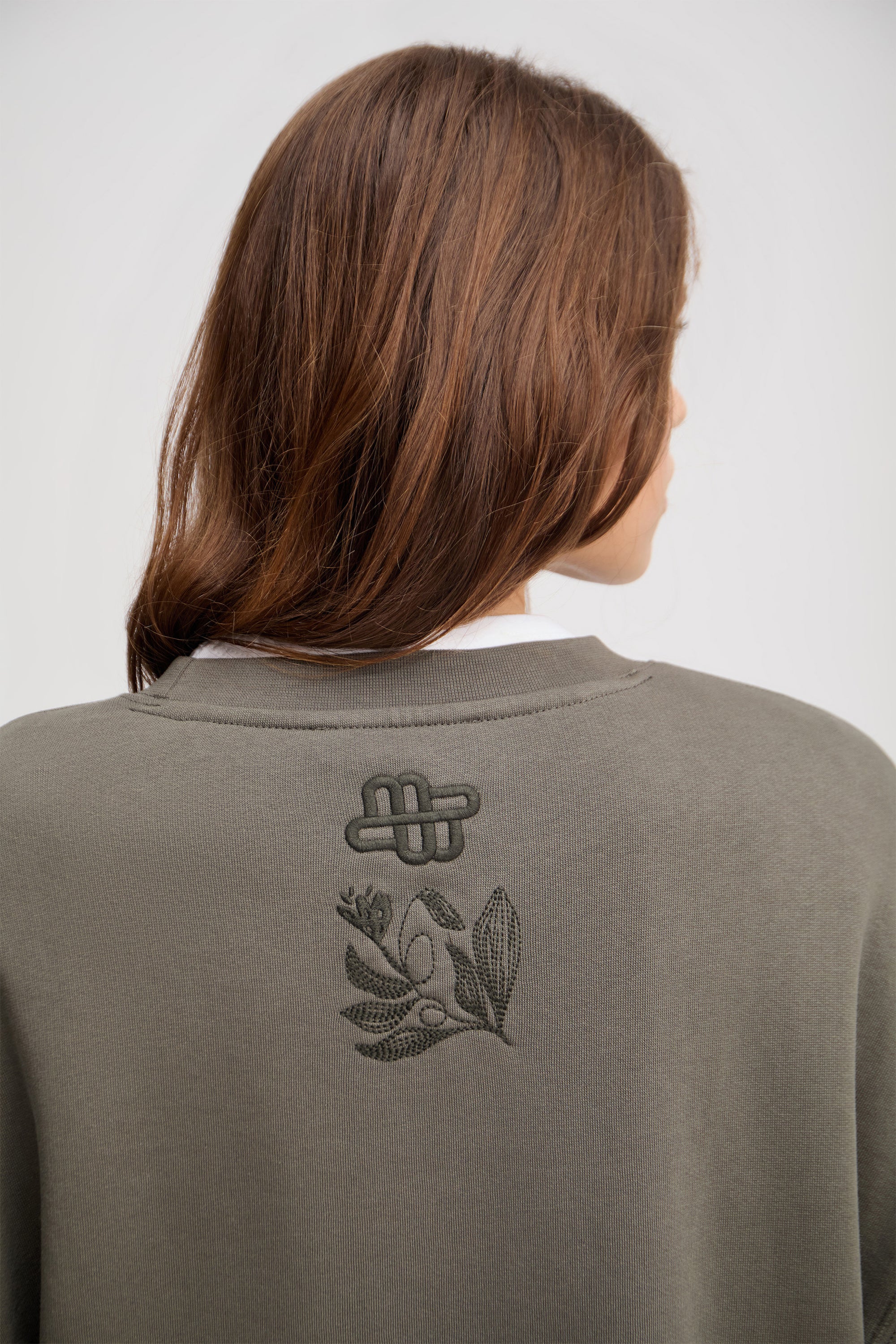 Soft sweatshirt with an elegant MUNTHE emblem and floral embroidery on the back of the neck. This sweatshirt is designed for a loose fit with dropped shoulders and a round neckline.