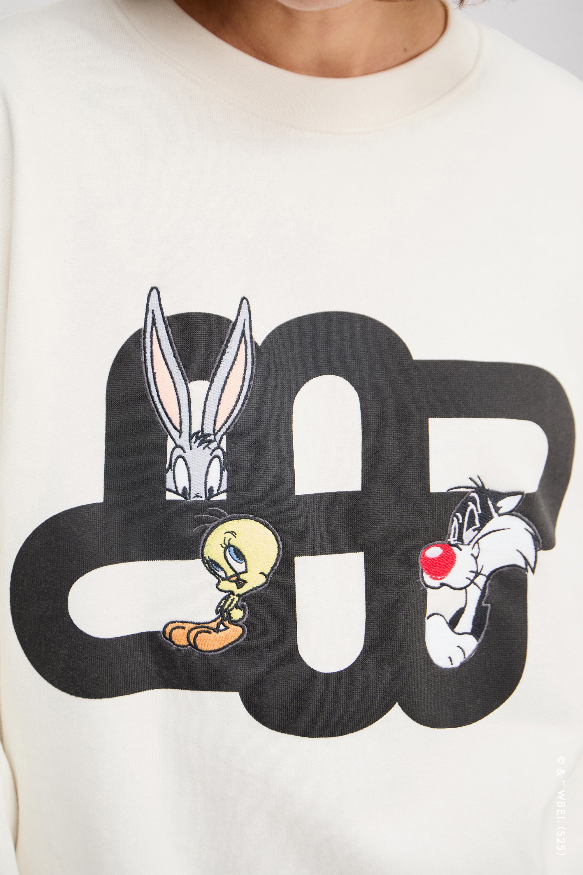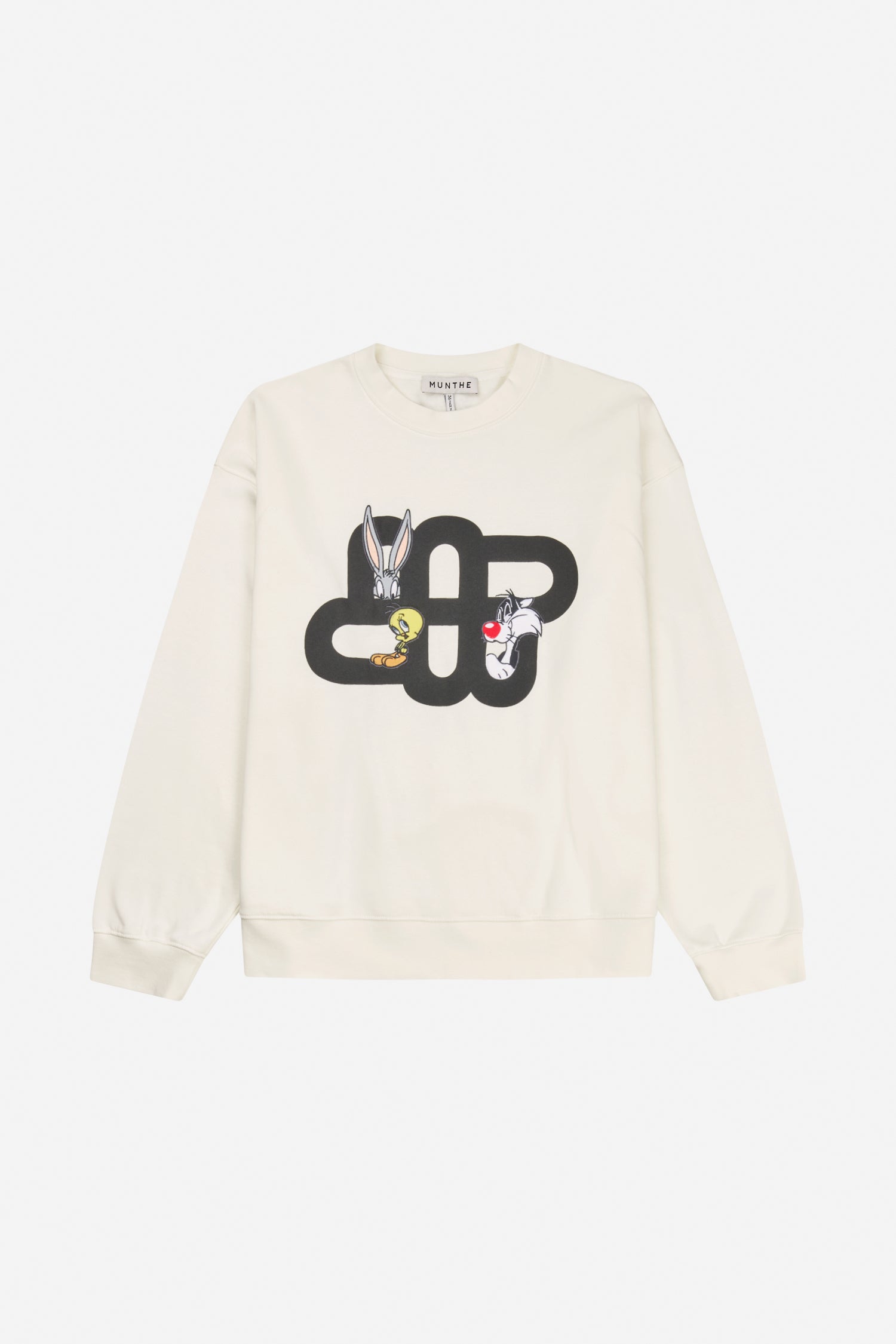 Soft sweatshirt featuring a fine Tweety and Sylvester embroidery as well as a MUNTHE emblem print on the chest. In the neck, there is a "LOONEY TUNES X MUNTHE" message. This sweatshirt is made in collaboration with Warner Bros. Discovery Global Consumer Products (WBDGCP).