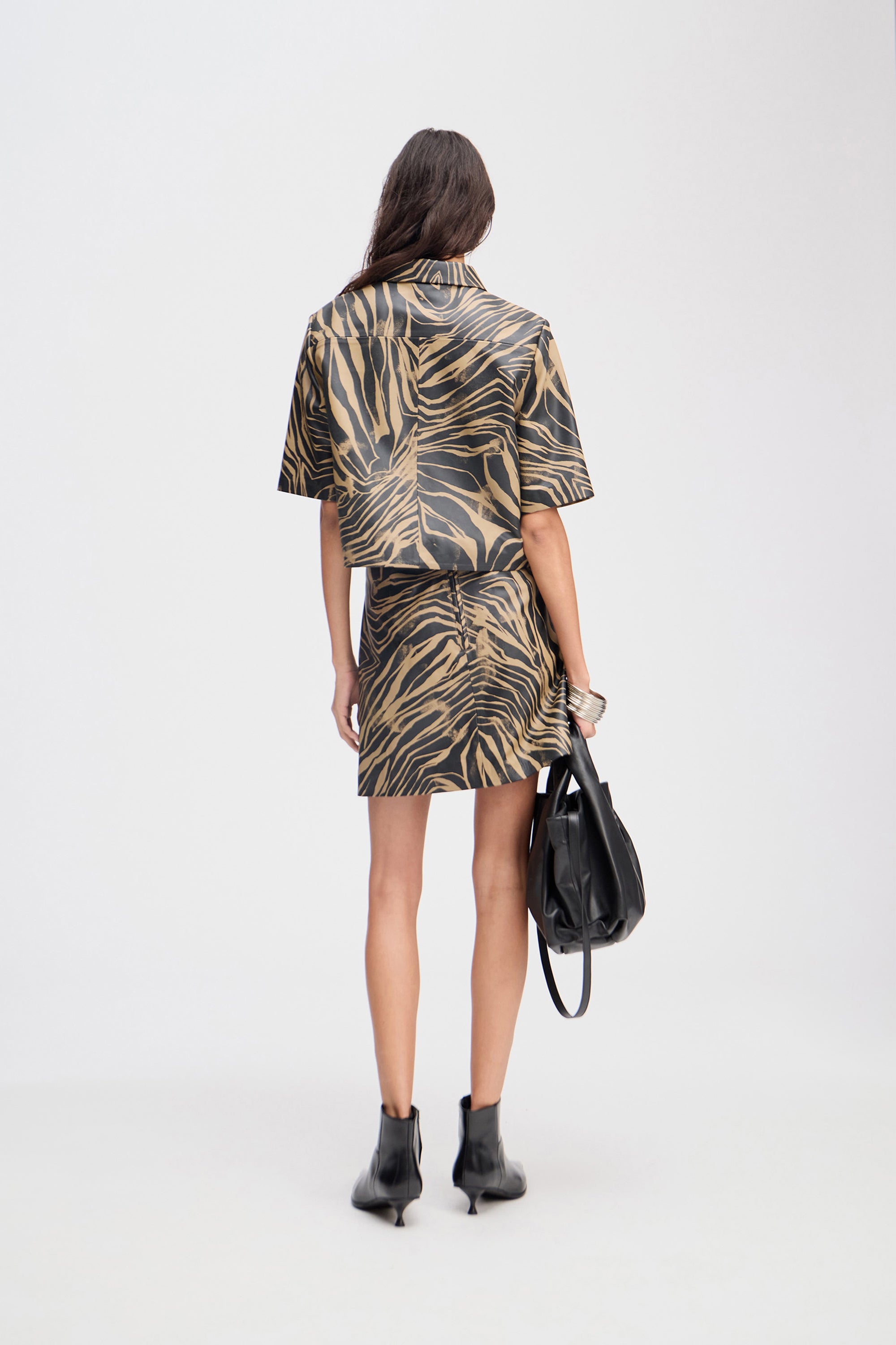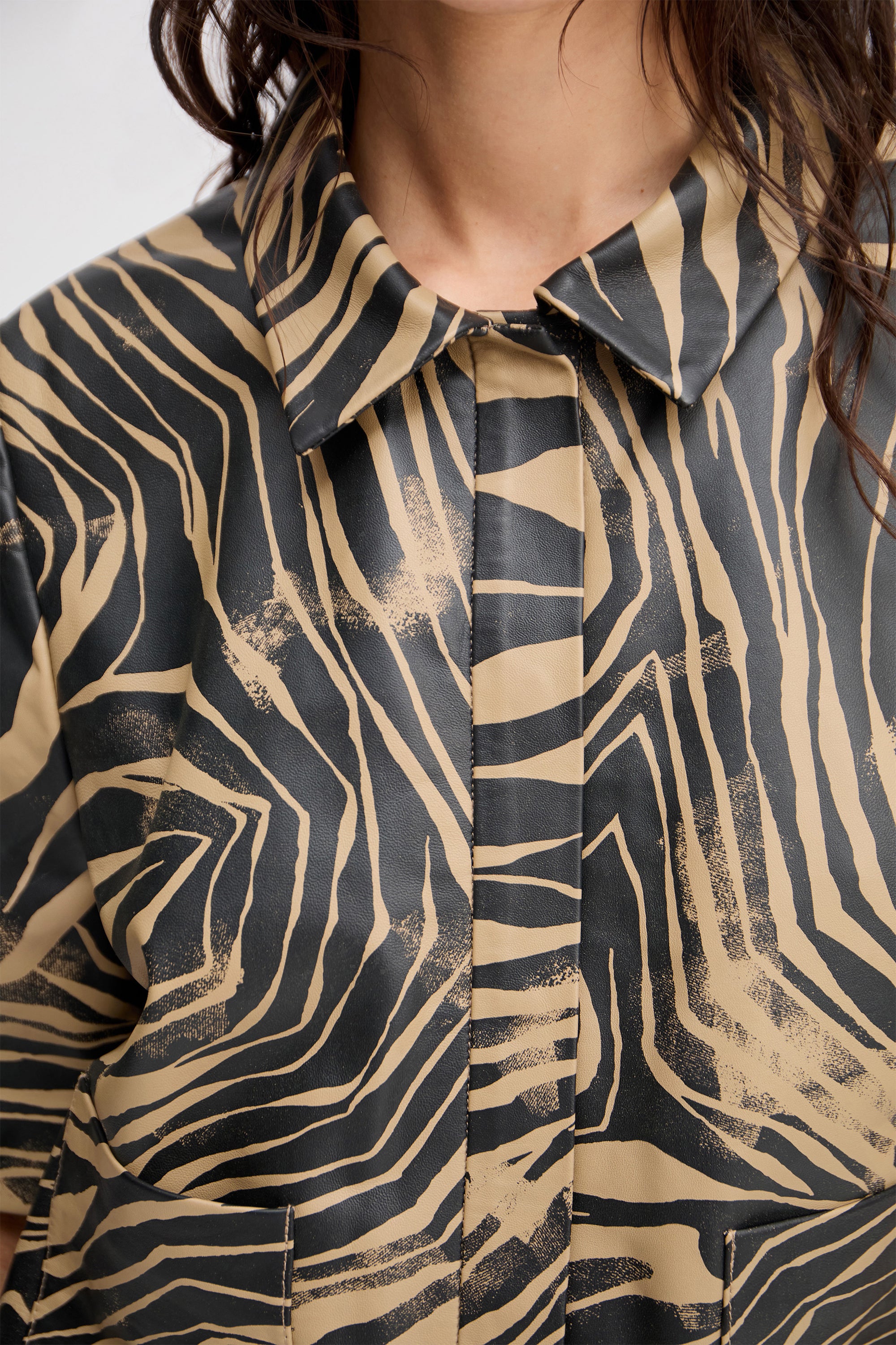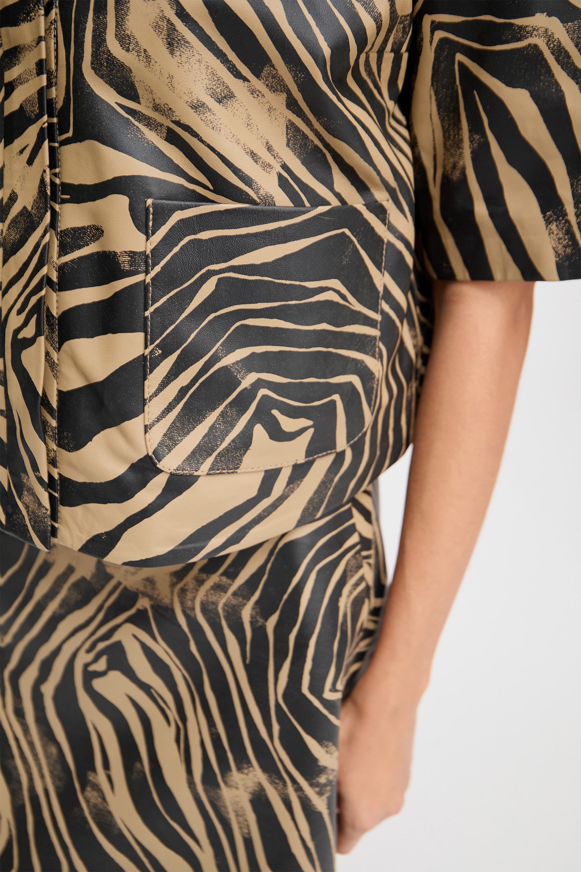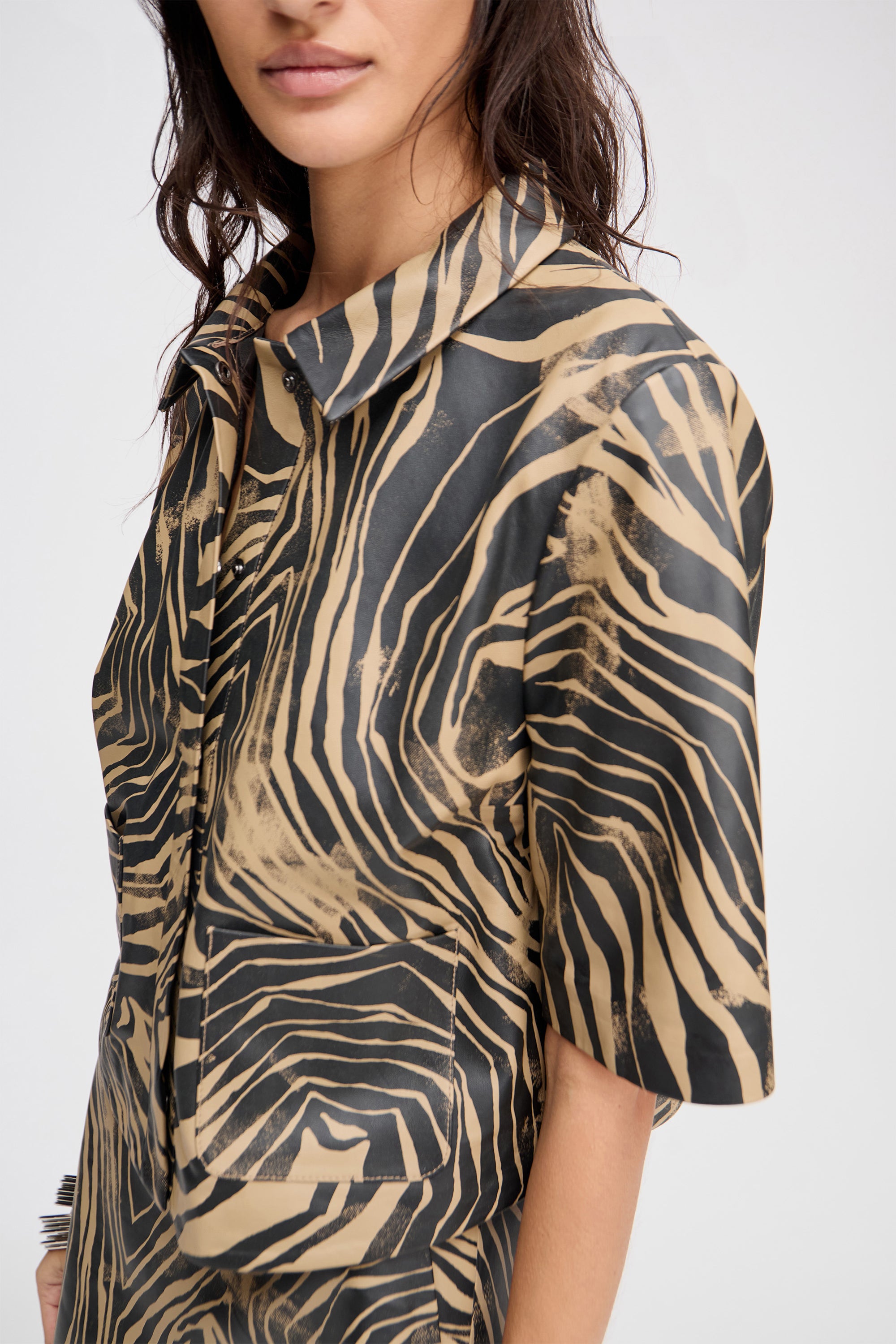Leather shirt with a beautiful all-over print and two elegant pockets. The shirt is designed with short sleeves and can be styled both open and closed.
