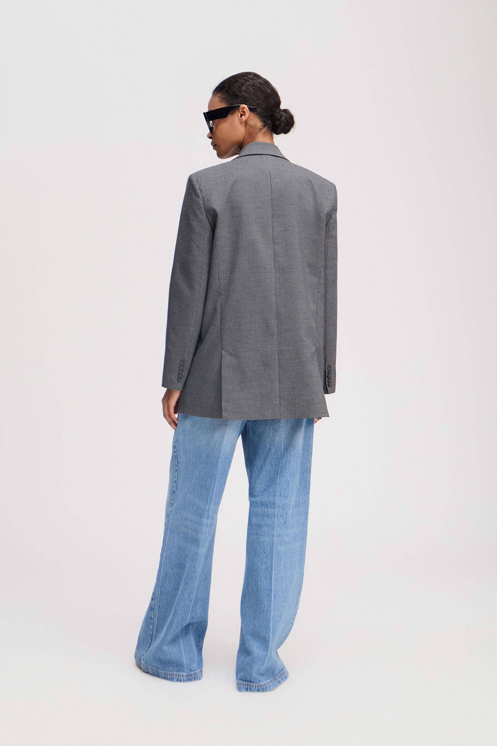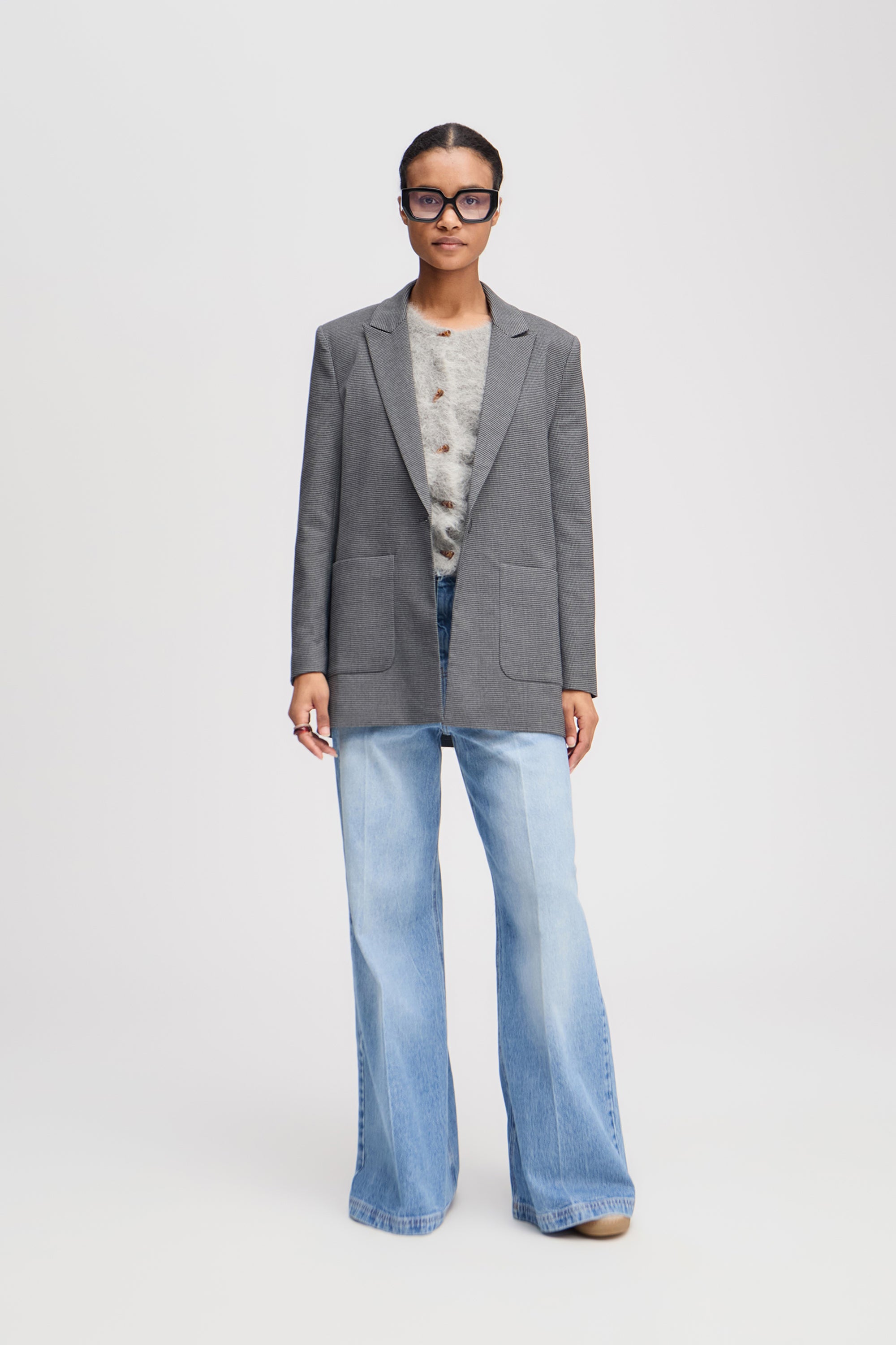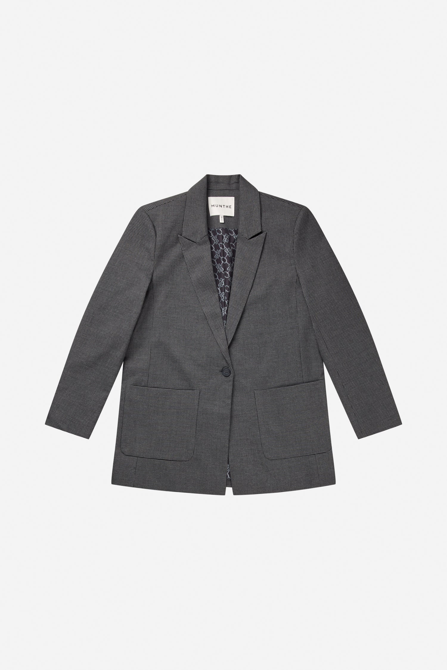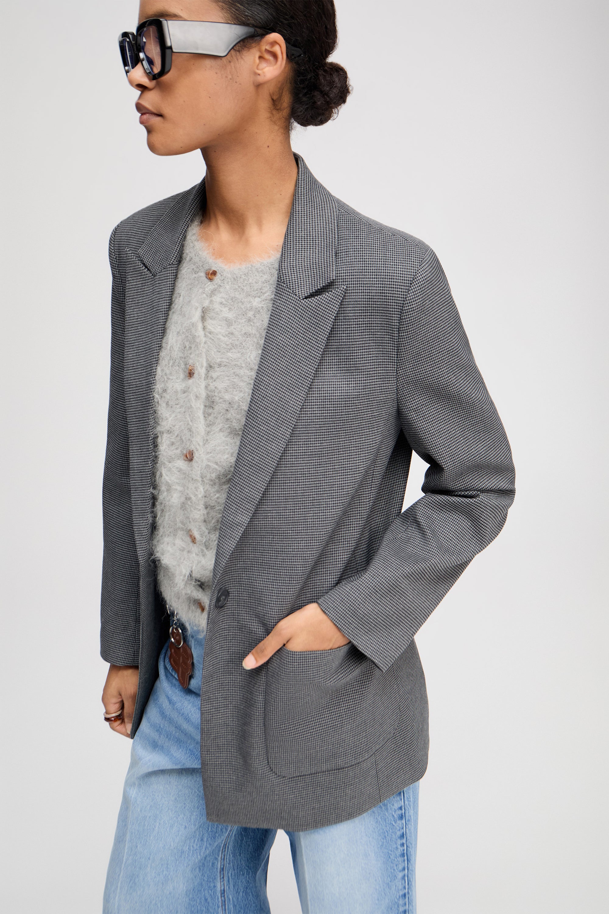 Blazer jacket with beautiful small checks and elegant pockets. This blazer features straight shoulders, long sleeves with buttons, and is designed with a regular fit. The blazer can be closed with a single button.