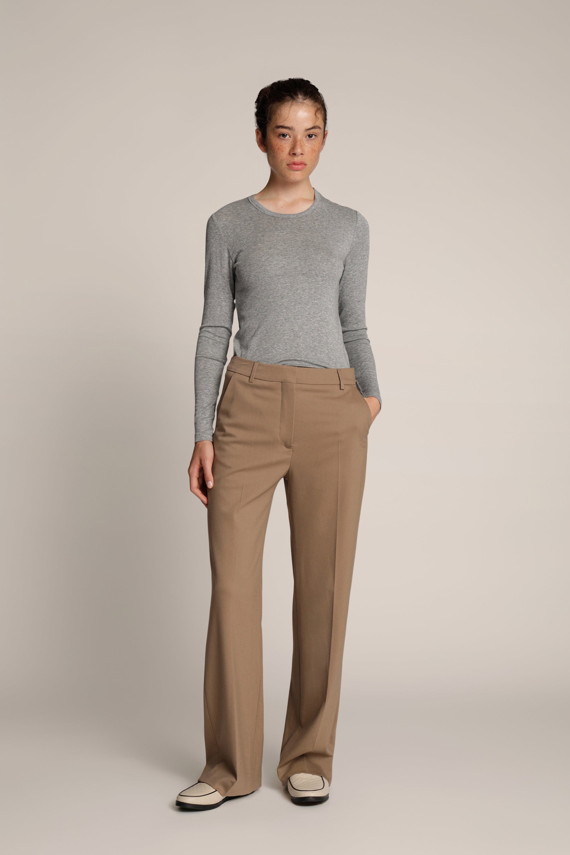 Long-sleeved t-shirt made from a soft wool blend. The t-shirt is designed for a slim fit.