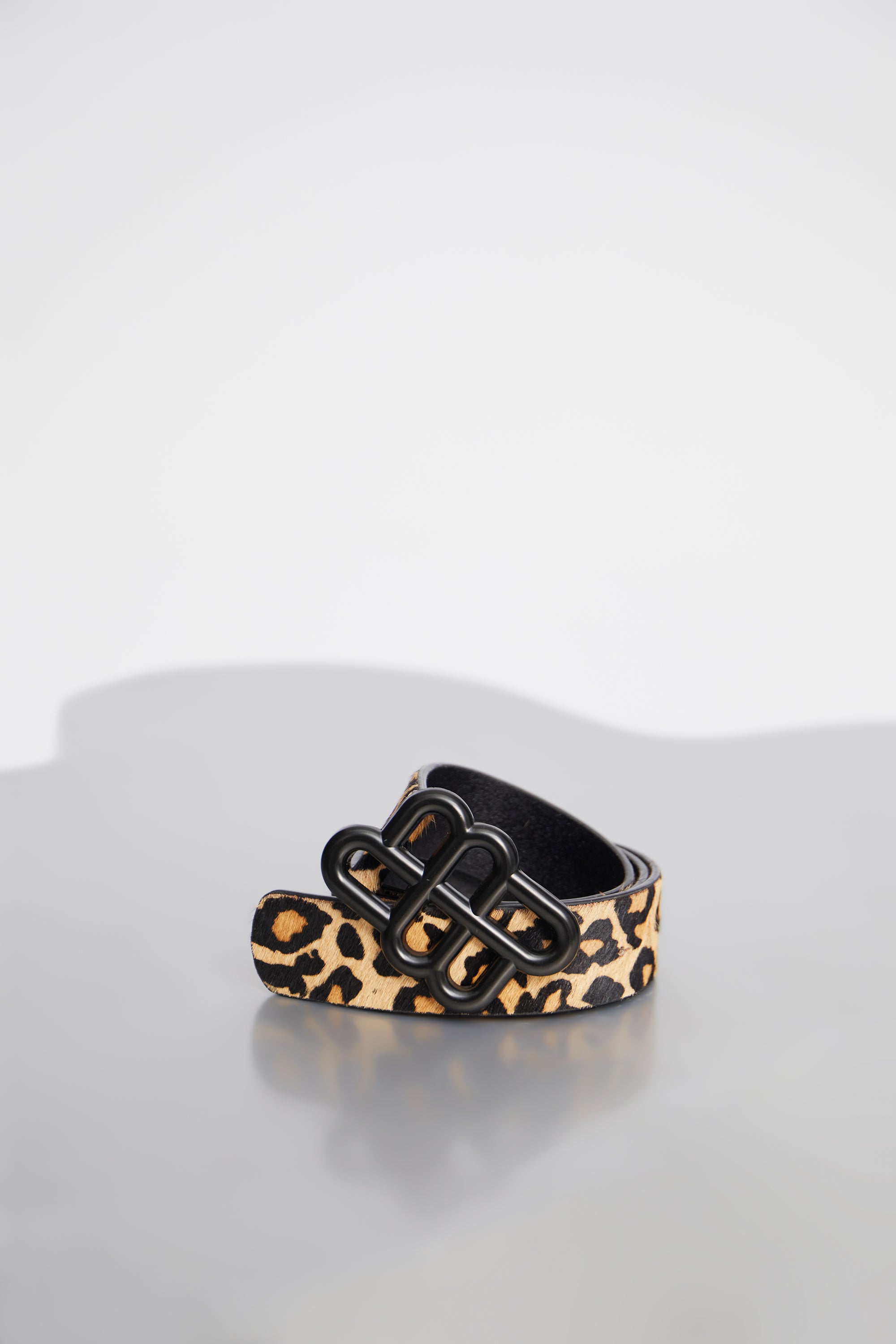 An elegant leopard belt with a beautiful MUNTHE emblem belt buckle. The belt is made of 100% leather and has a natural hair texture.