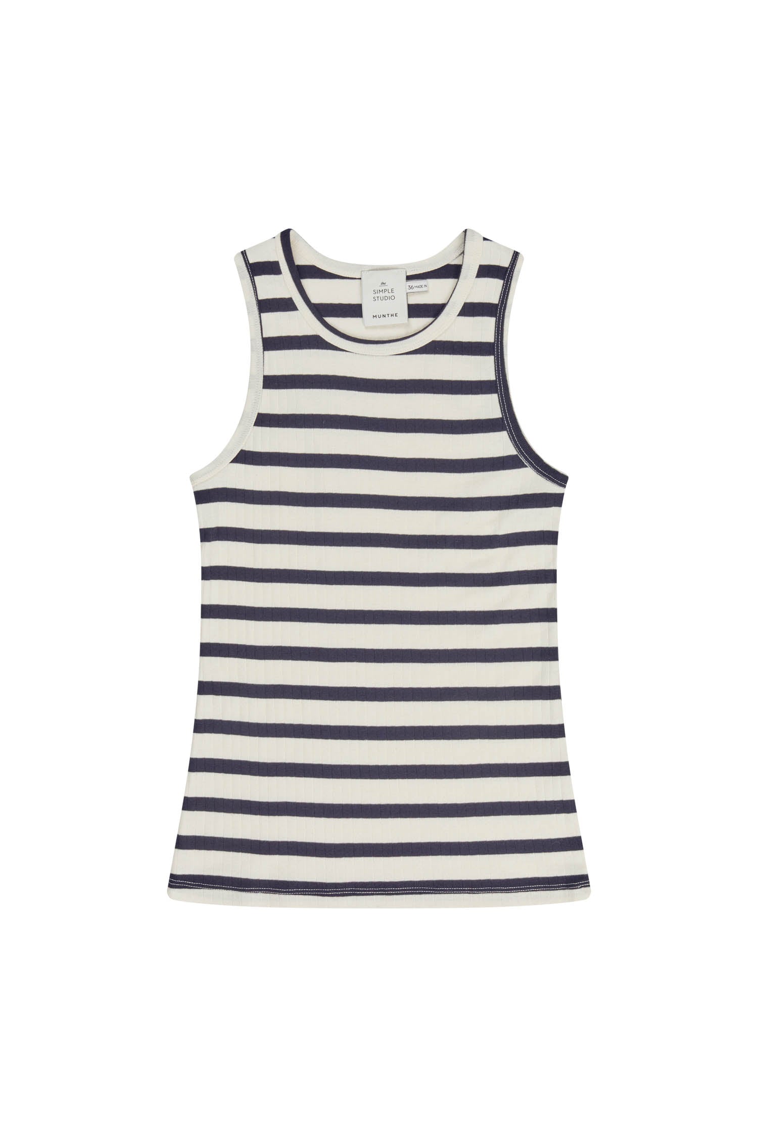 Striped tank top designed in a soft rib, made from 100% organic cotton. This tank has a round neck and a tight fit.