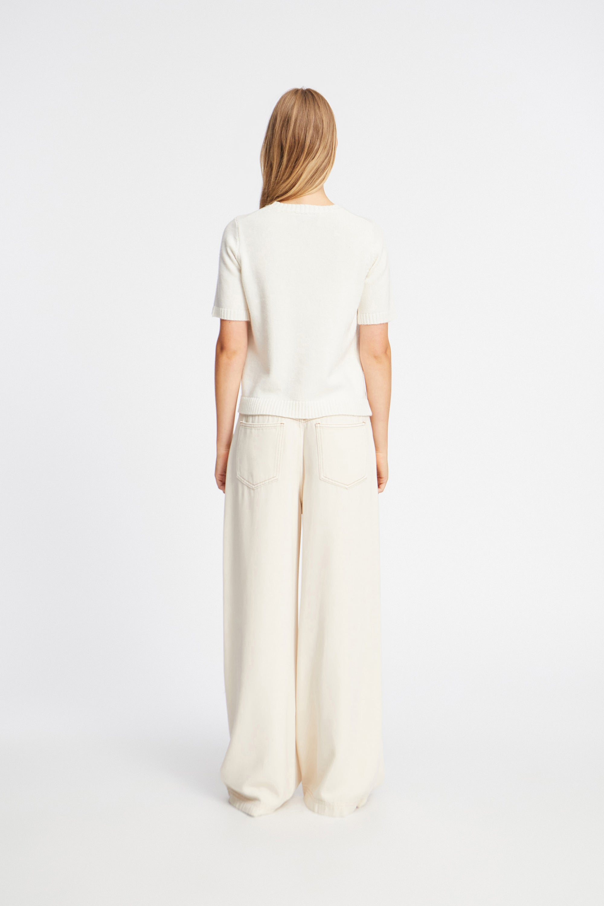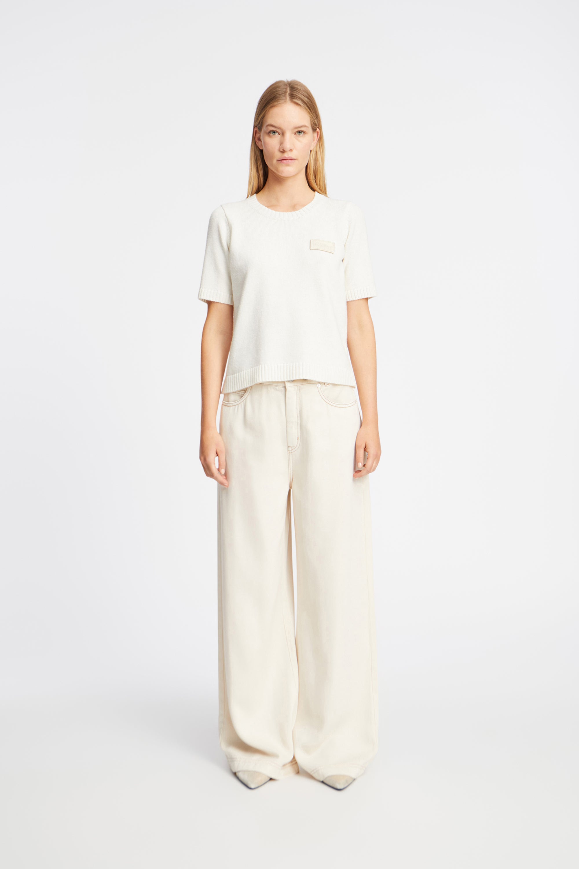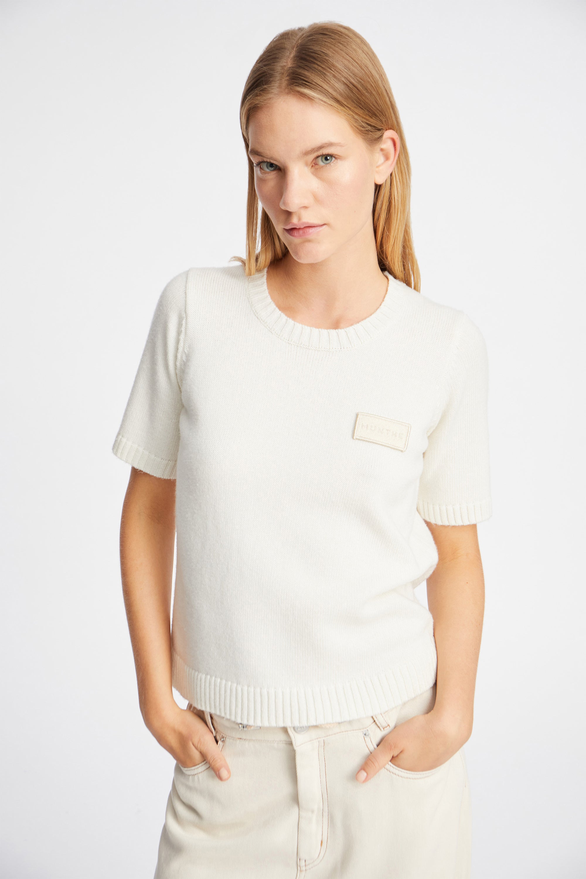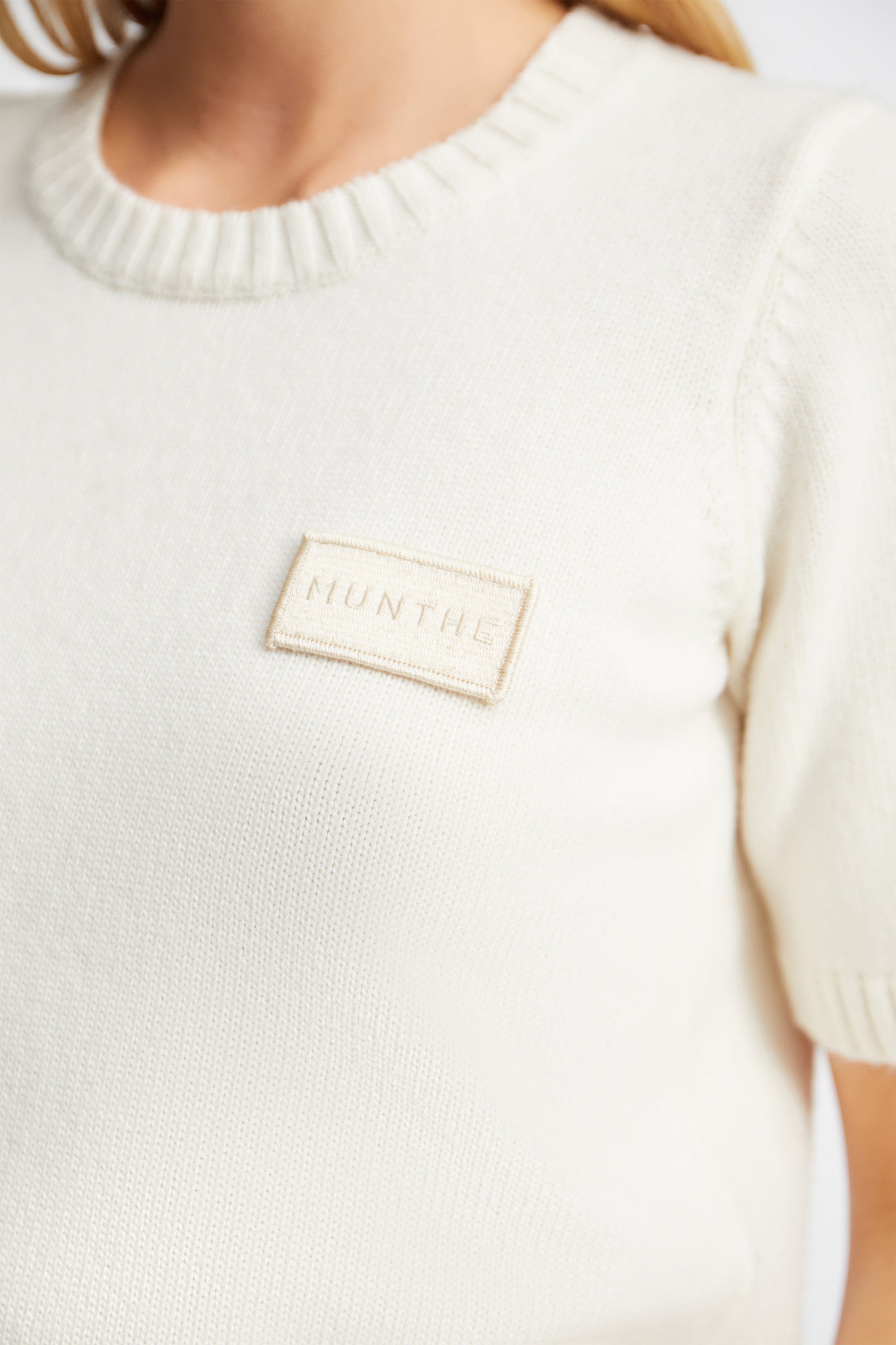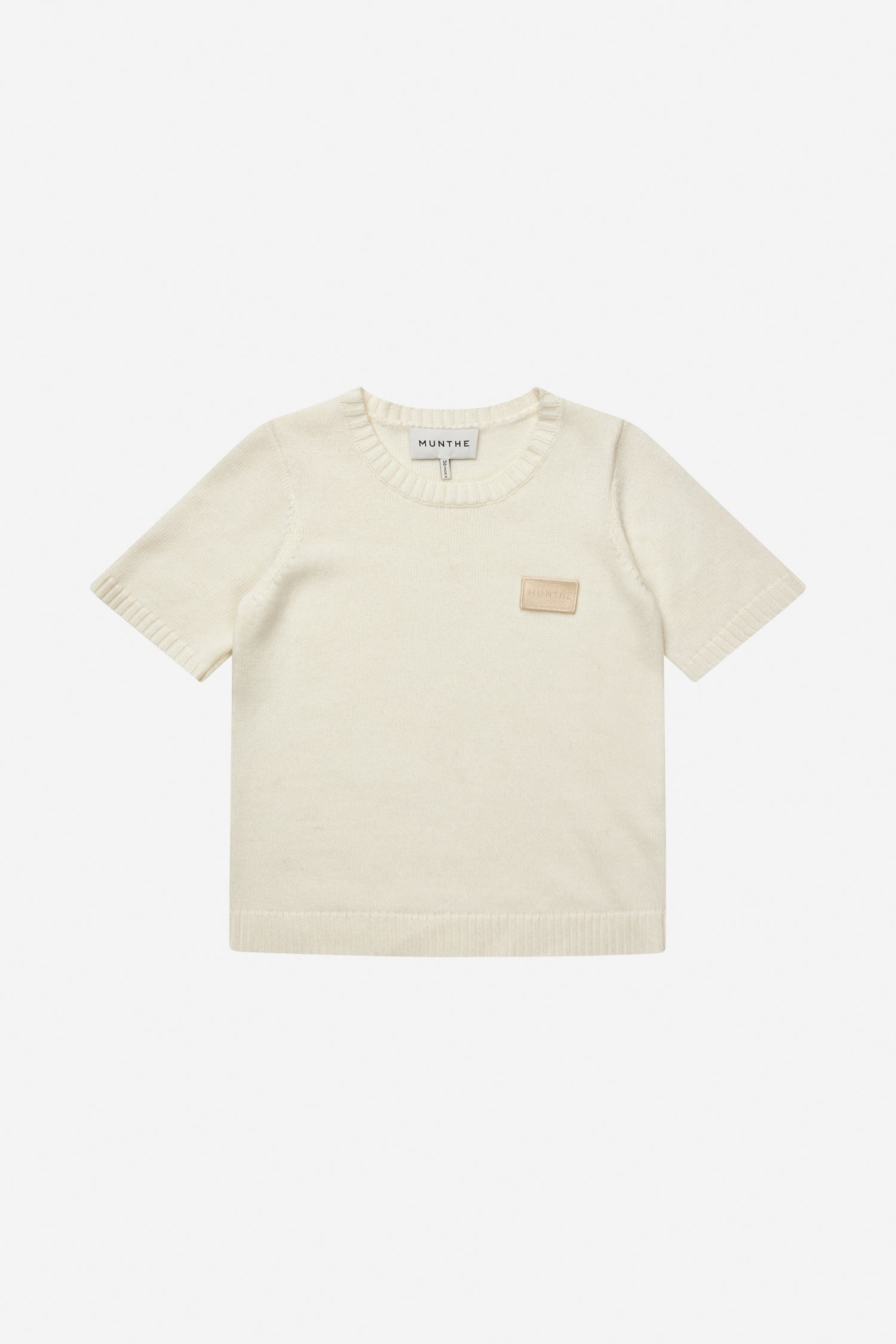 Short knit with an elegant MUNTHE logo patch on the chest. This knit features short sleeves and is designed with a fine ribbed edge as a finishing touch.