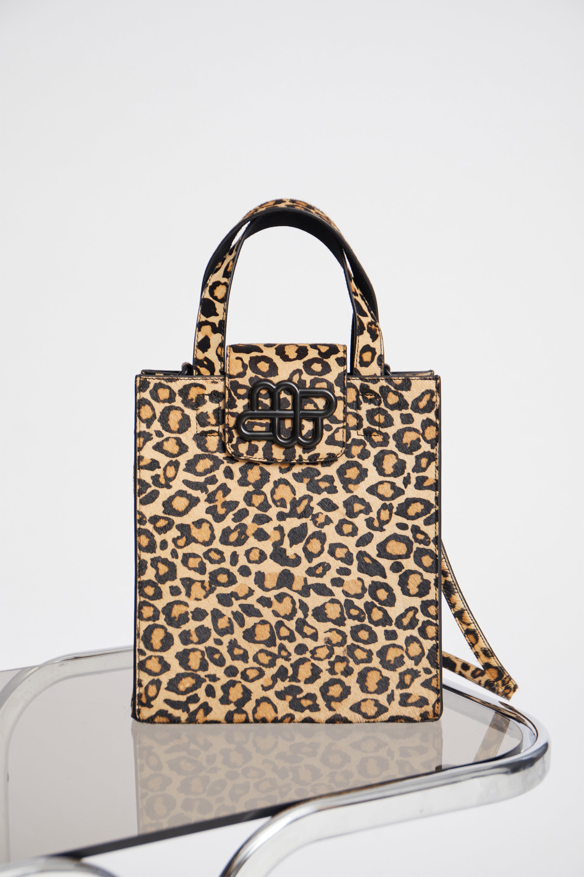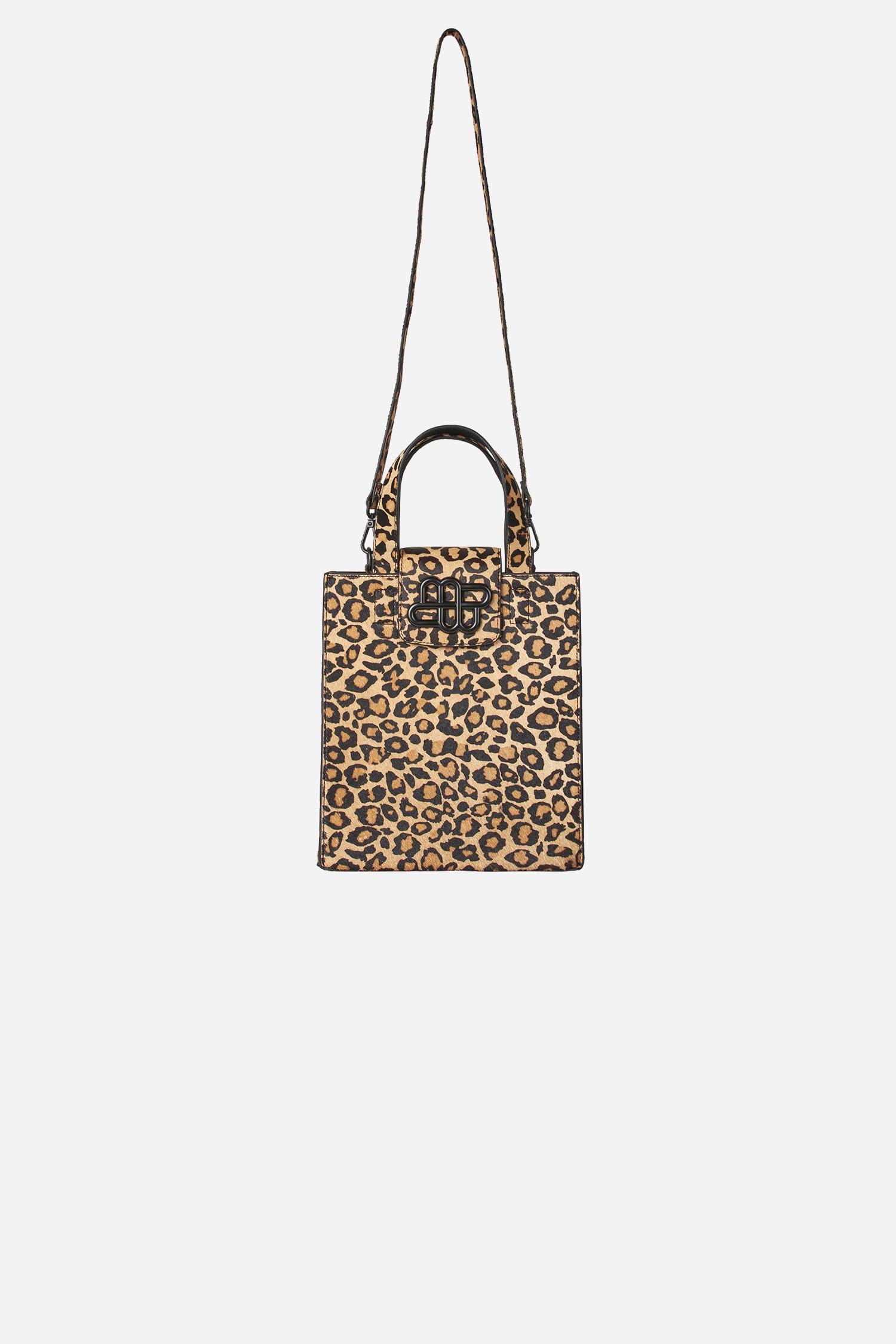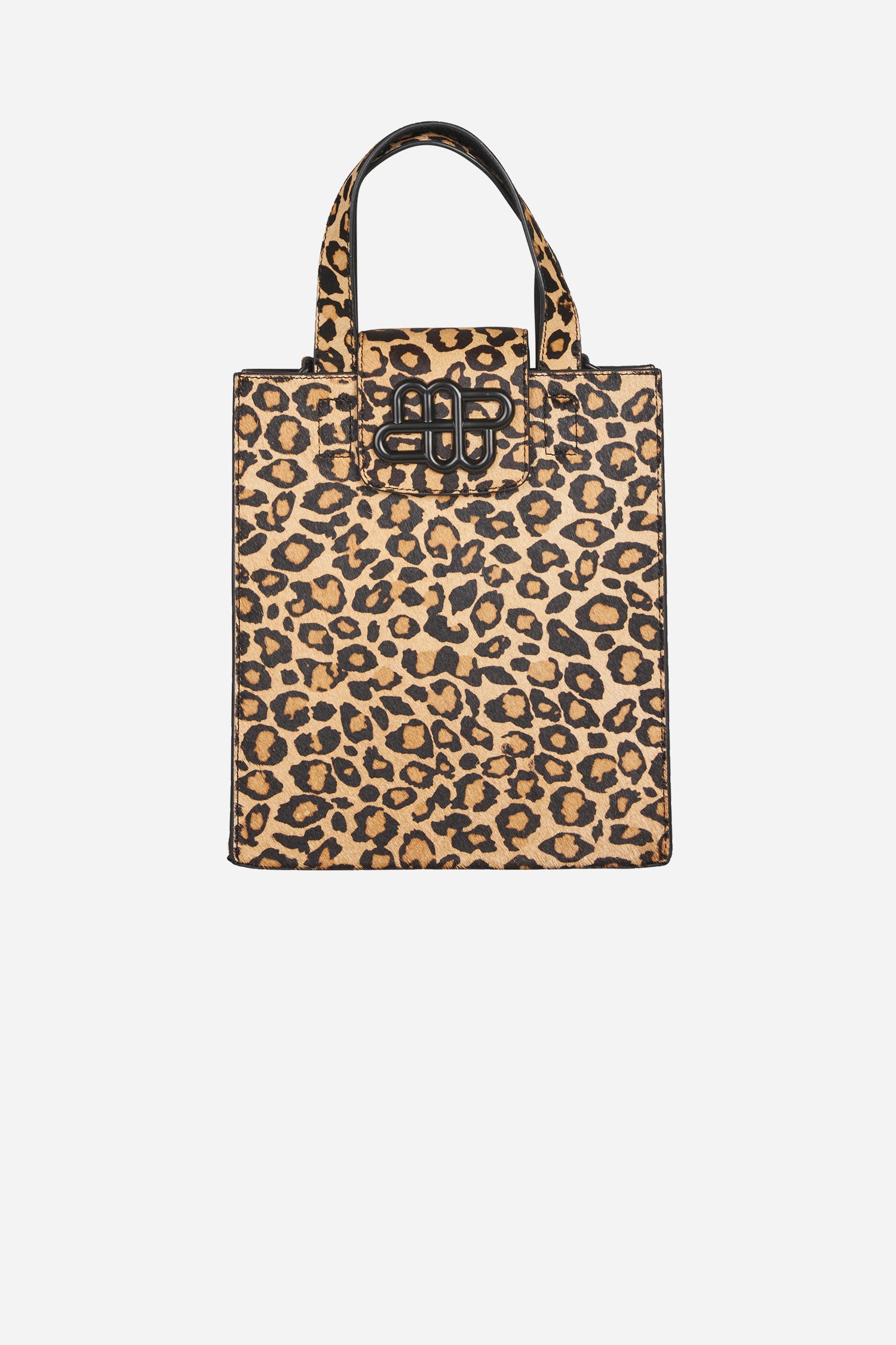 An elegant leopard-print bag with a beautiful MUNTHE emblem at the bag's closure. The bag is designed with both a short and a long strap. The long strap is removable, making it easy to style and carry the bag in multiple ways. The bag is made of 100% leather and features a natural hair texture.