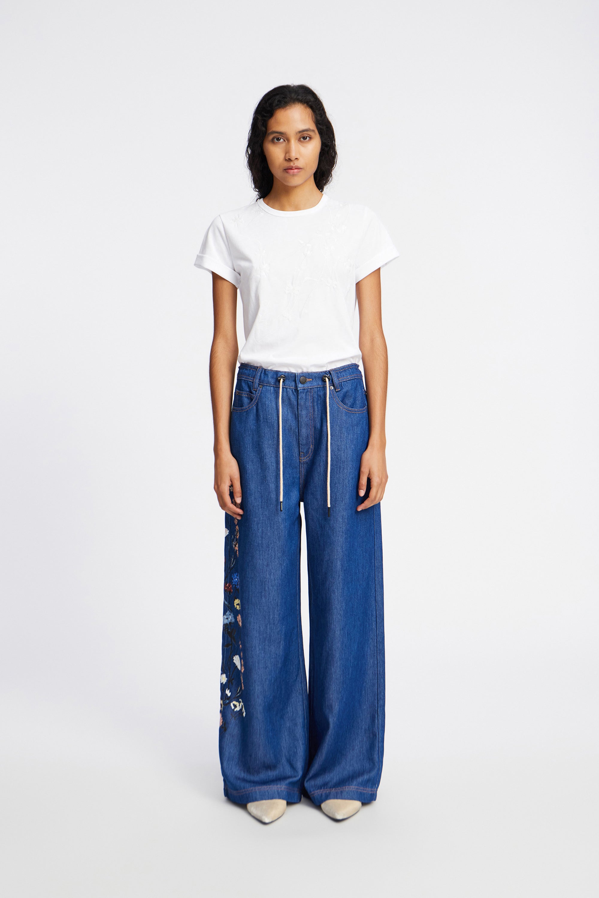 T-shirt with beautiful floral embroidery. This T-shirt is made of 100% organic cotton and features a round neckline and short sleeves.
