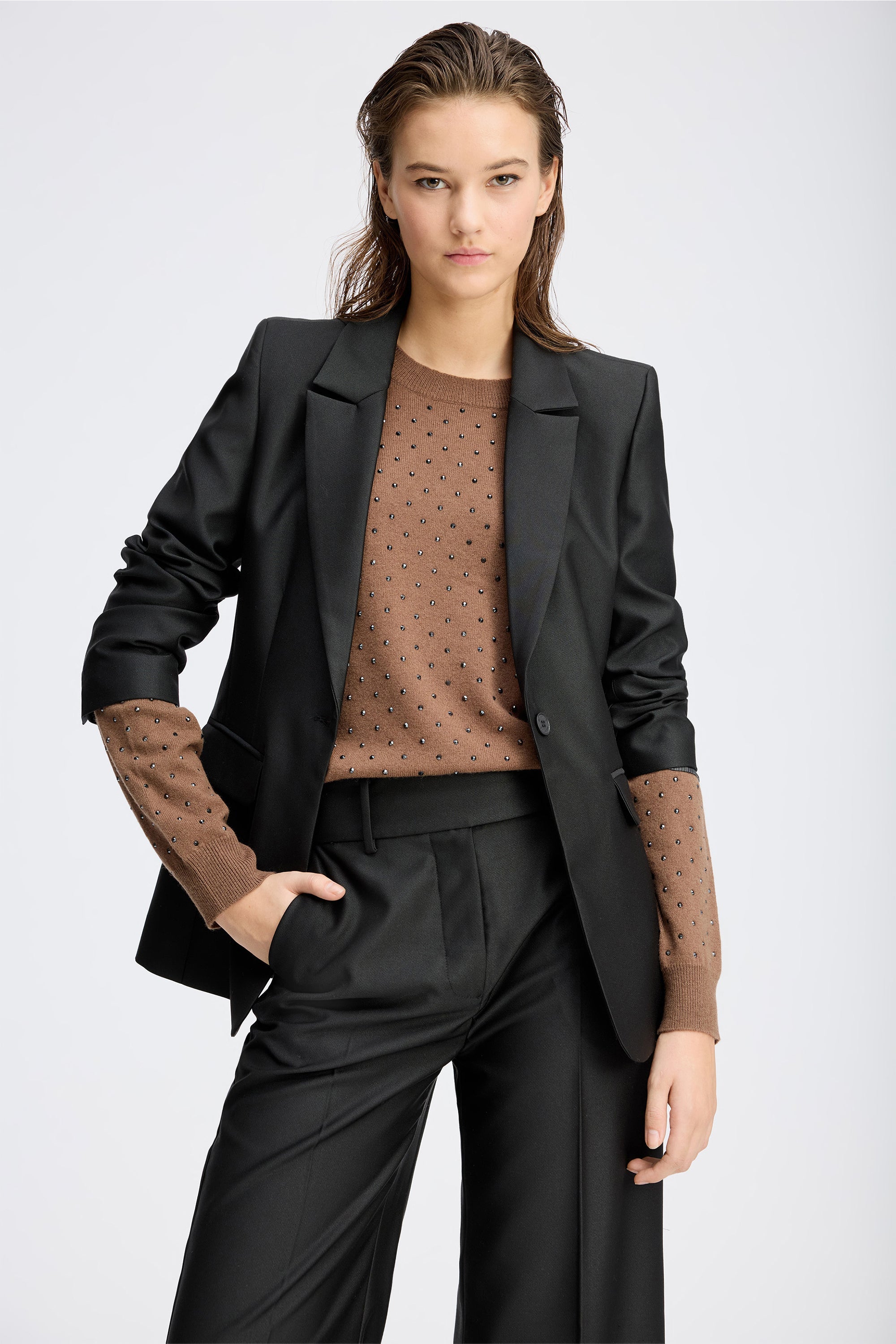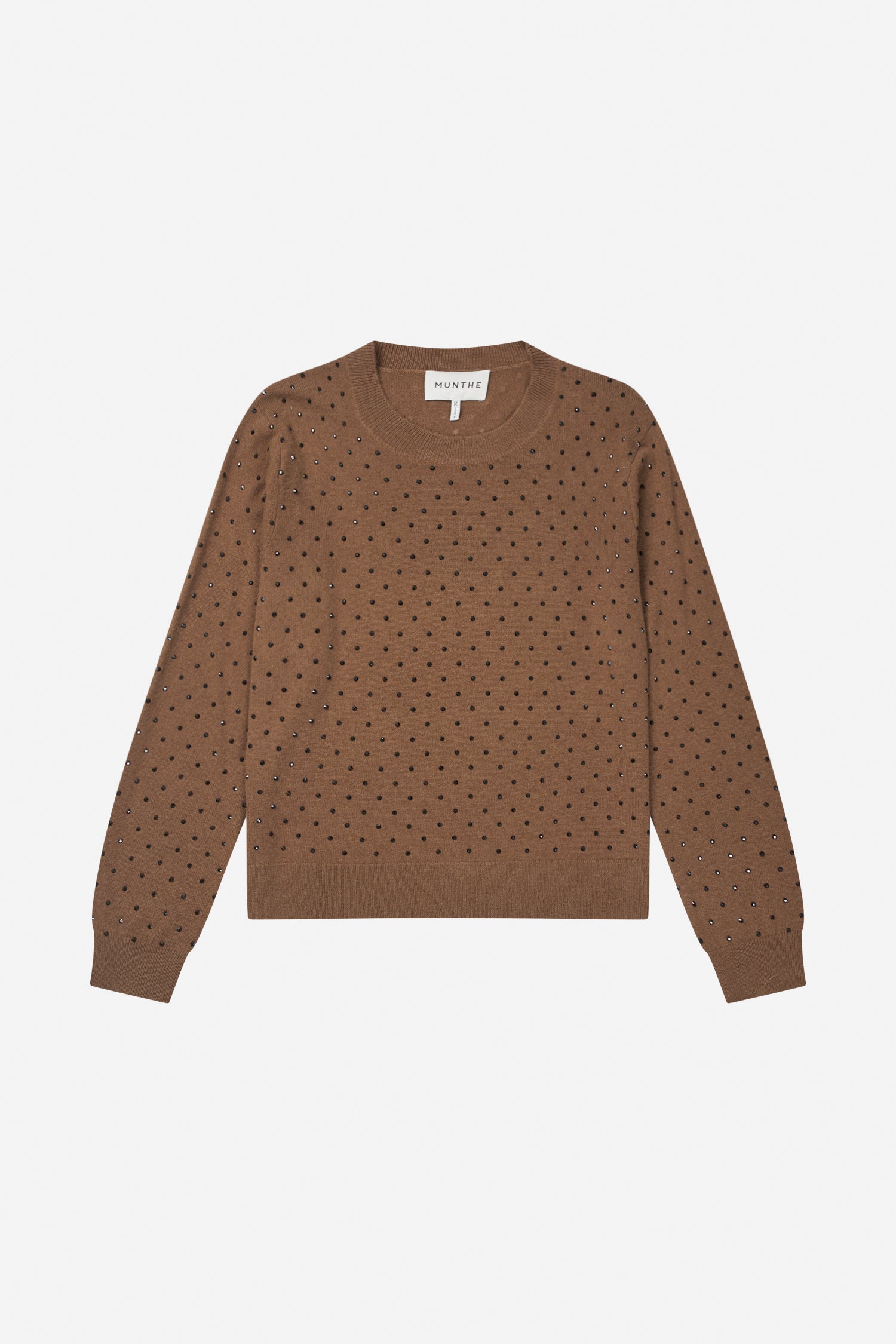 Beautiful, soft knitted sweater with elegant silver-colored studs. The sweater features a classic round neckline and long sleeves with ribbed cuffs.