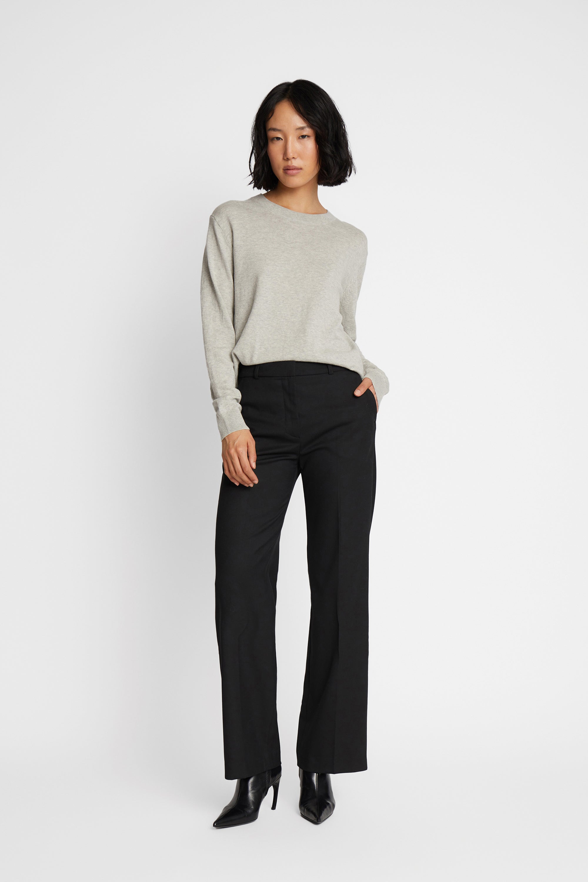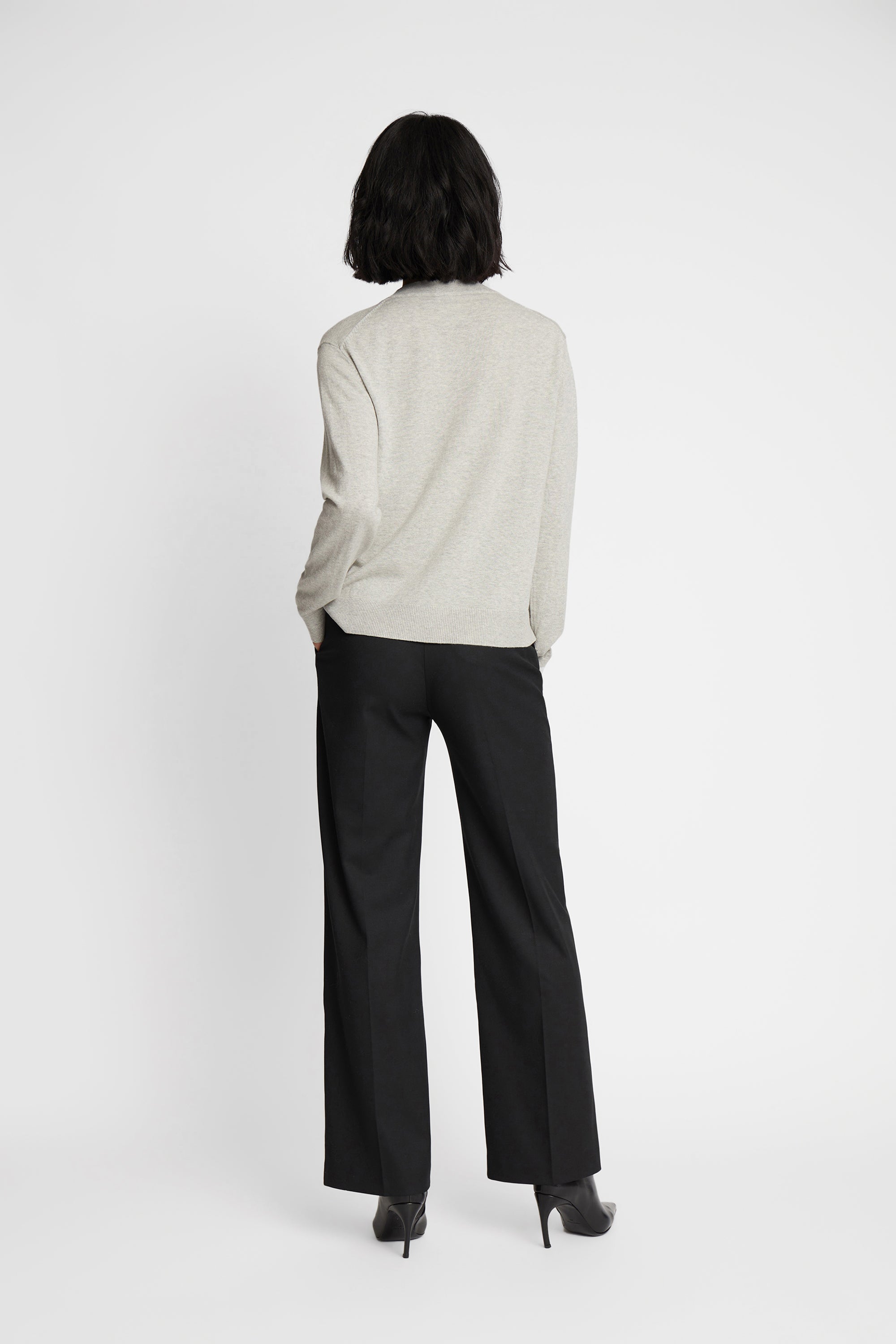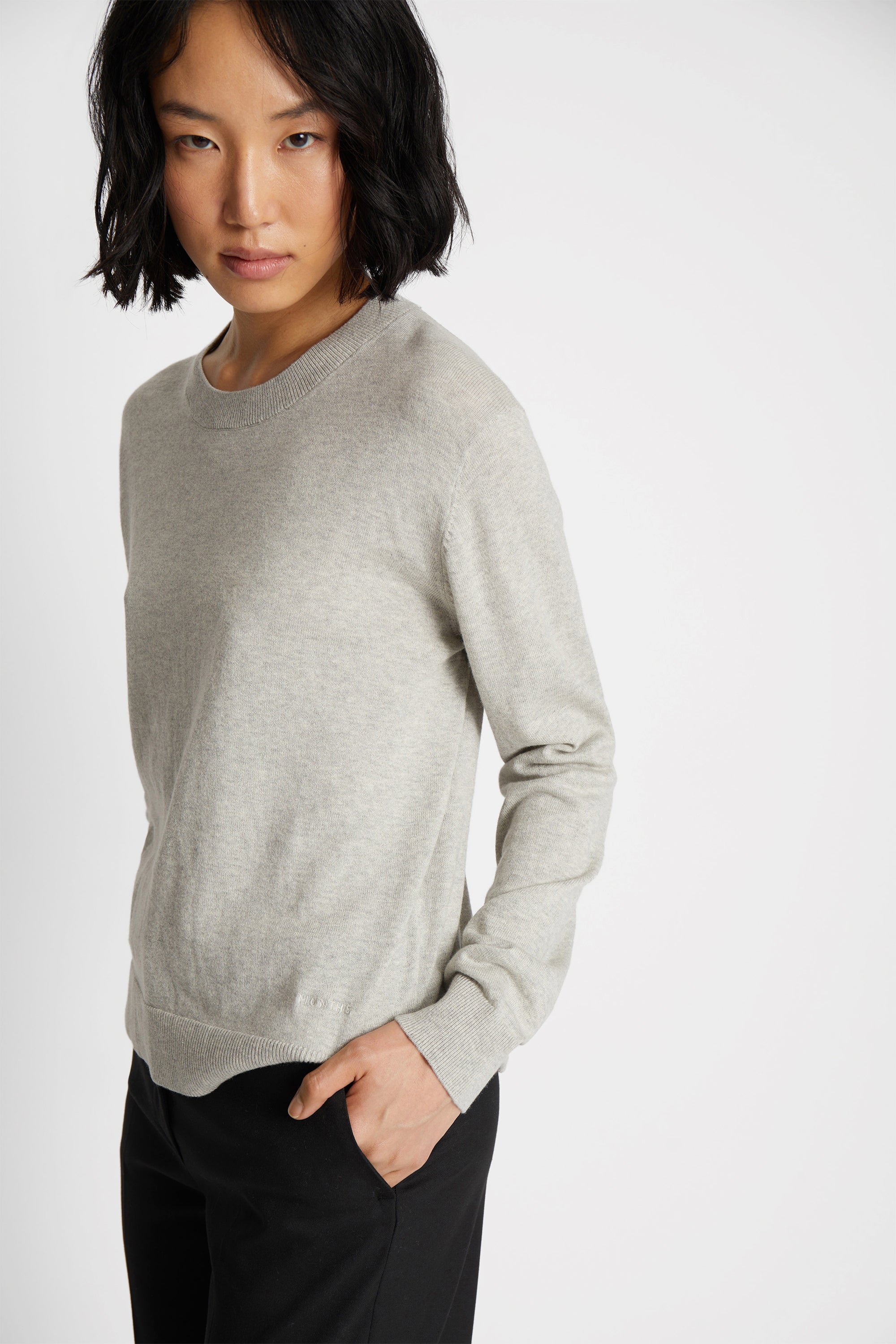 Classic light knit made from a soft merino wool blend. The knit has long sleeves, a round neck, and an elegant rib along the edges.