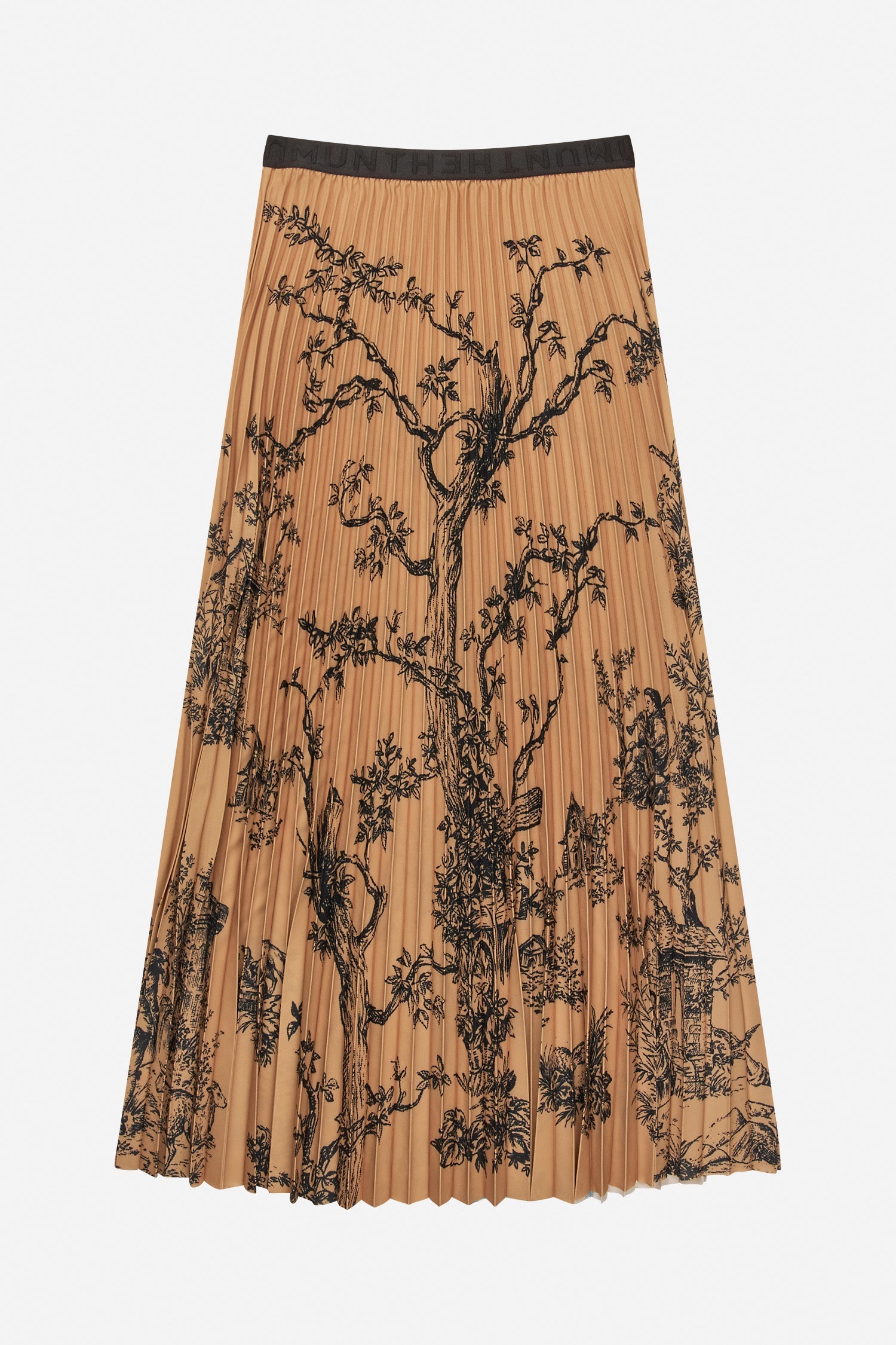 A pleated skirt with an elegant print, and an elastic band at the waist. The skirt is made from a recycled polyester blend, and has a regular fit.
