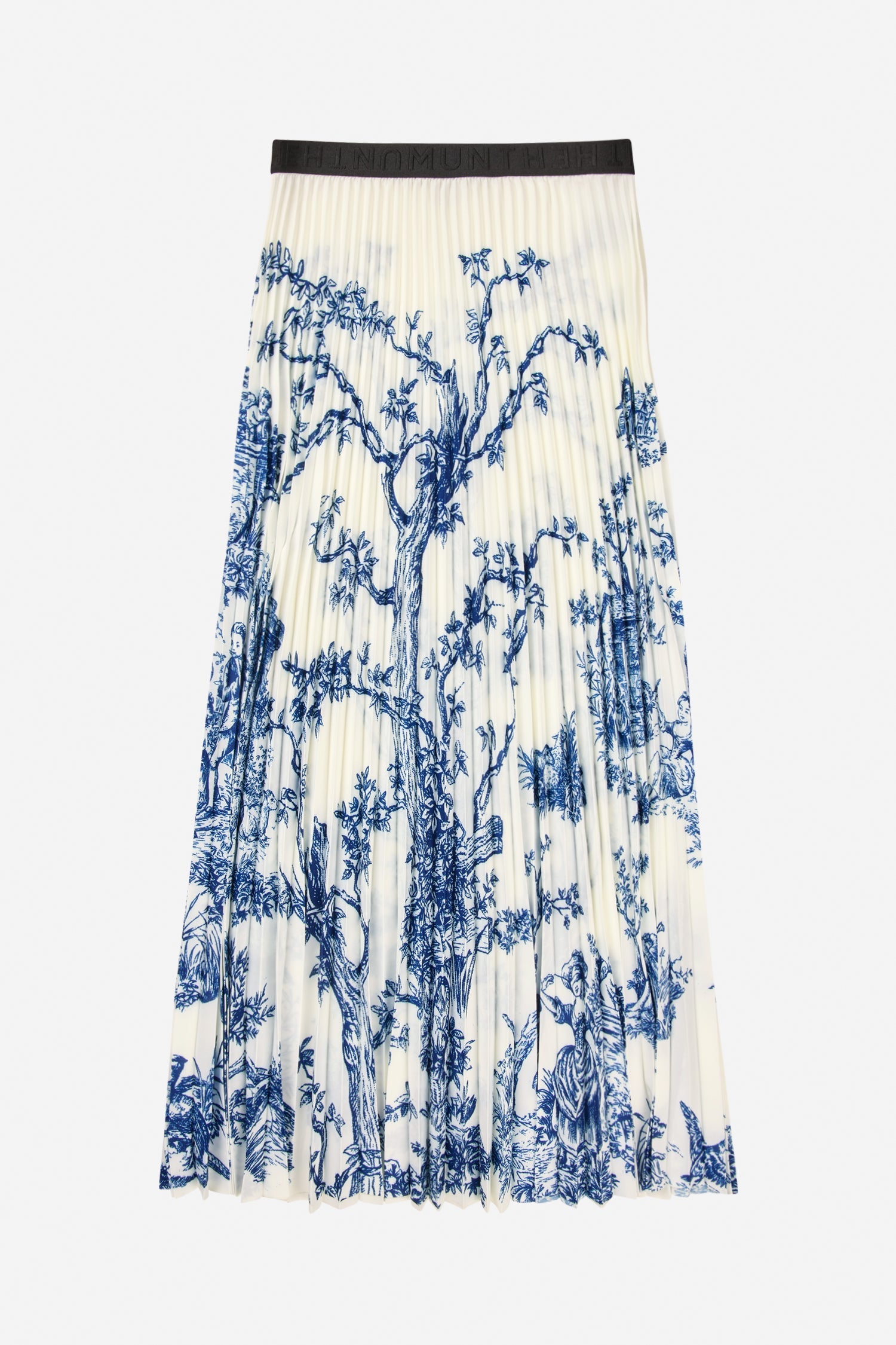 A pleated skirt with an elegant print, and an elastic band at the waist. The skirt is made from a recycled polyester blend, and has a regular fit.