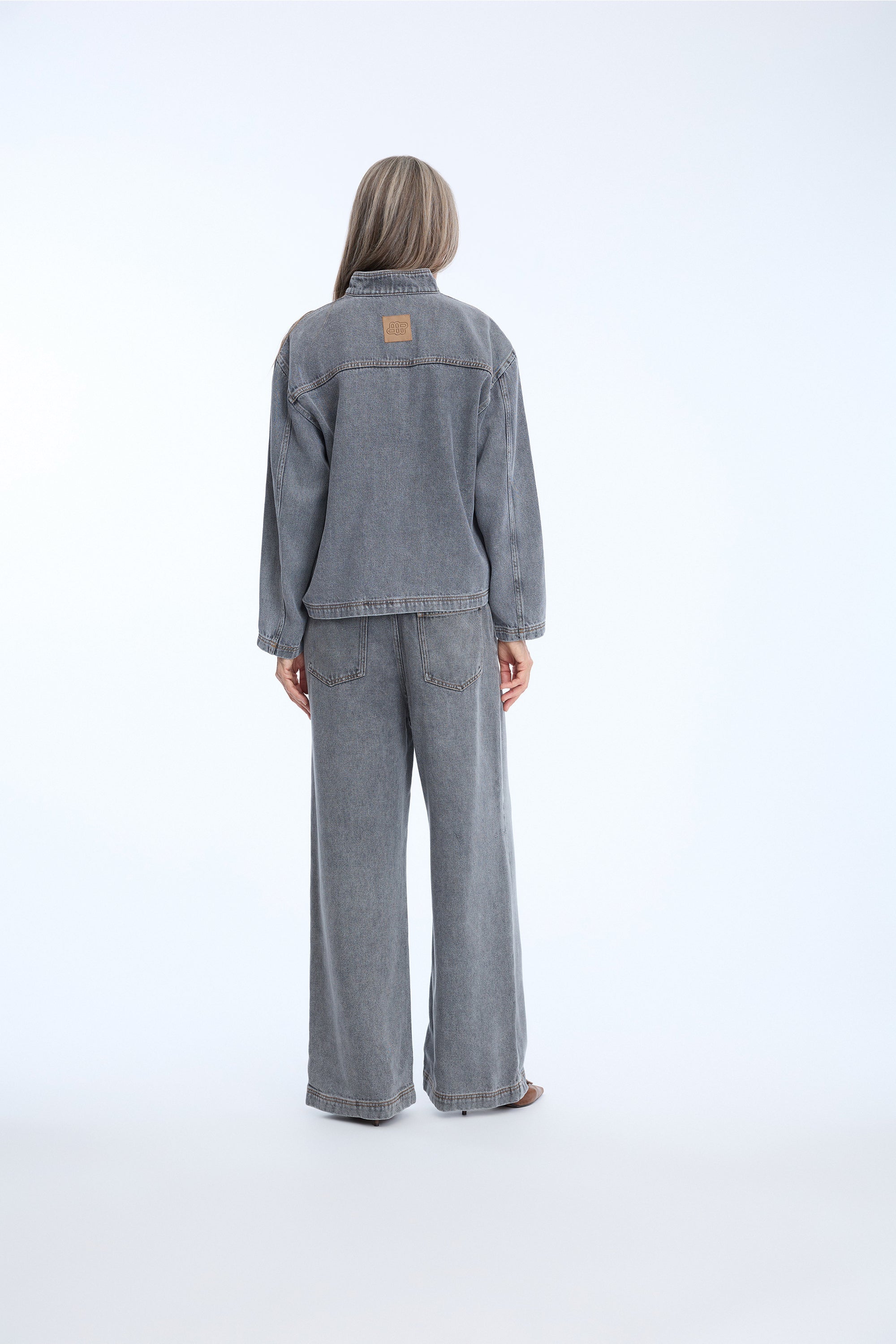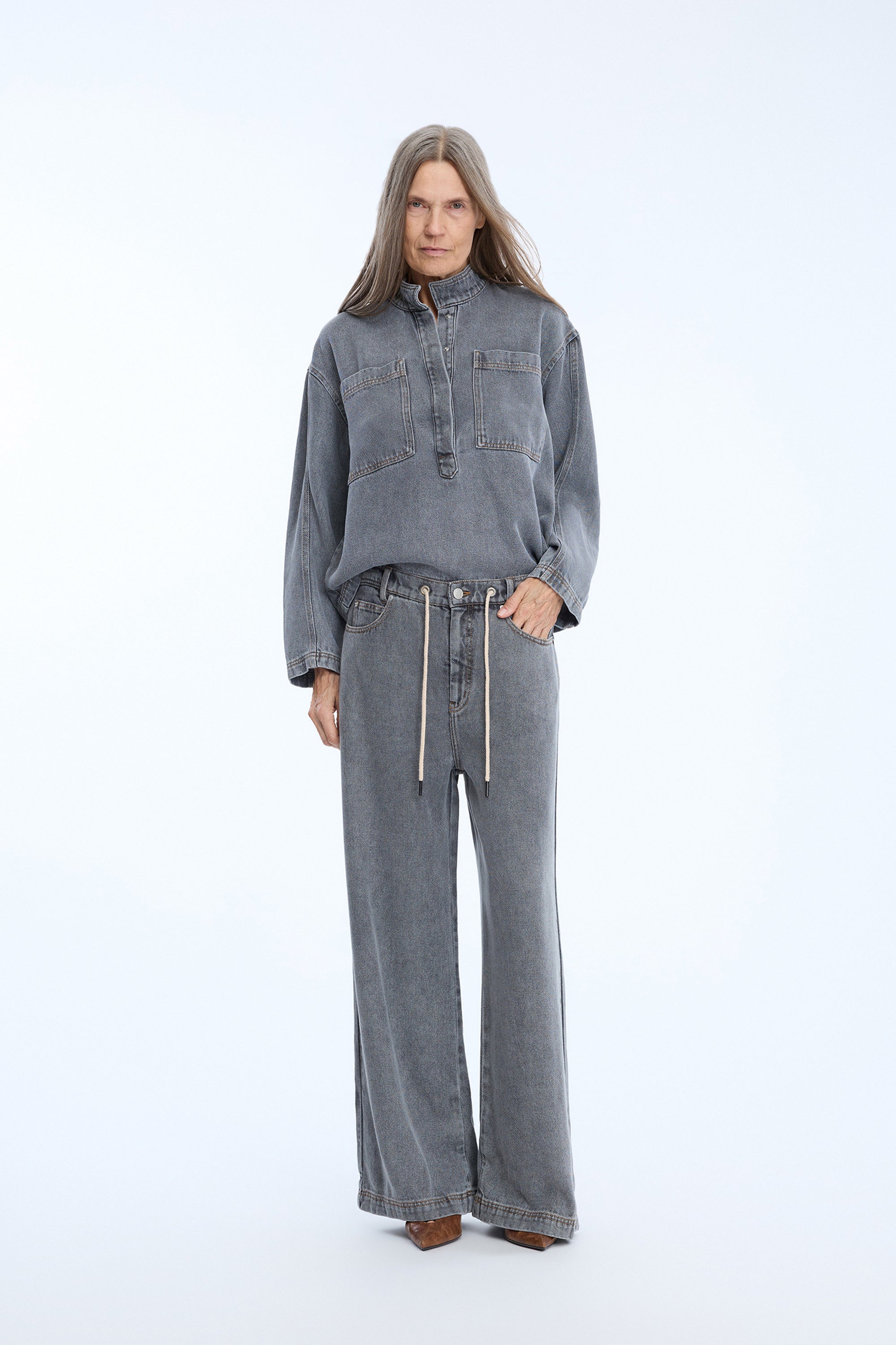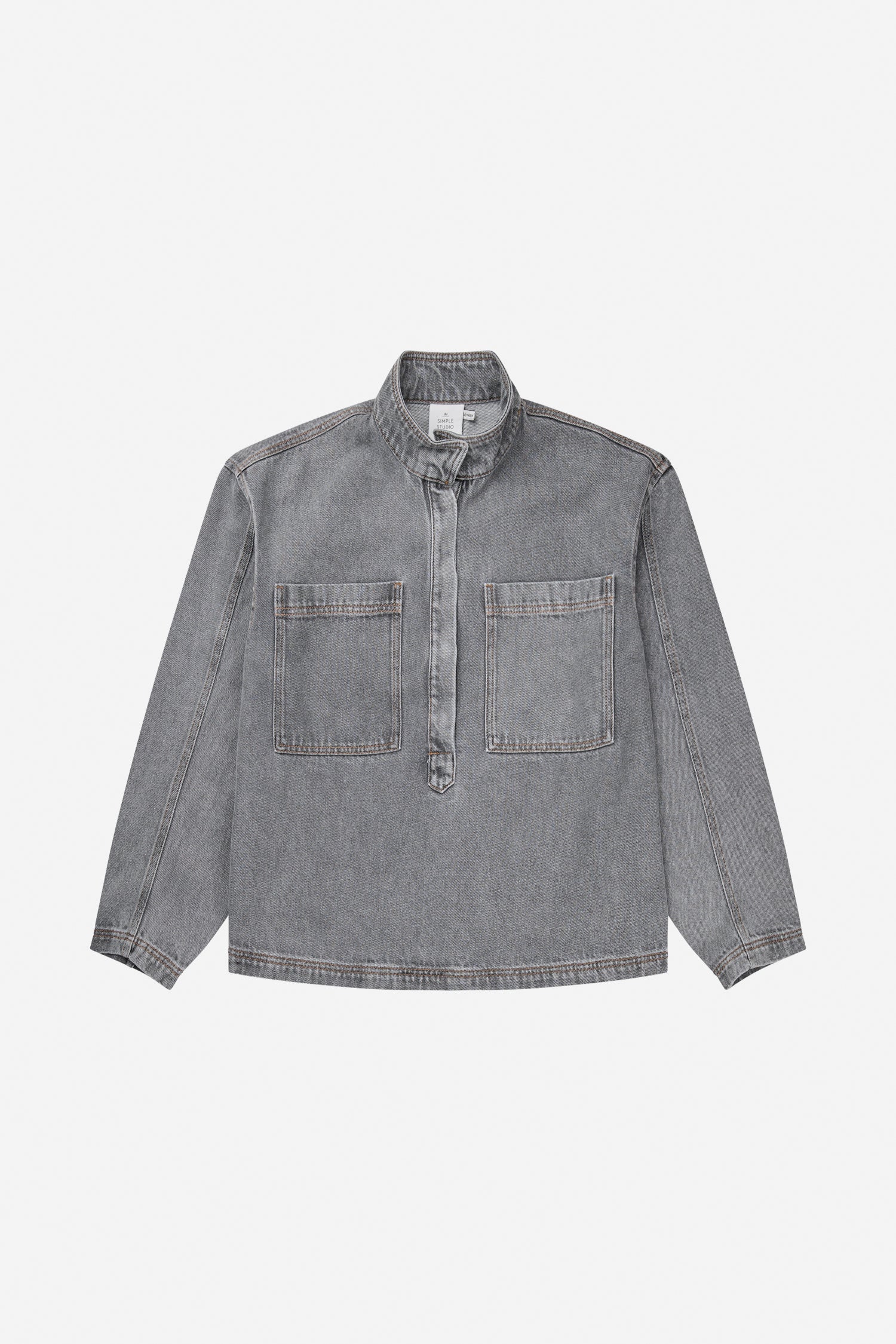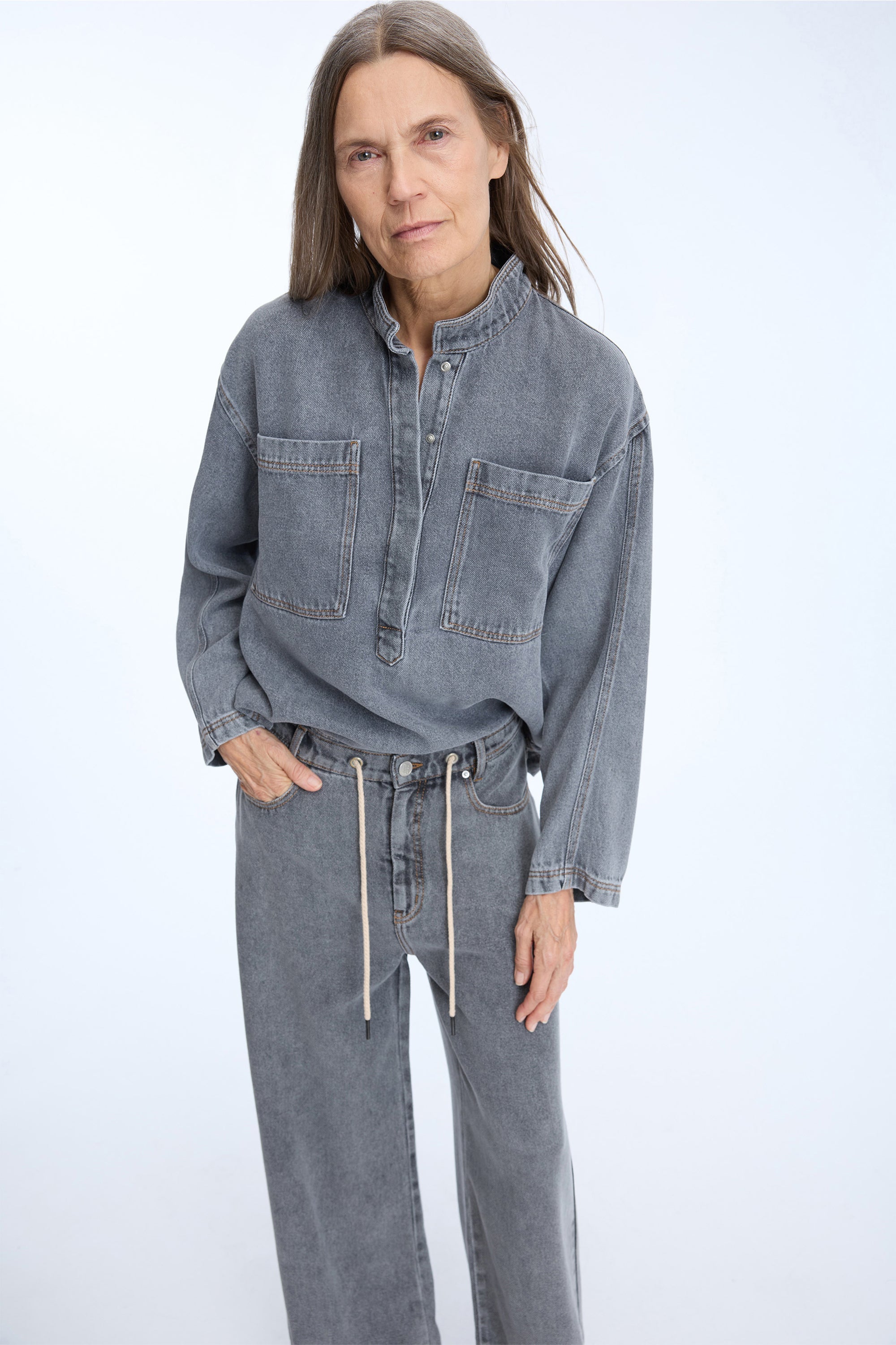 A denim shirt with oversize pockets on the chest, a halfway opening and an elegant small collar. The shirt has a regular fit.