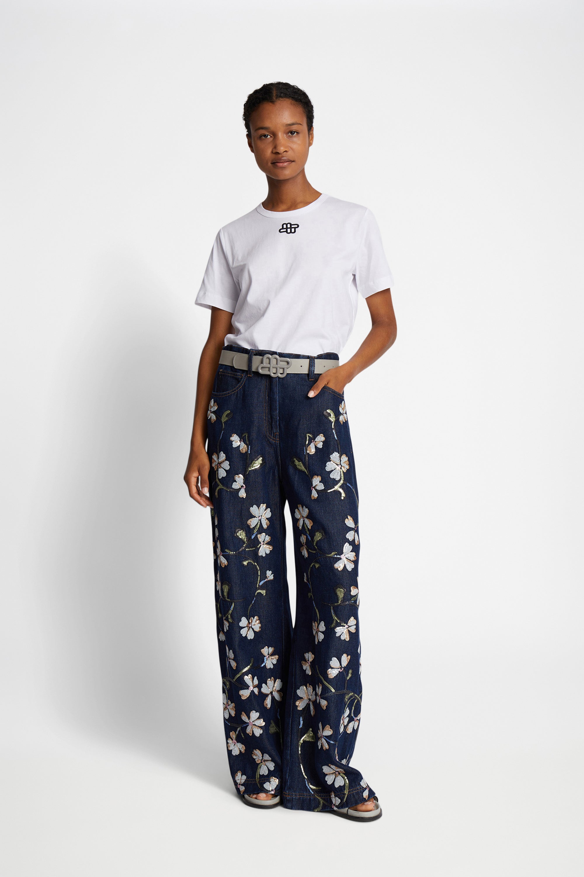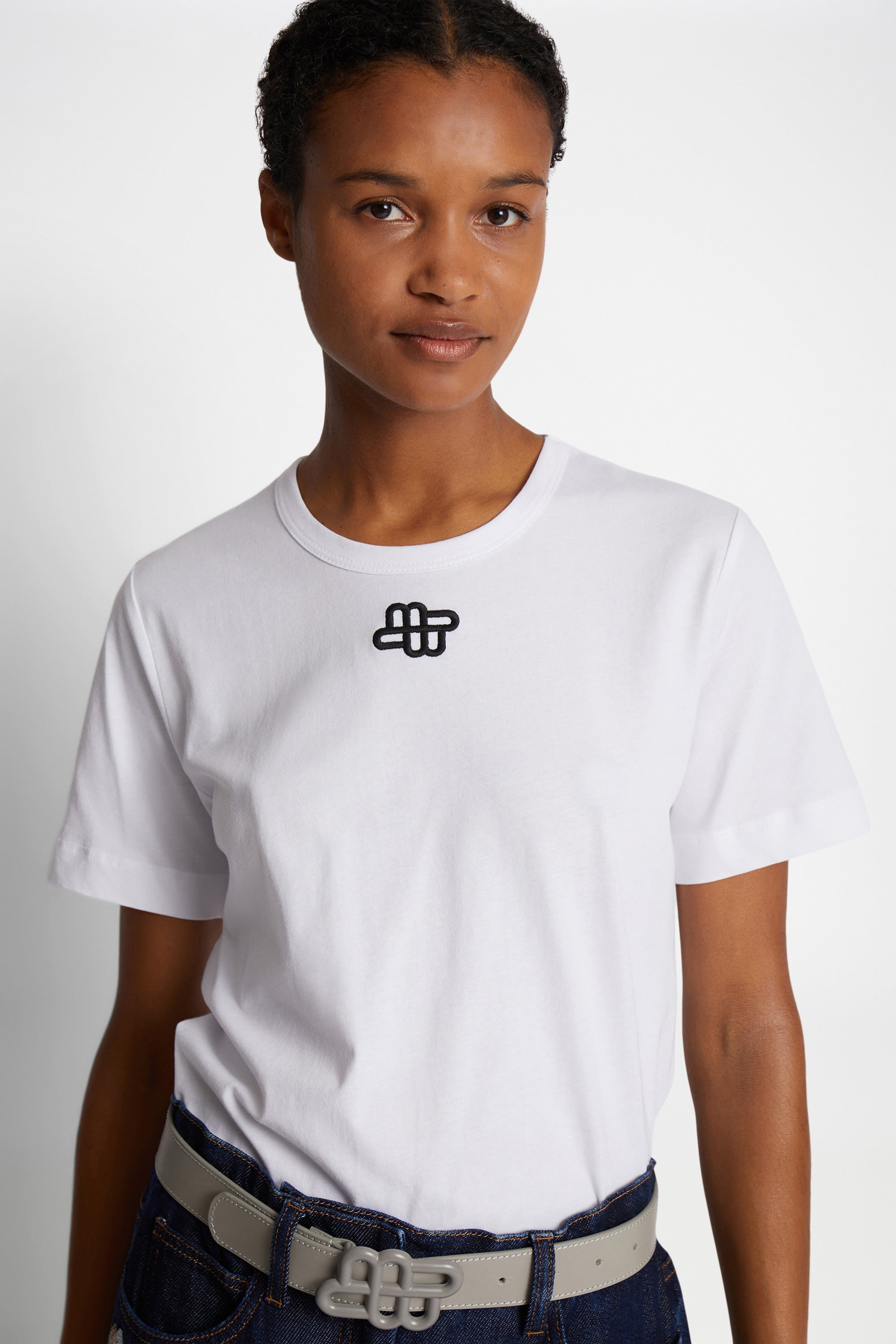 T-shirt in 100% organic cotton with an elegant MUNTHE emblem embroidery on the chest. This T-shirt is designed for a regular fit with a round neck.